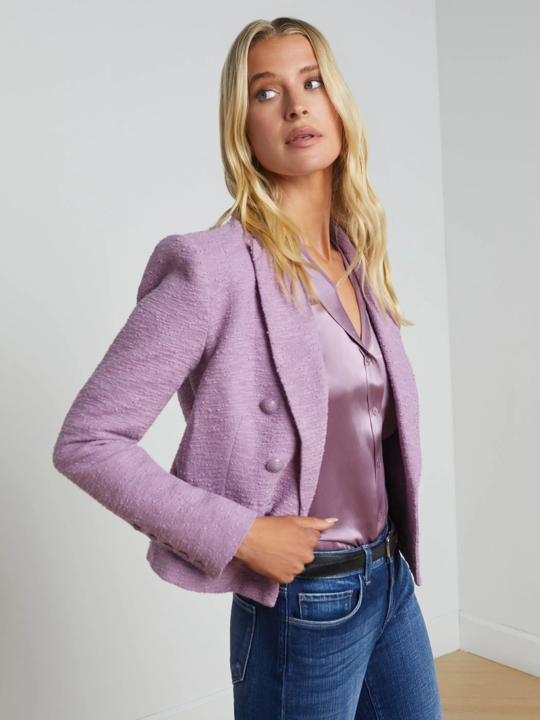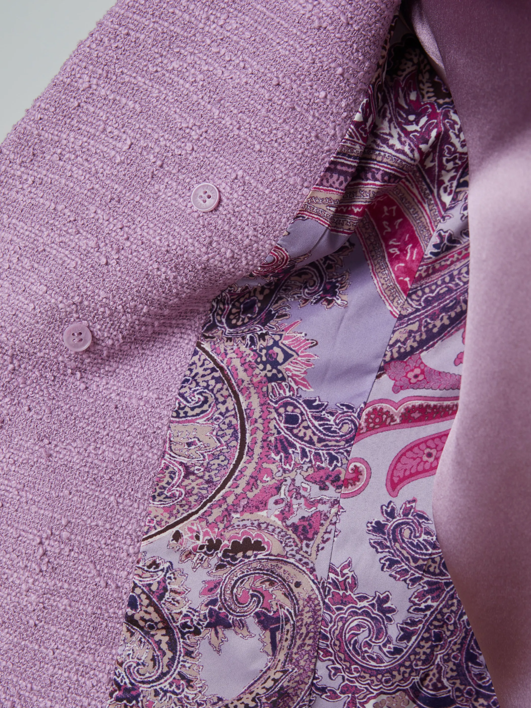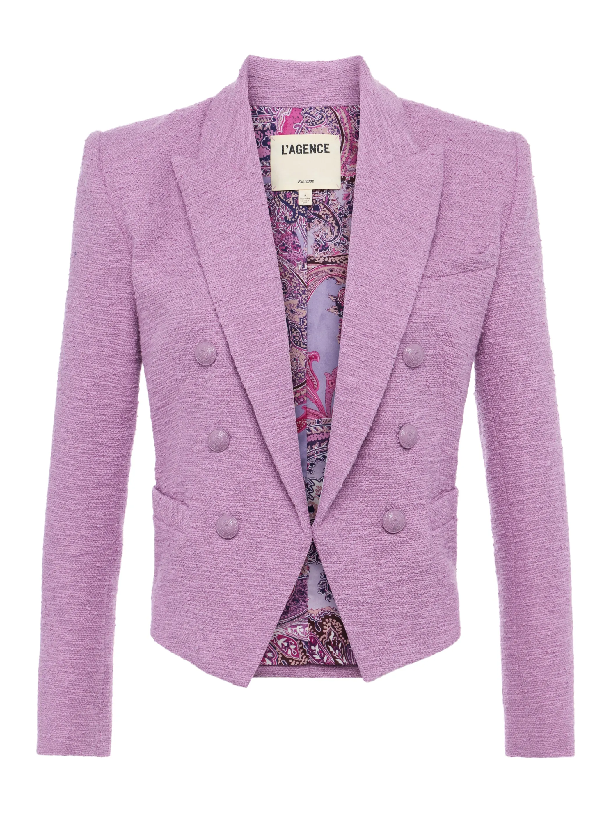 Our bestselling open-front Brooke features a flattering tapered fit, now offered in a beautiful wisteria with coordinating paisley lining.