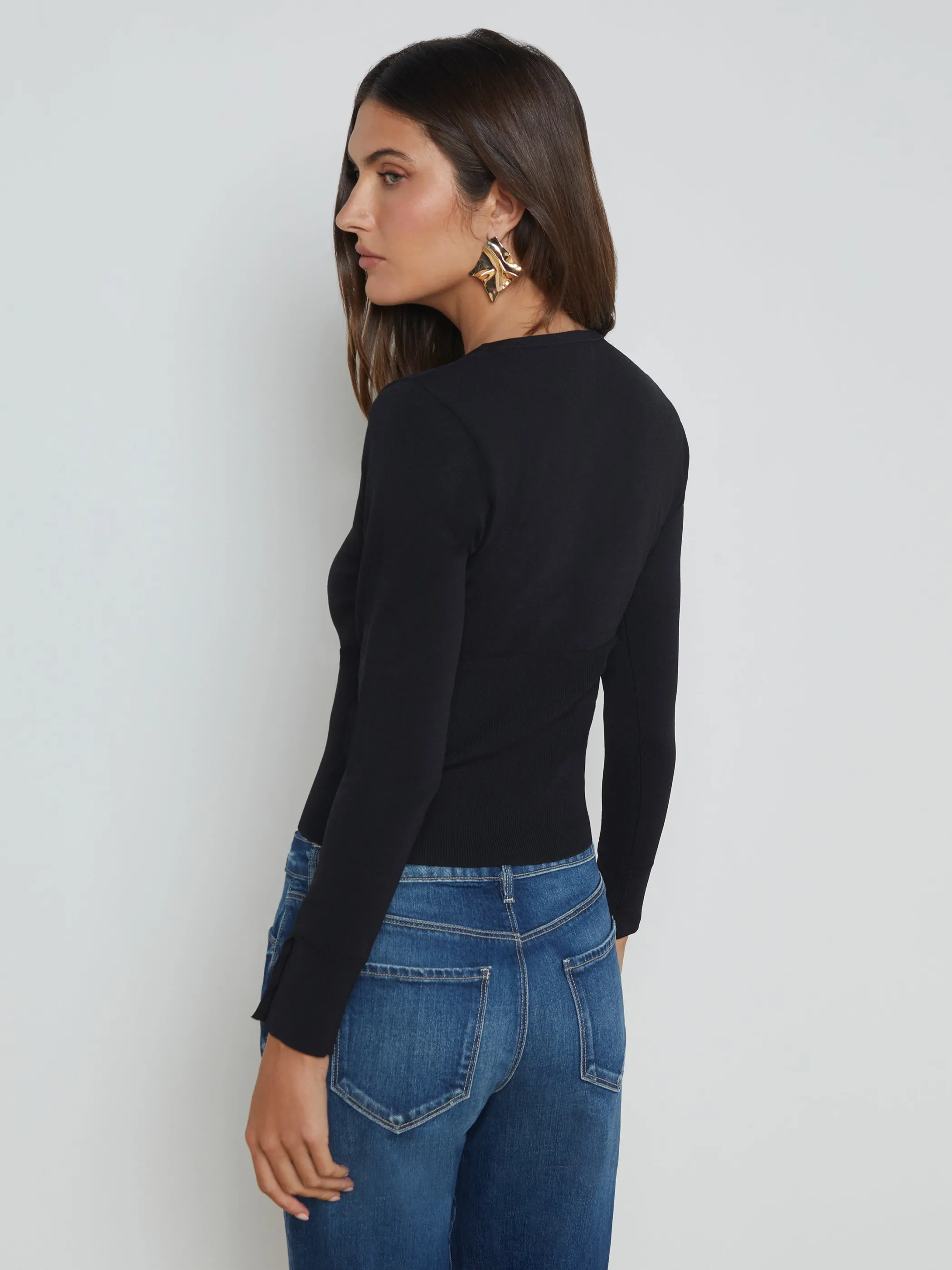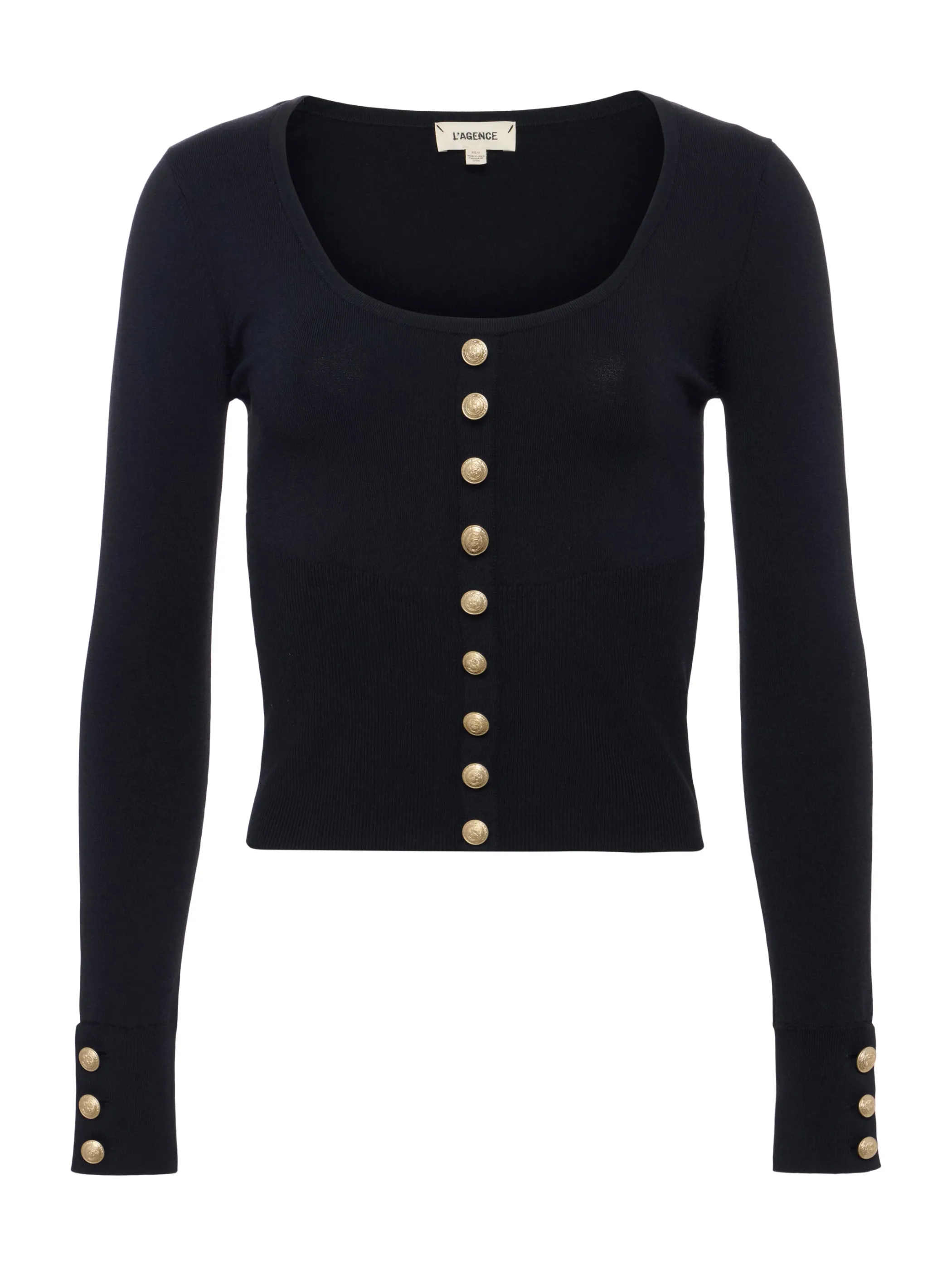 Meet your go-to long sleeve top. Decorative miniature gold buttons and a sultry deep scoop neck transform the Lanetta into an elevated essential.