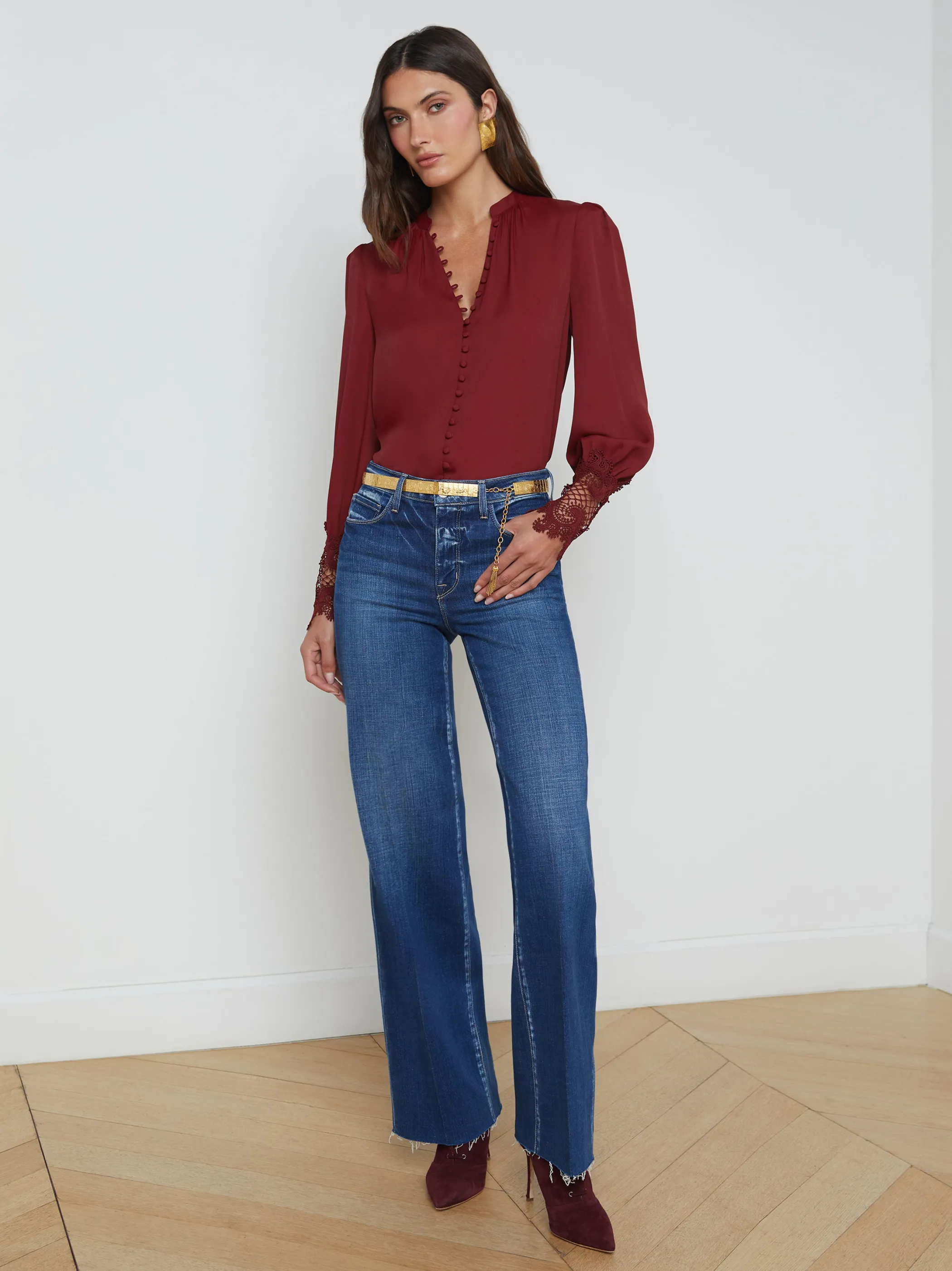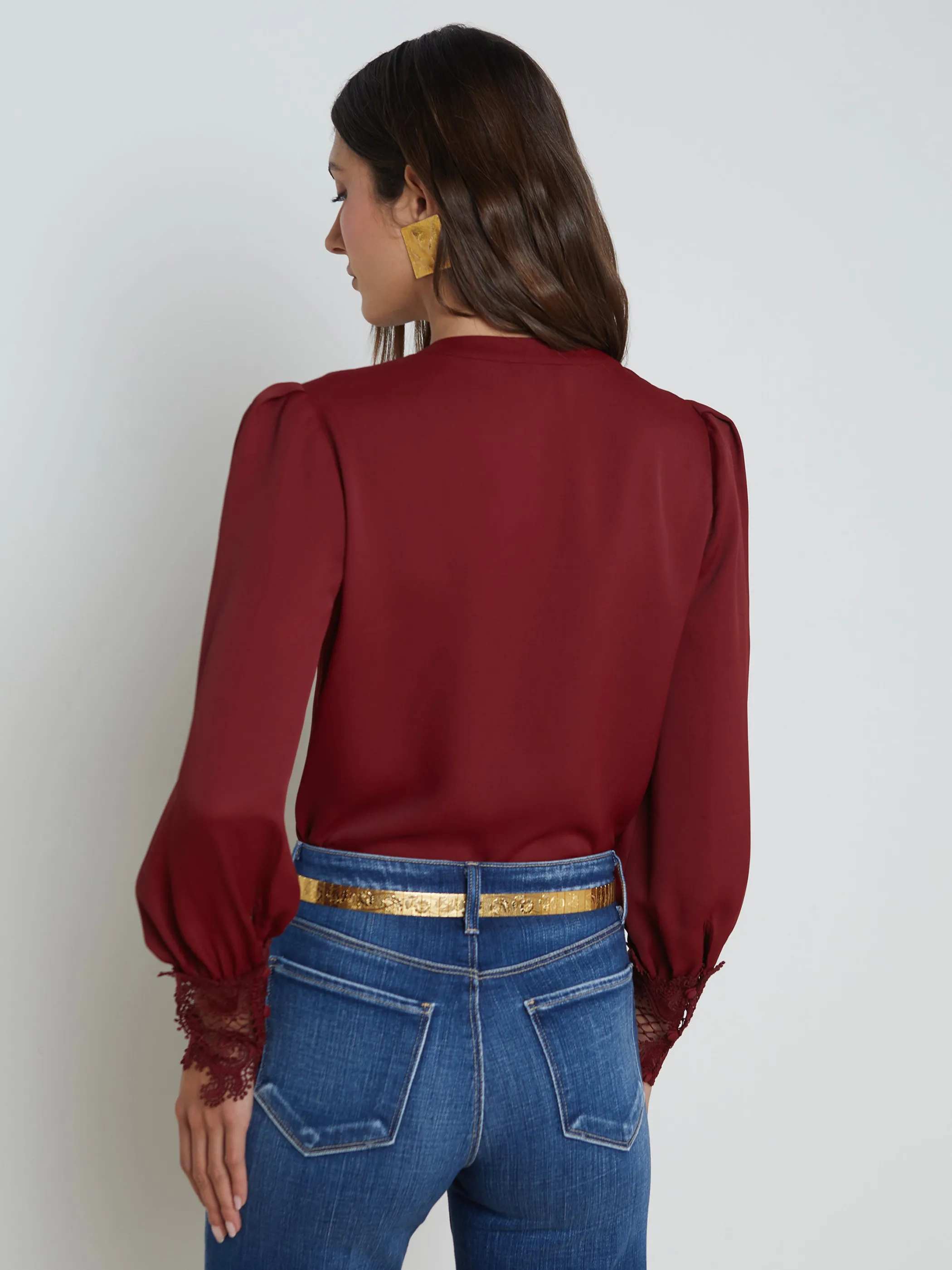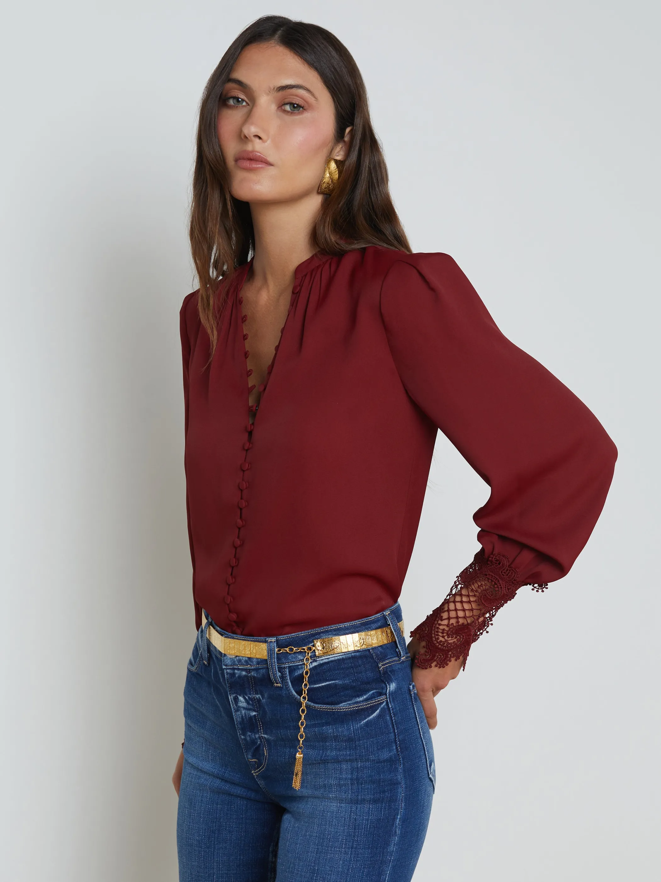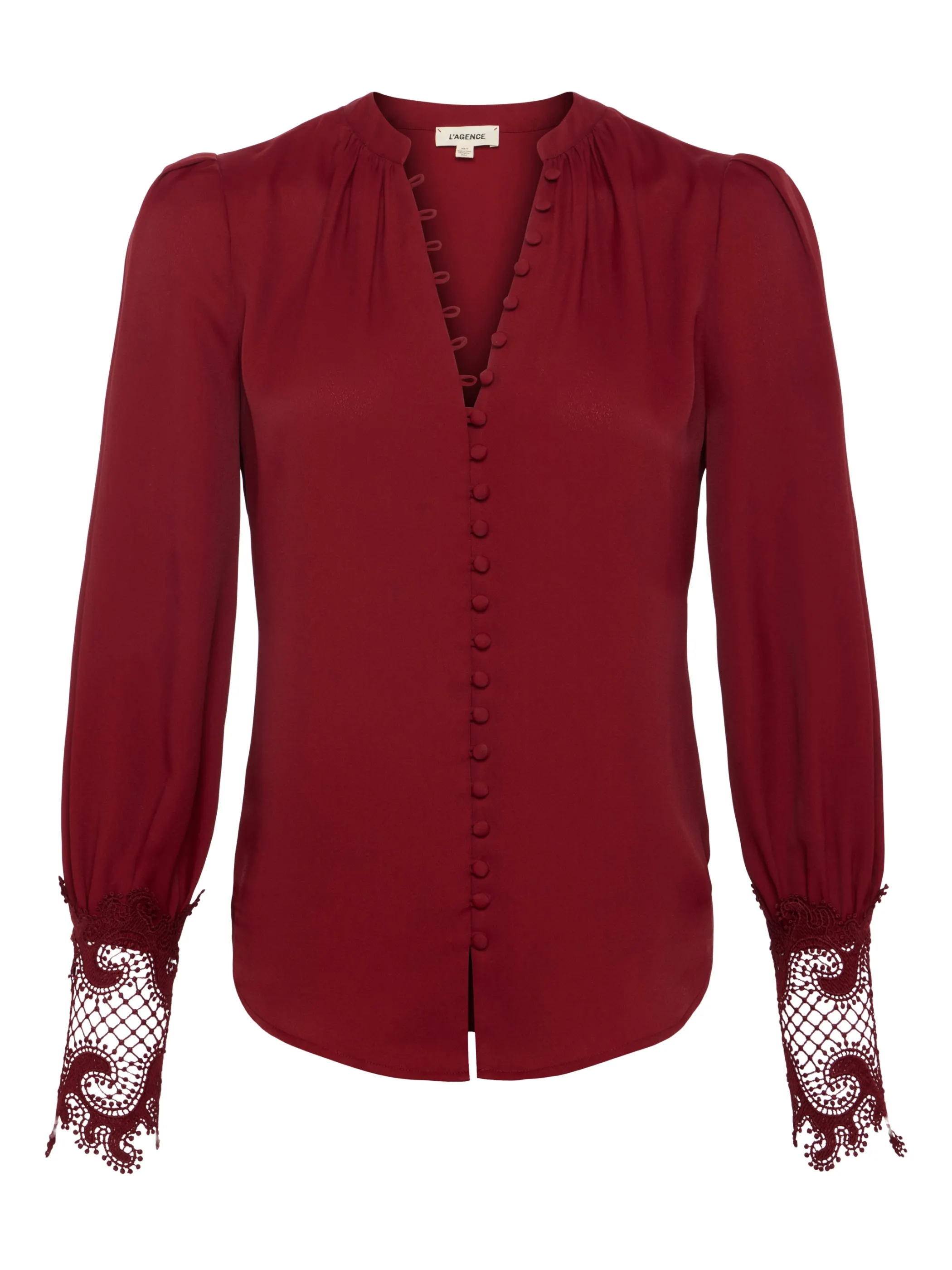 A beautiful vintage-inspired blouse crafted with extended cuffs in exquisite scalloped lace.