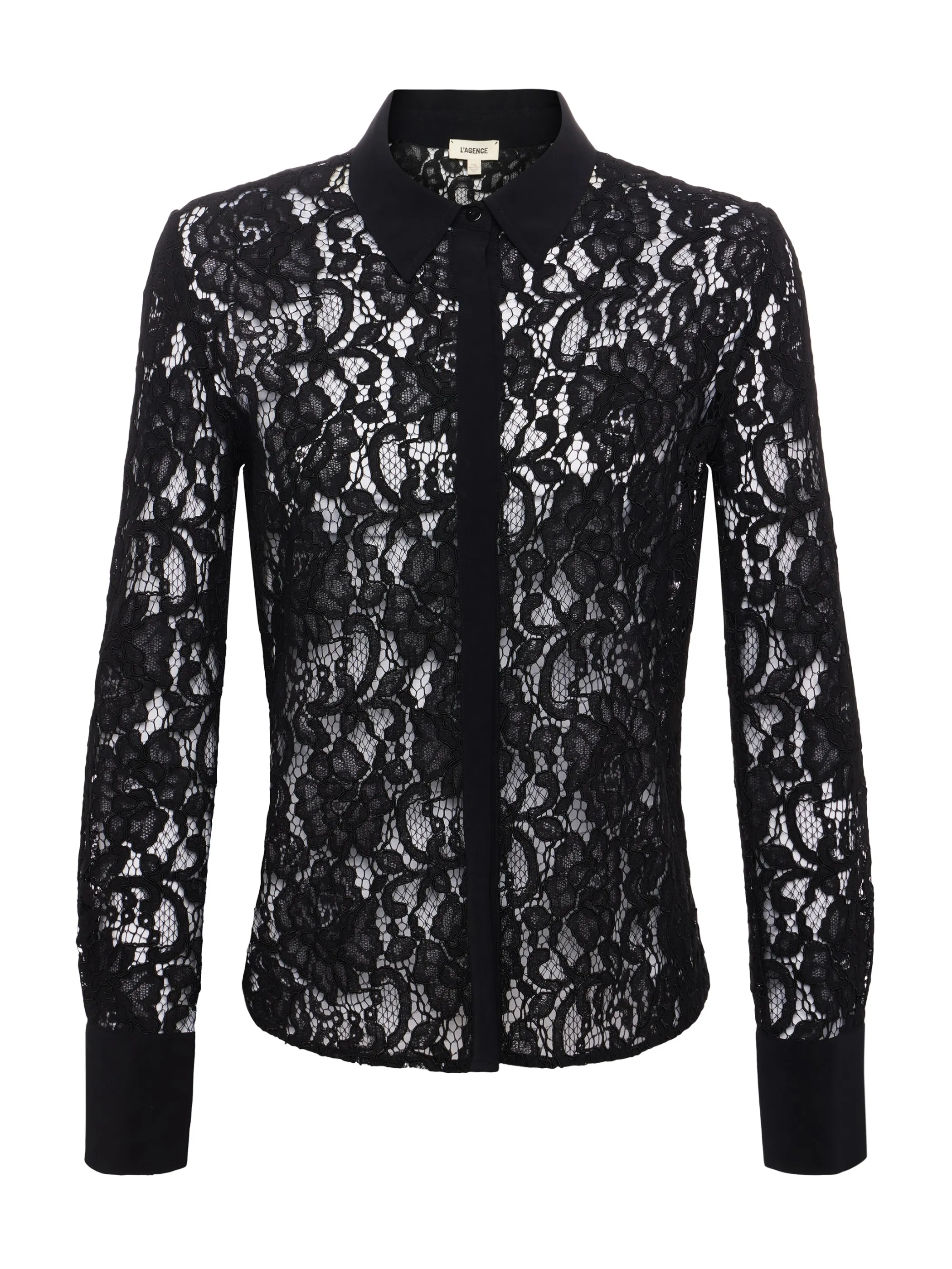 Sheer floral lace makes a romantic statement worn alone for date night or layered over a camisole for the office.