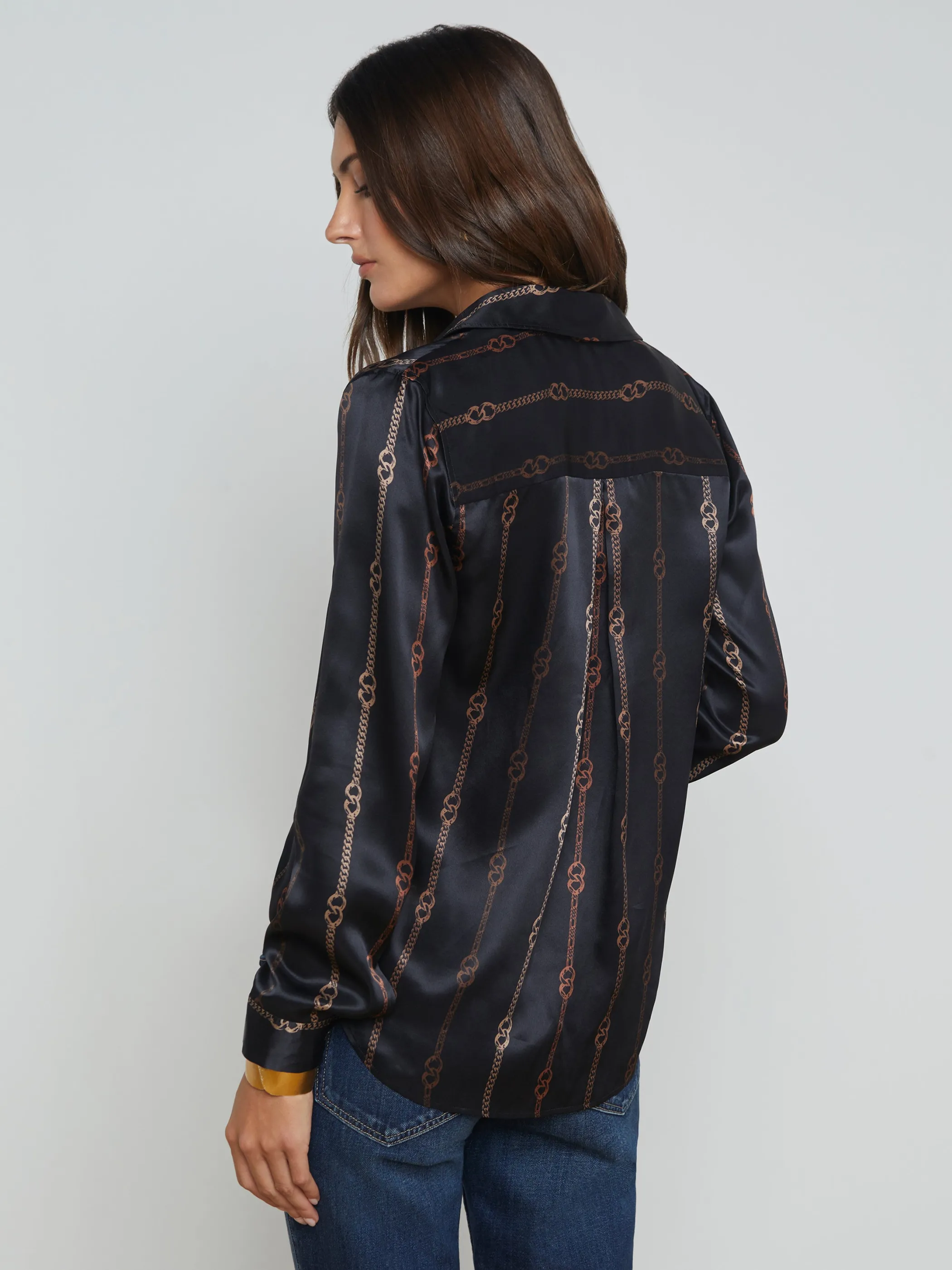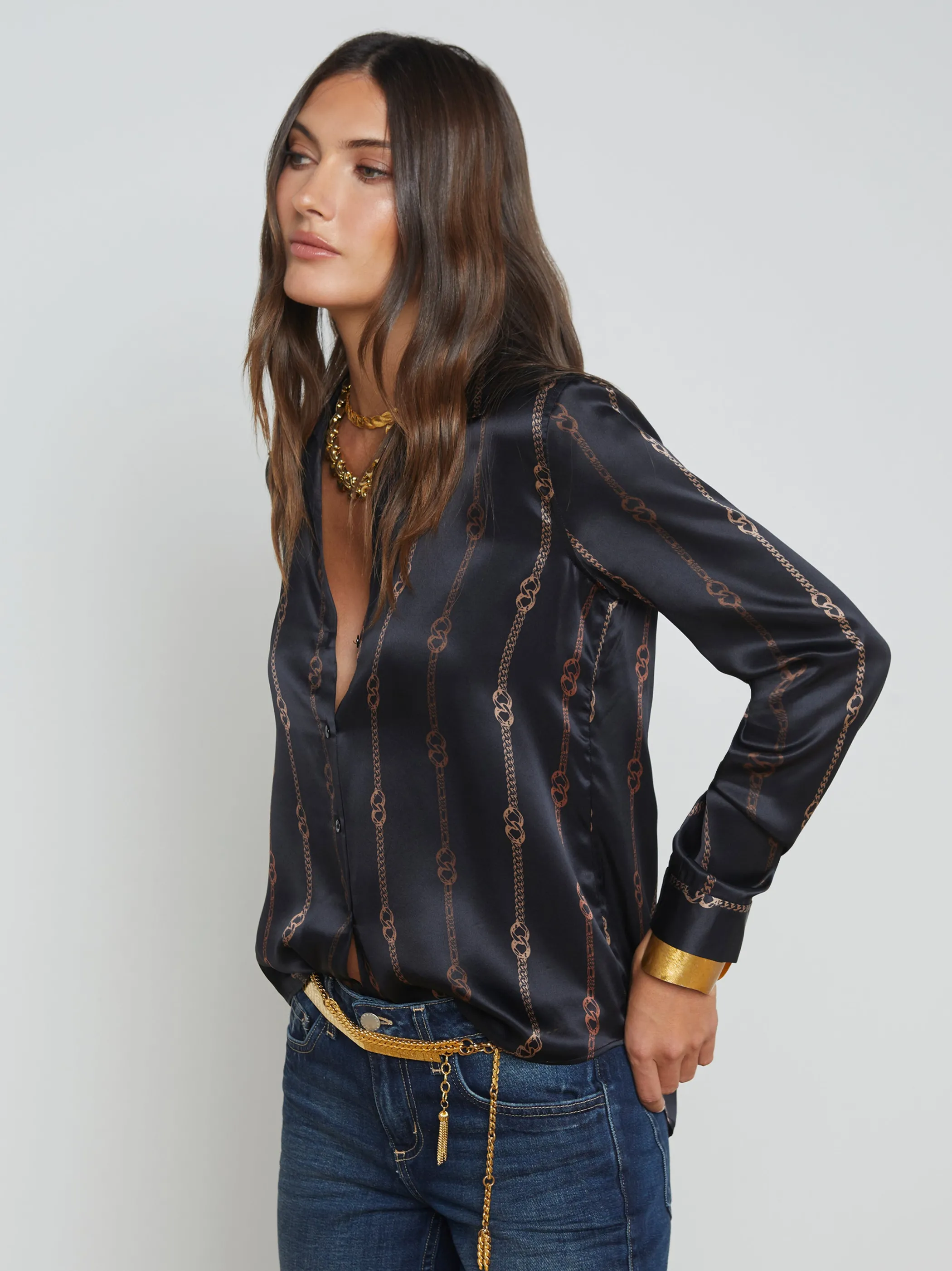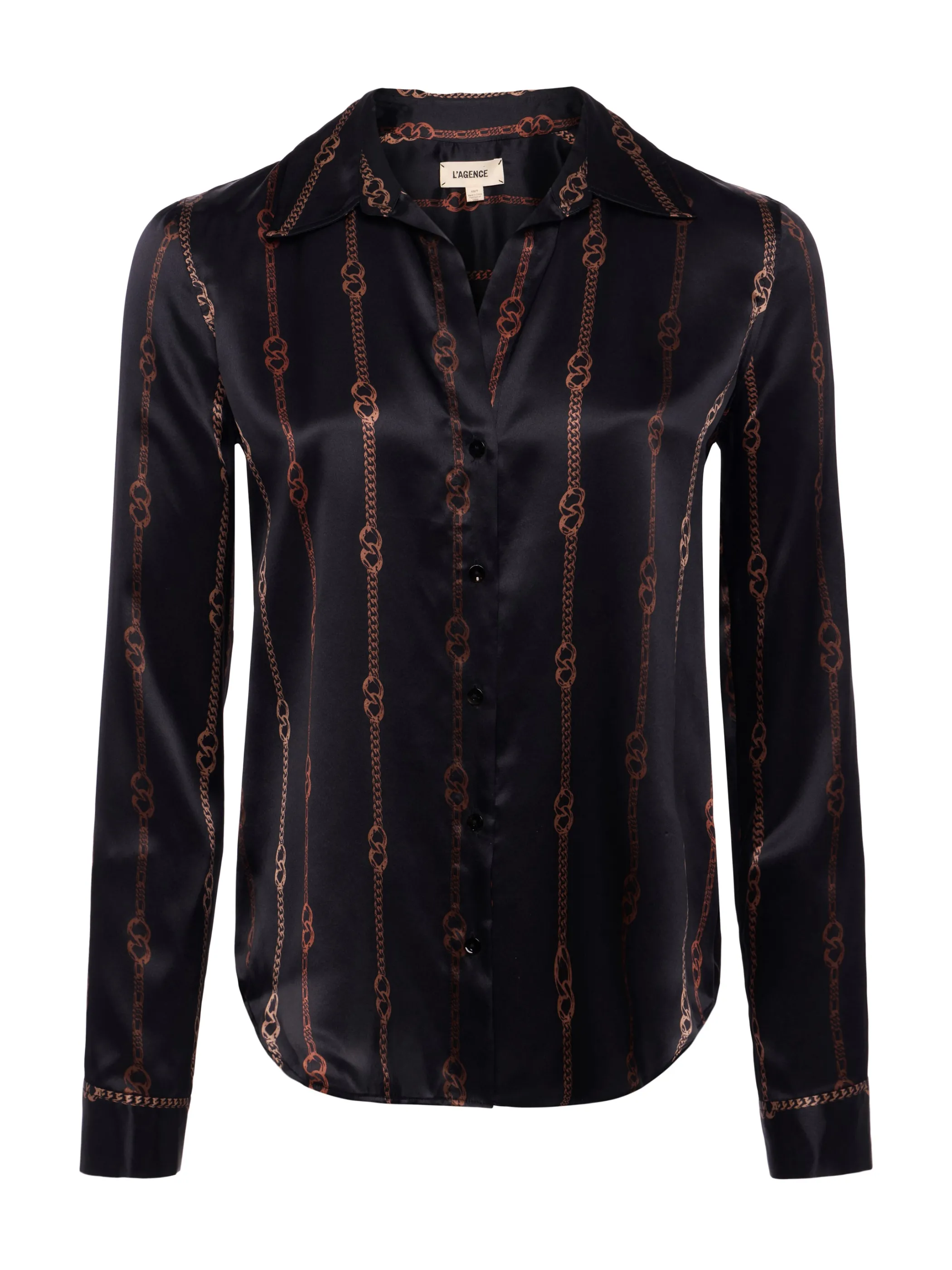 Meet the iconic long-sleeve silk button-down that belongs in every wardrobe. This L’AGENCE bestseller is now back in a chain print stripe.