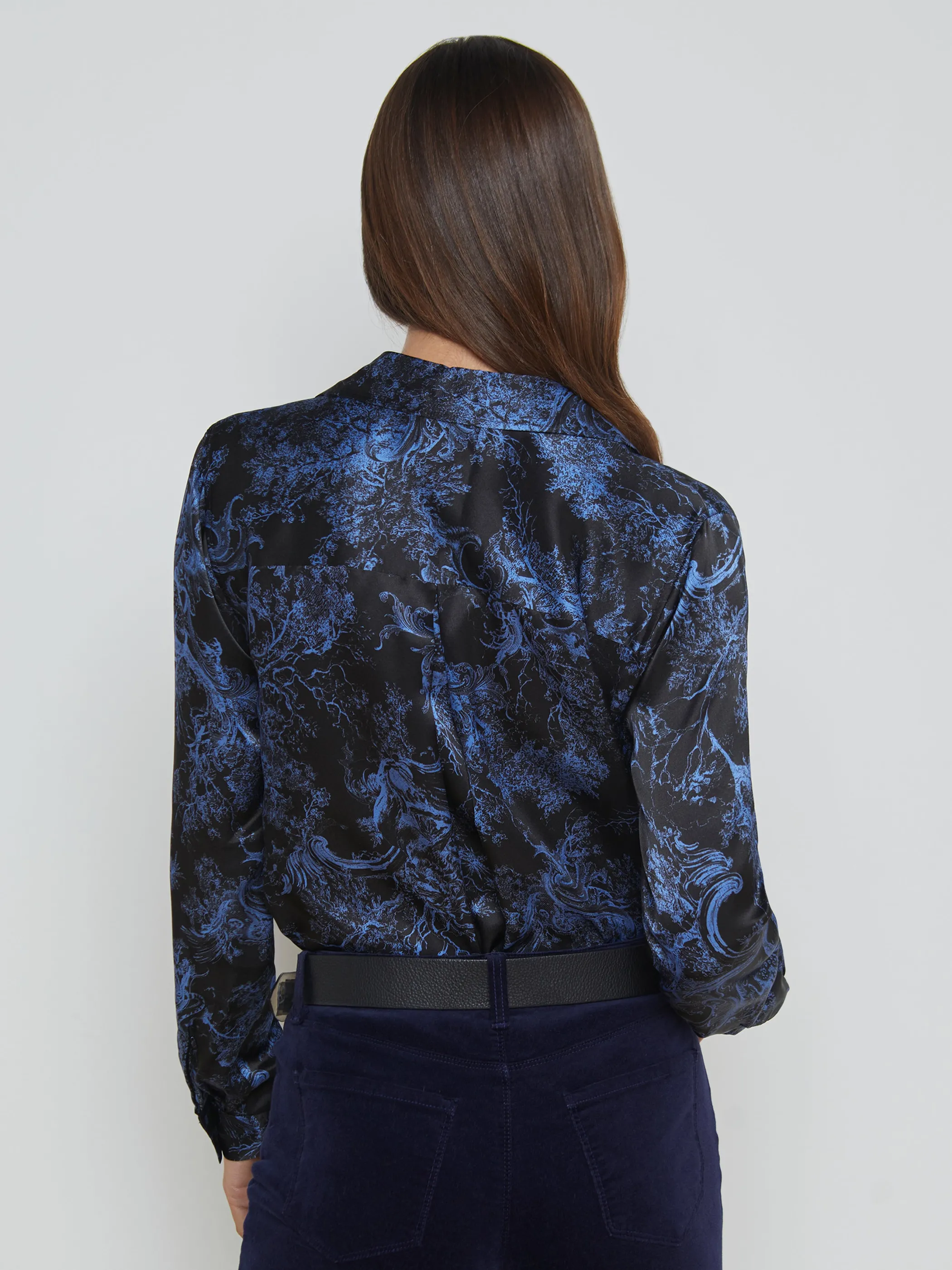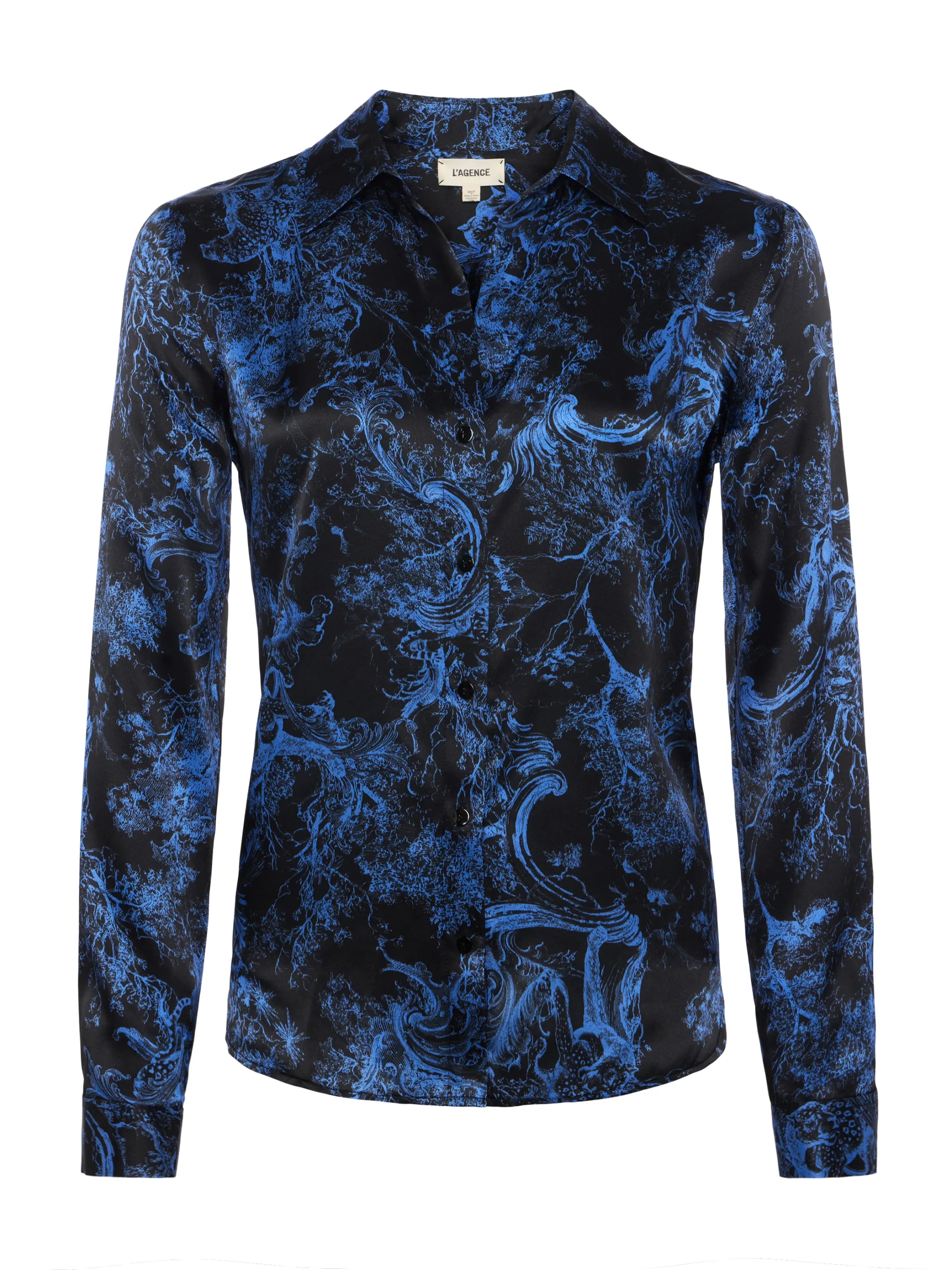 Meet the iconic long-sleeve silk button-down that belongs in every wardrobe. This L’AGENCE bestseller is now back in a black and periwinkle print.