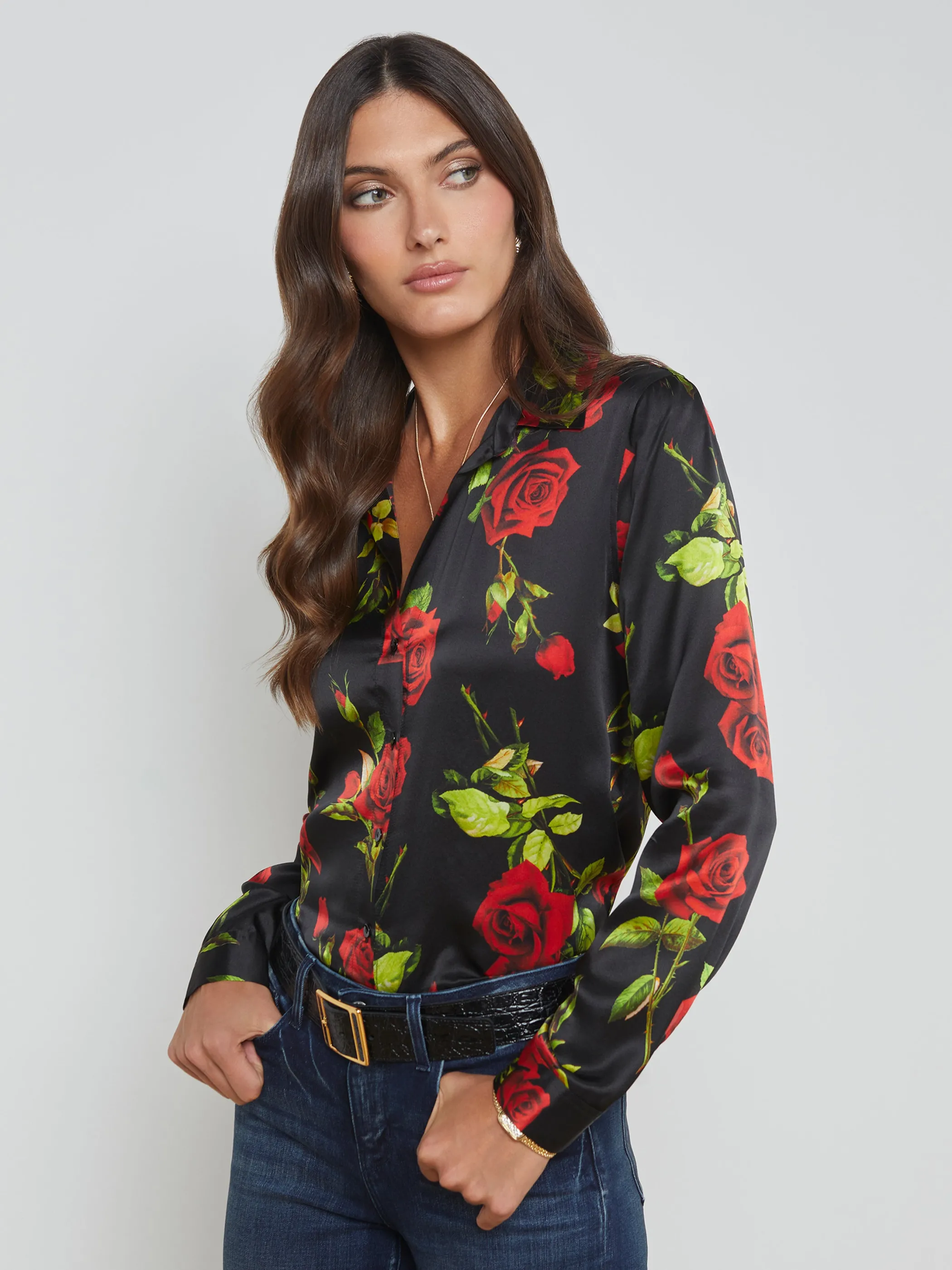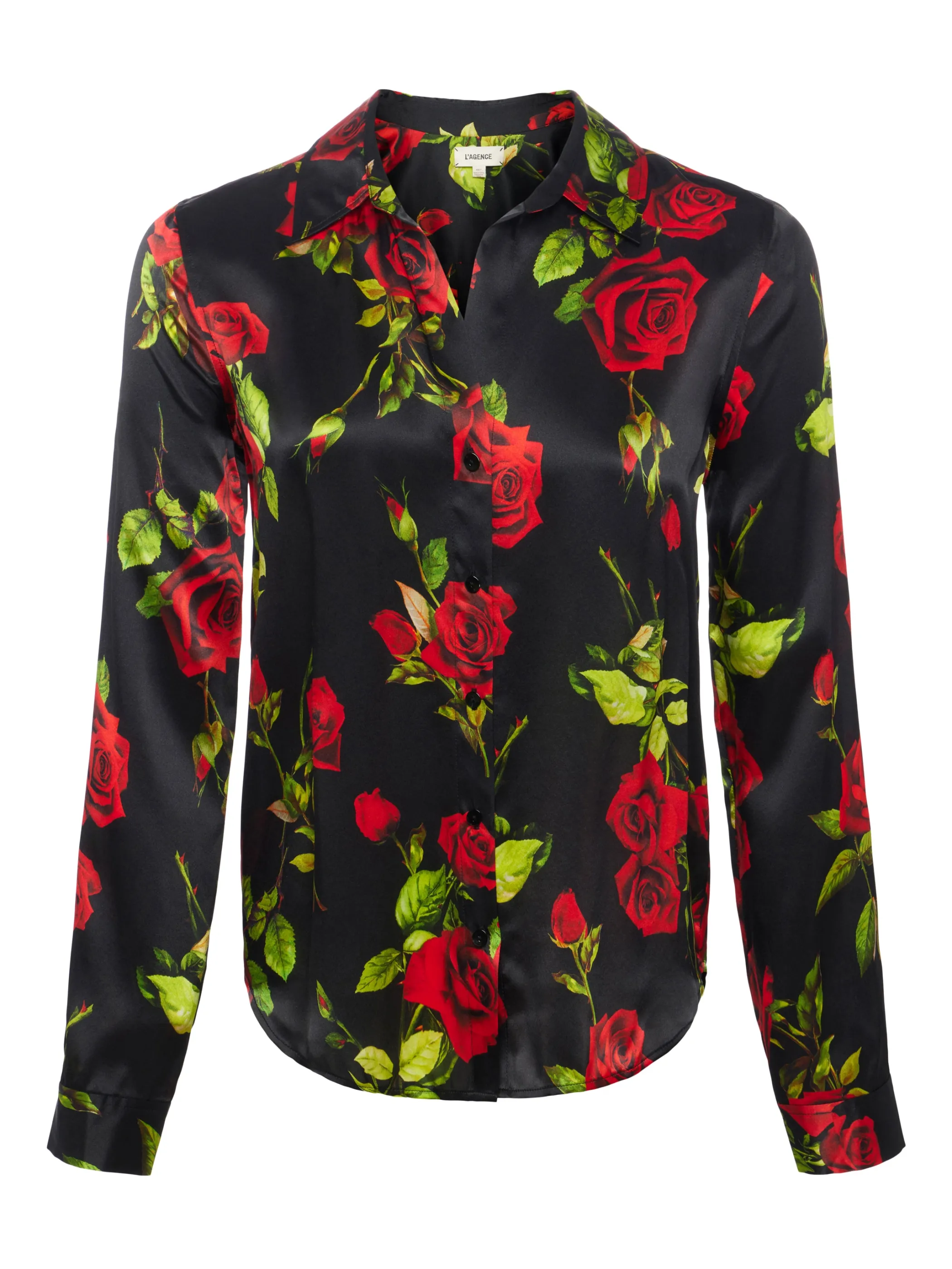 Meet the iconic long-sleeve silk button-down that belongs in every wardrobe. This L’AGENCE bestseller is now back in a romantic rose print.