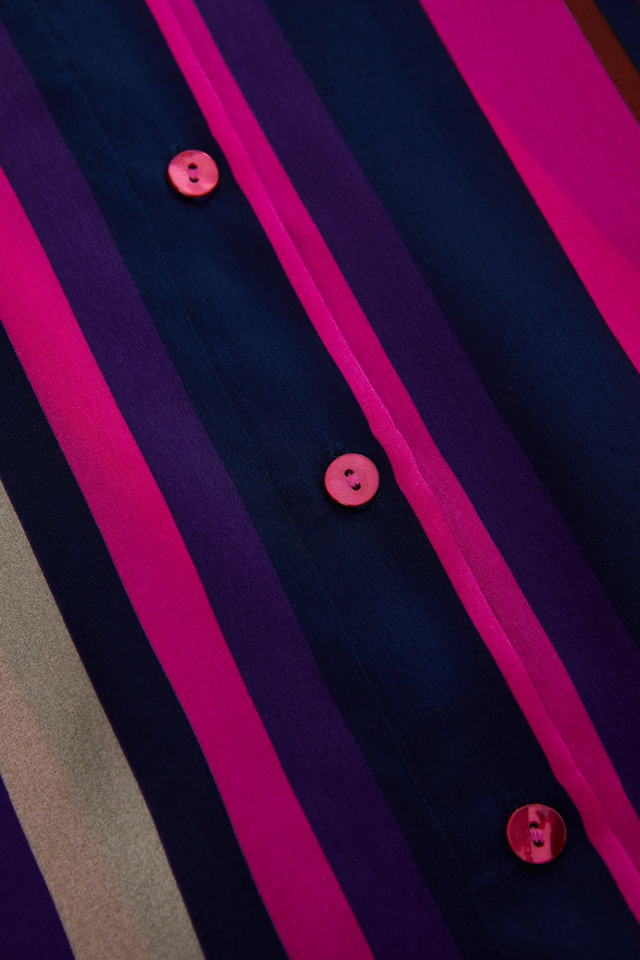 Meet the iconic long-sleeve silk button-down that belongs in every wardrobe. Reimagined each season in fresh colorways and prints, the Tyler is back in a bold striped print.