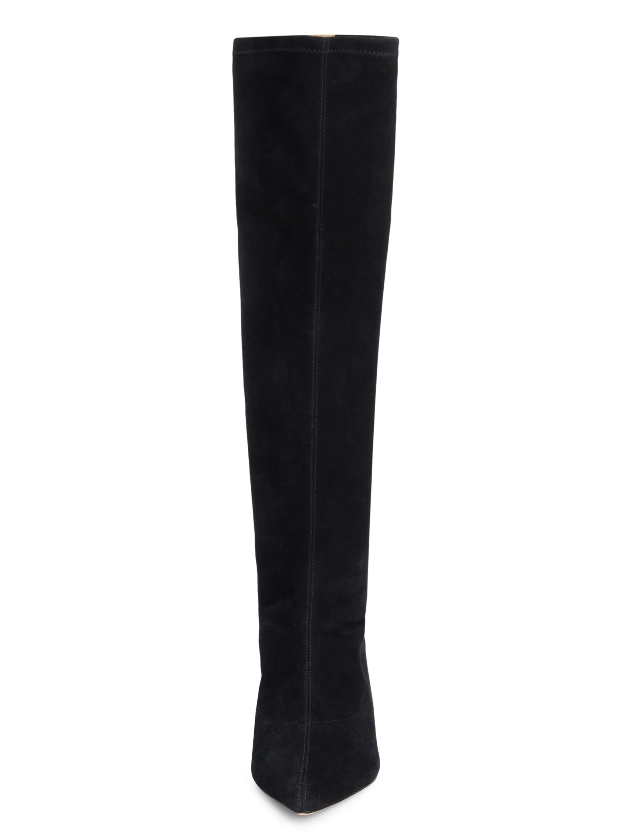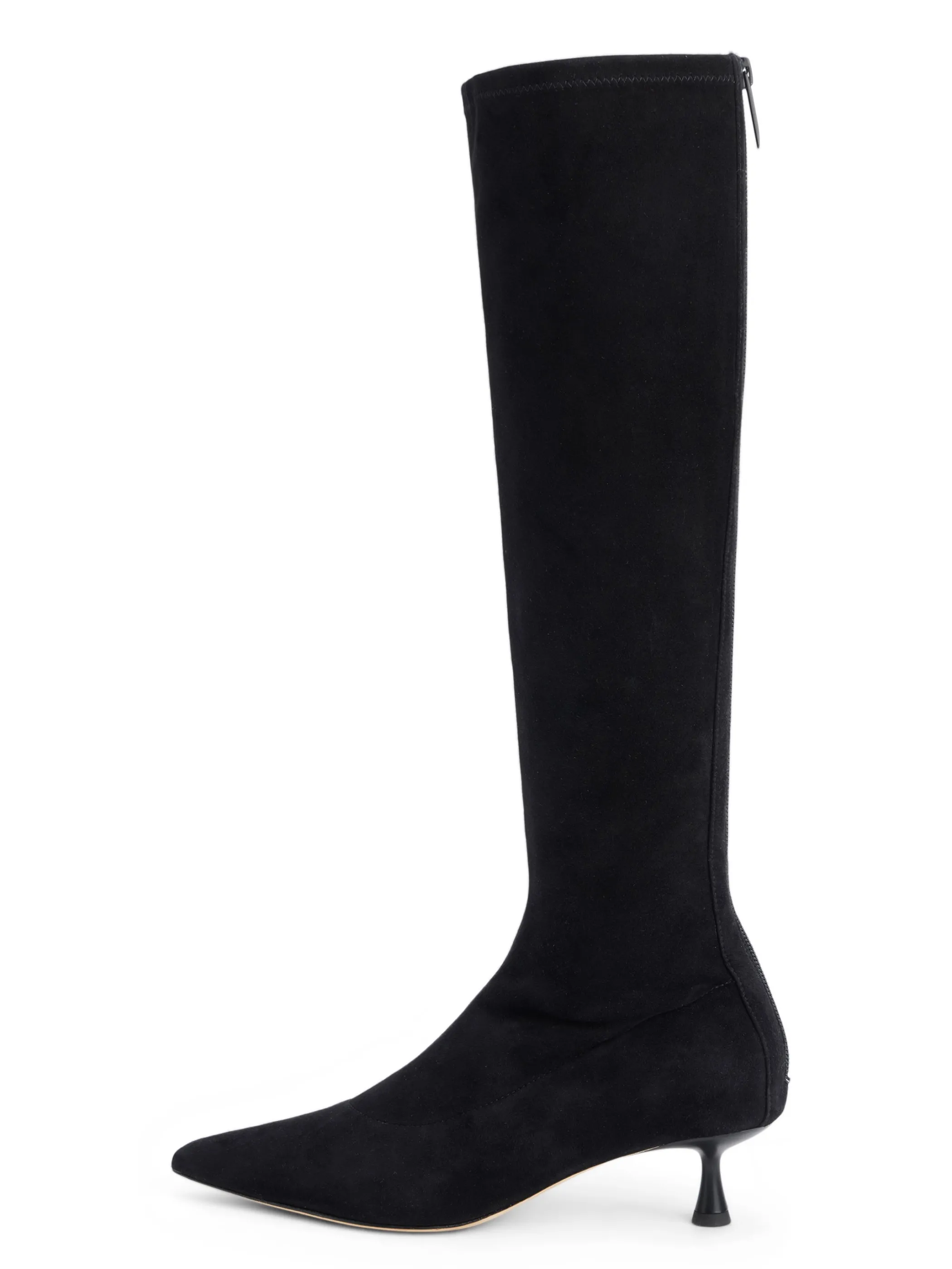 Reach the height of sophistication with the impossibly chic and flattering Emilie boot in black suede.
