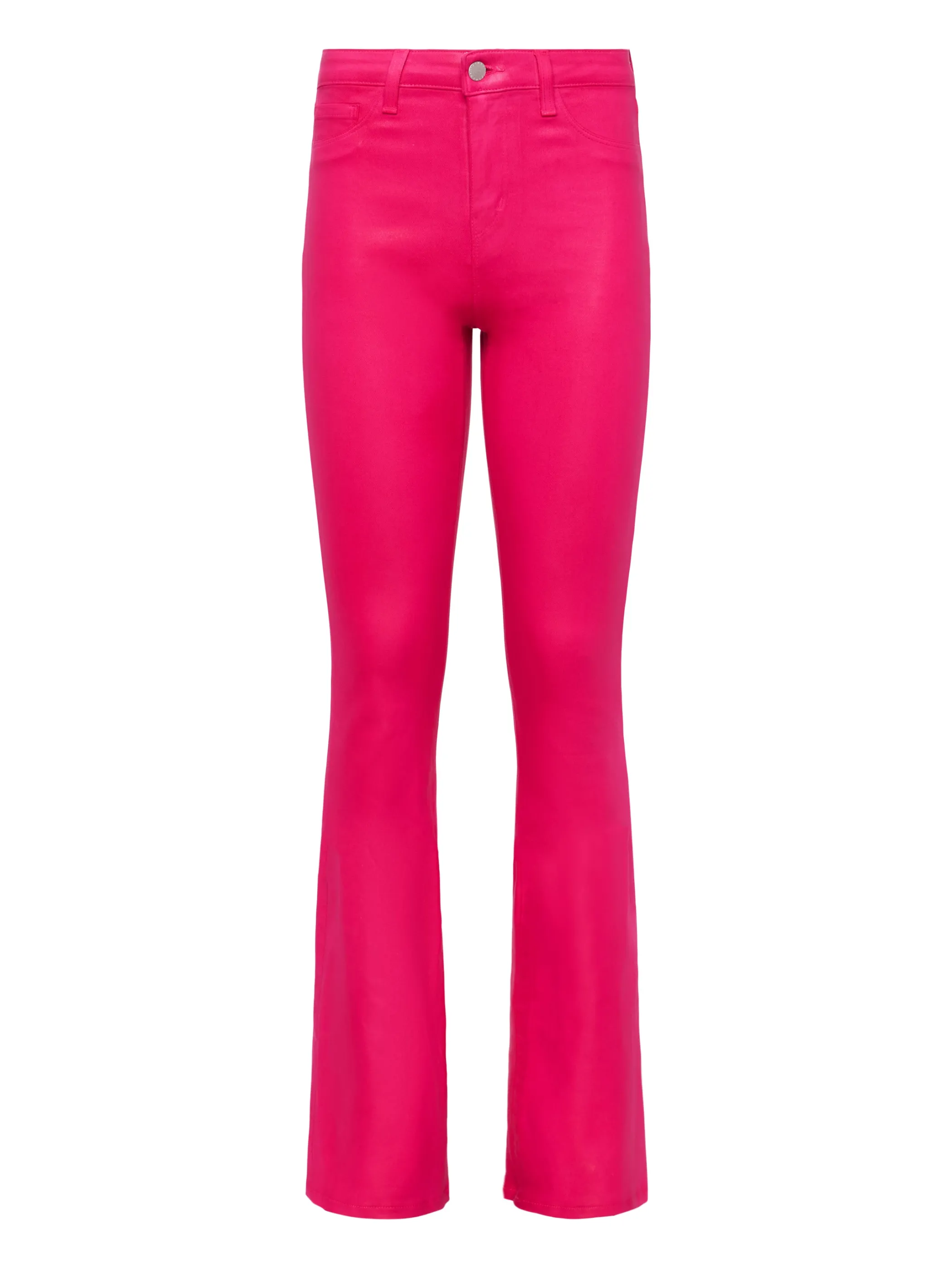 The Marty jean features our longest inseam, widest flared hem, and a slim fit from just above the natural waist to the knee. Now in a hot pink coated denim.