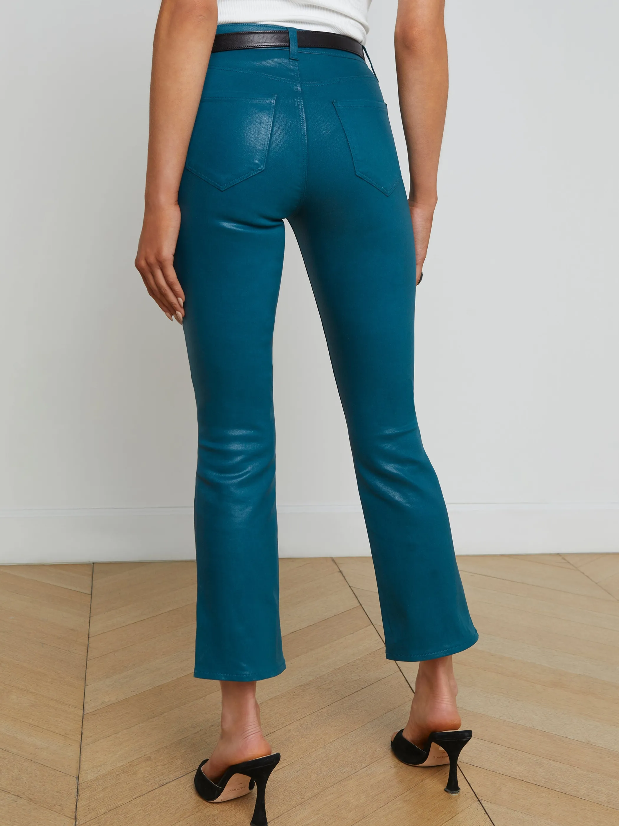 The cropped Tati features a slim fit from hip to knee and a beautifully proportioned micro bootcut. Now in a jewel-toned coated denim.