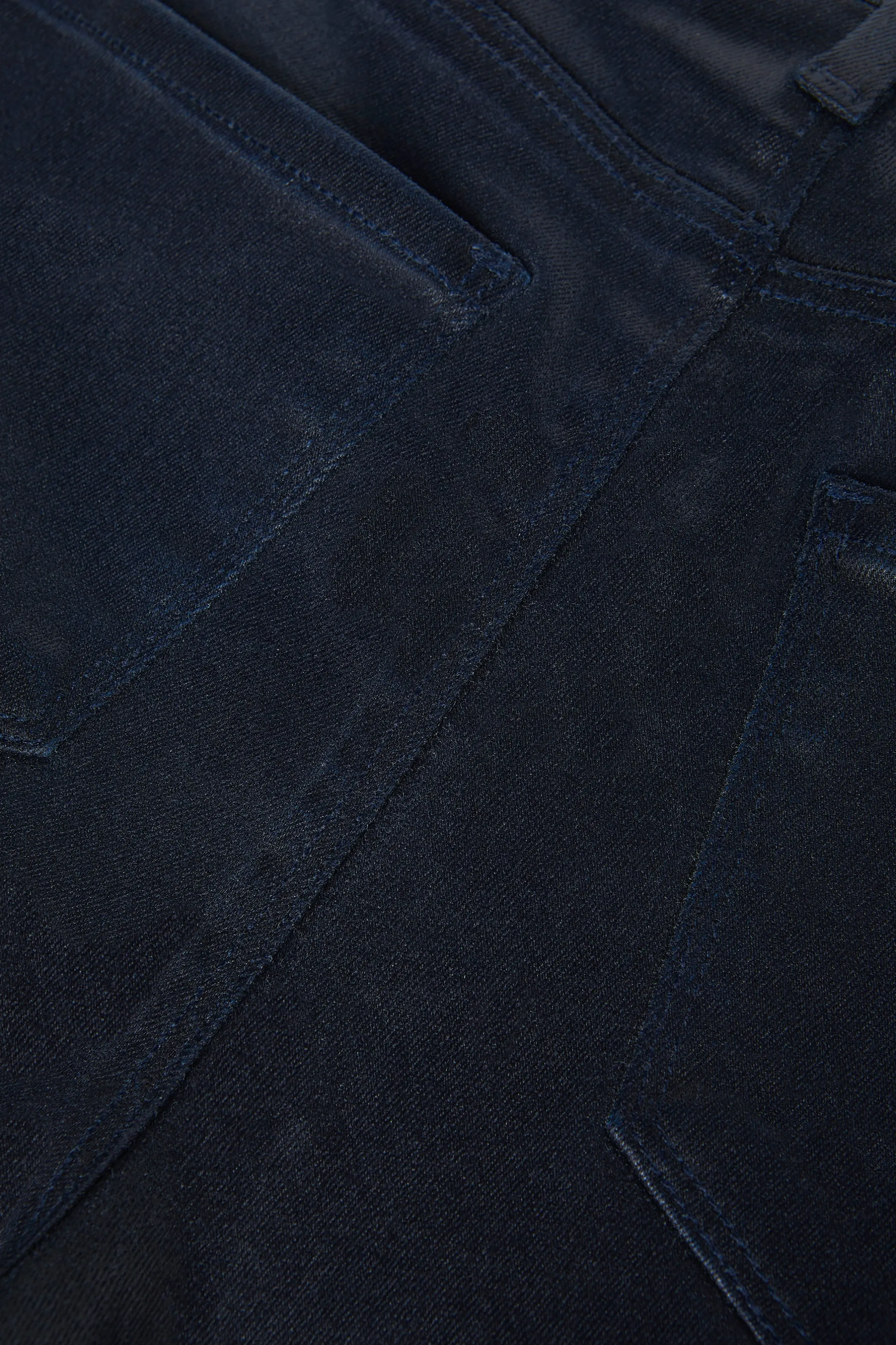 • Leather-look coated denim