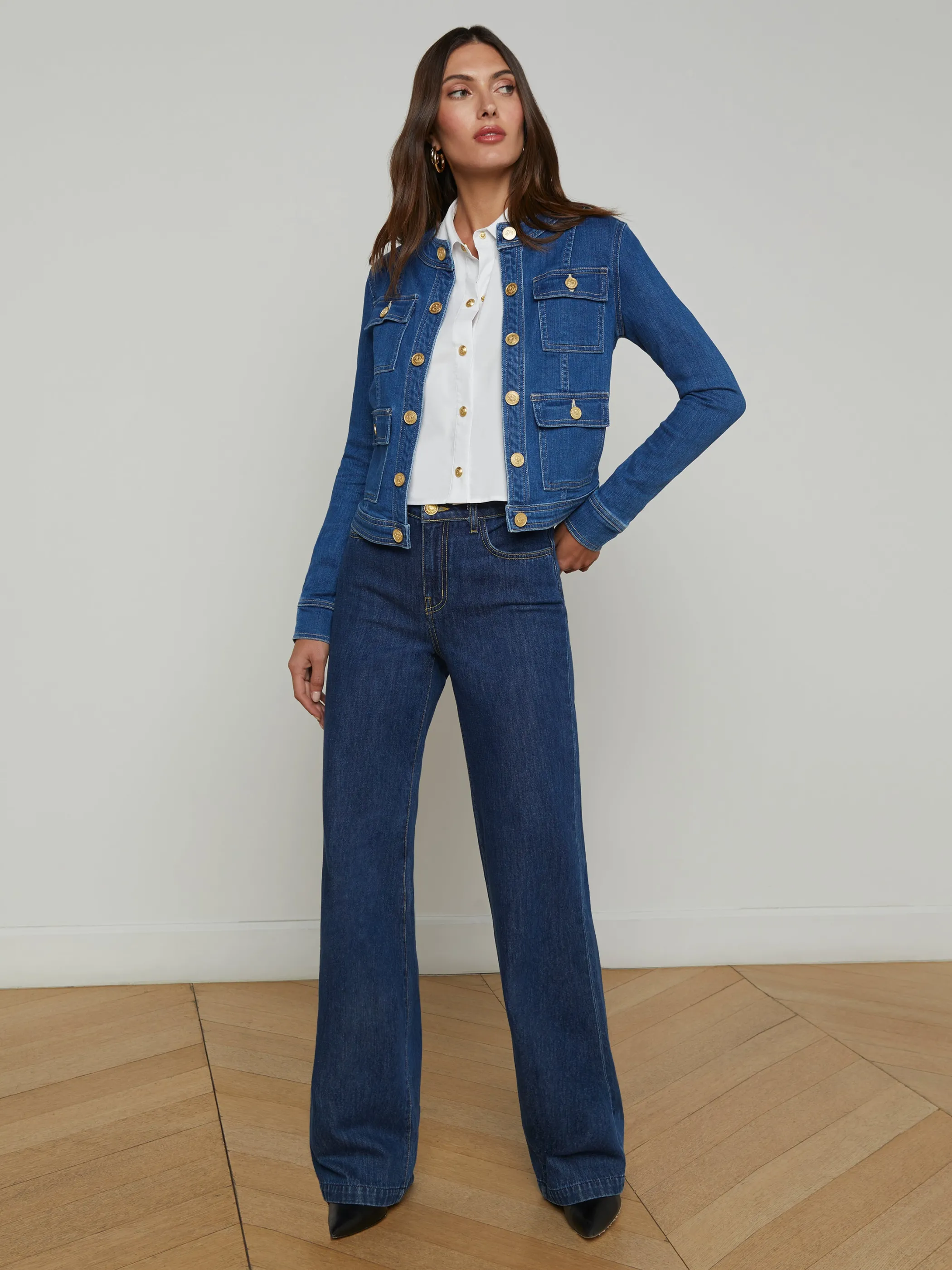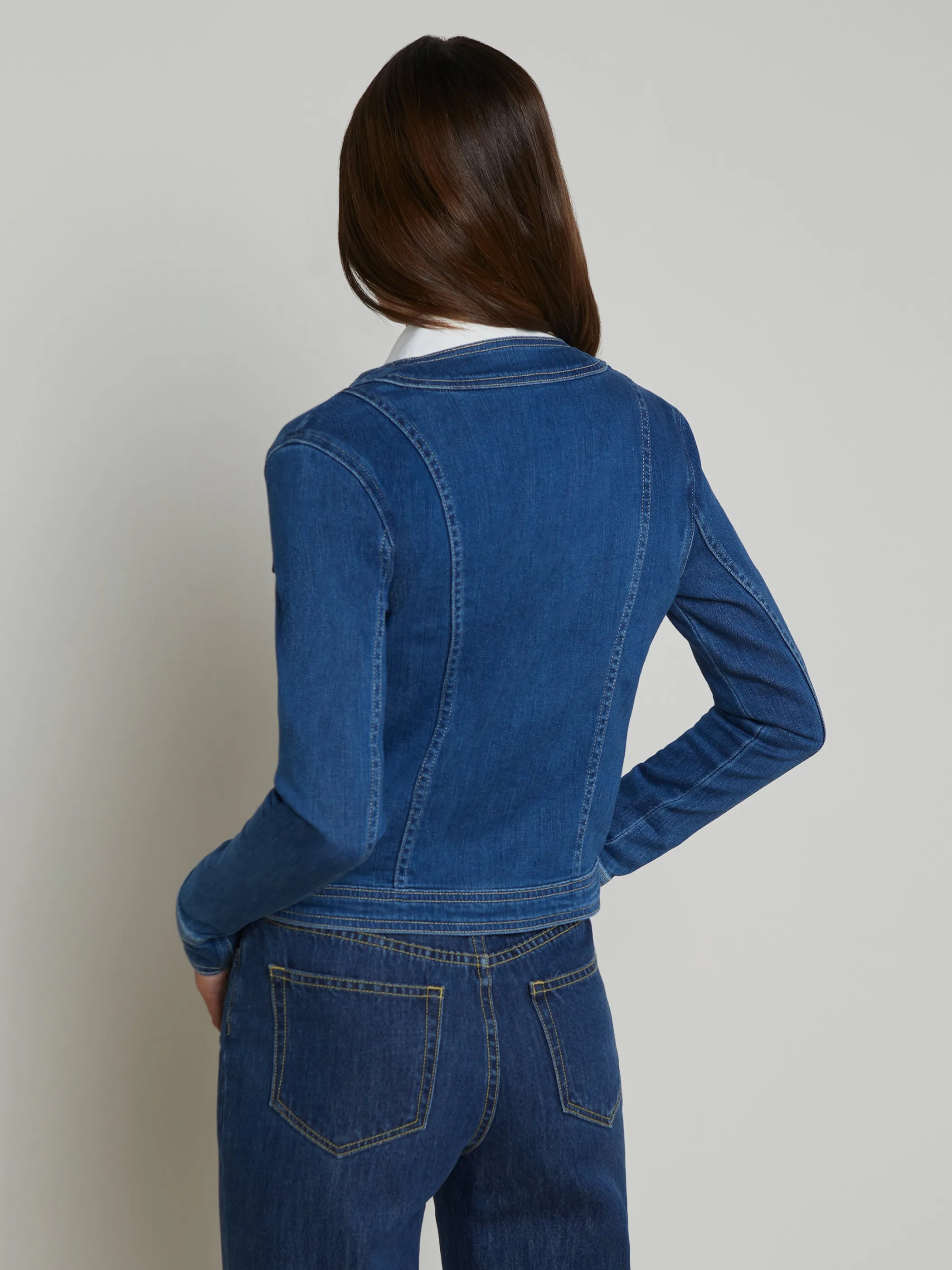 A jean jacket with the polish of a blazer. • Comfort stretch denim• Open-front style• Collarless design• 4 flap…