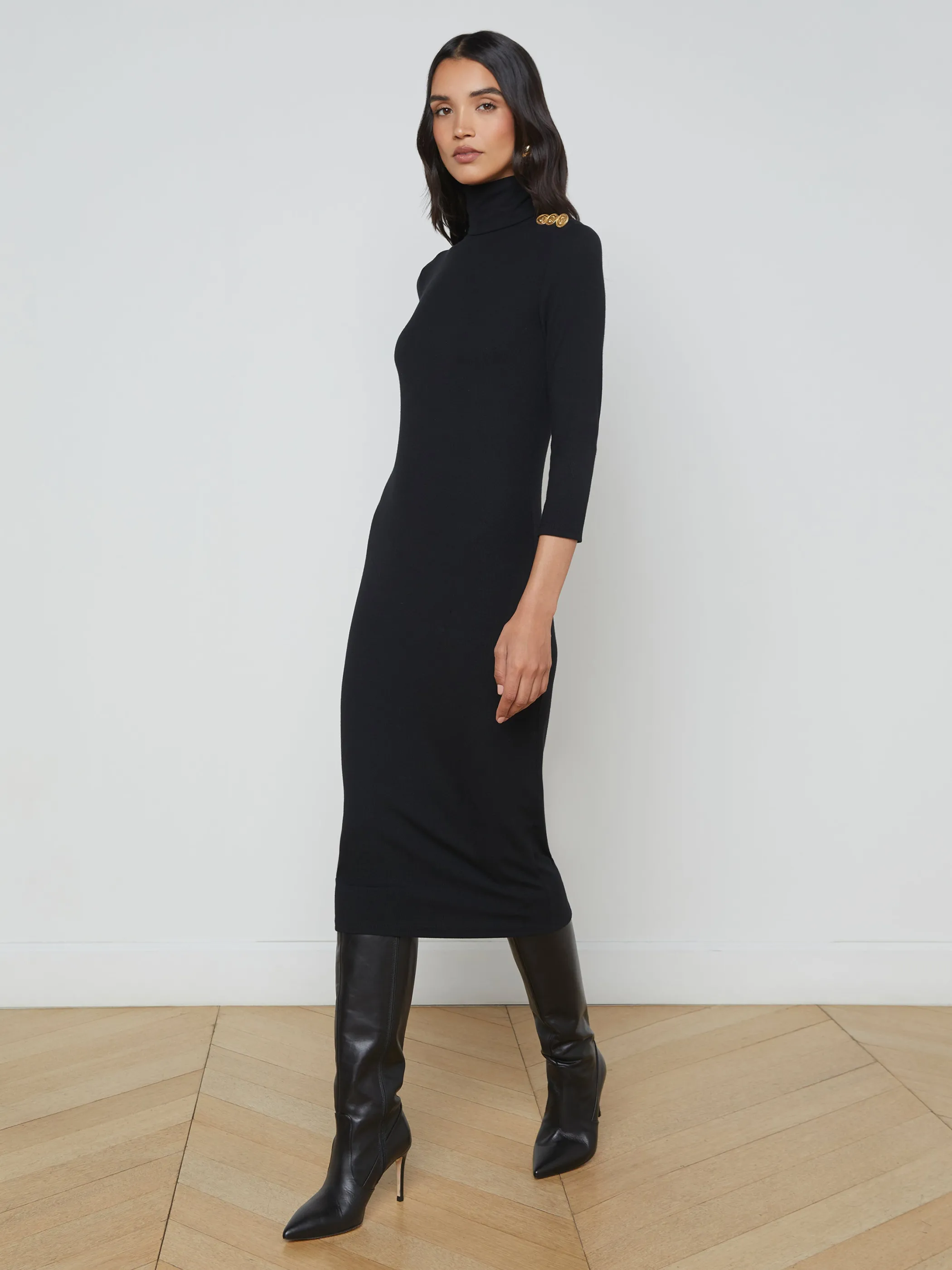 Our softest microfiber modal jersey is back in dress form. Featuring a comfortable turtleneck, three-quarter sleeves, and decorative coin detailing, Voletta is the fall to winter essential you’ll live in.