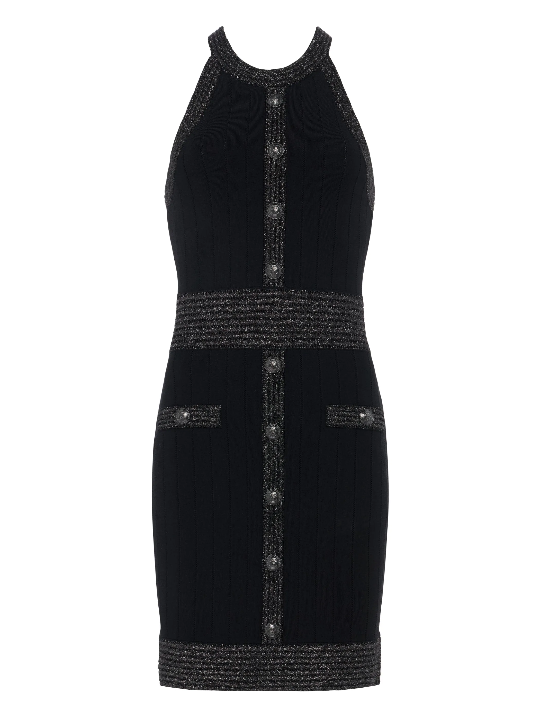 Classic Parisian sophistication meets a super sculpting knit. Lurex detailing accentuates the waist for a beautiful, defined figure.