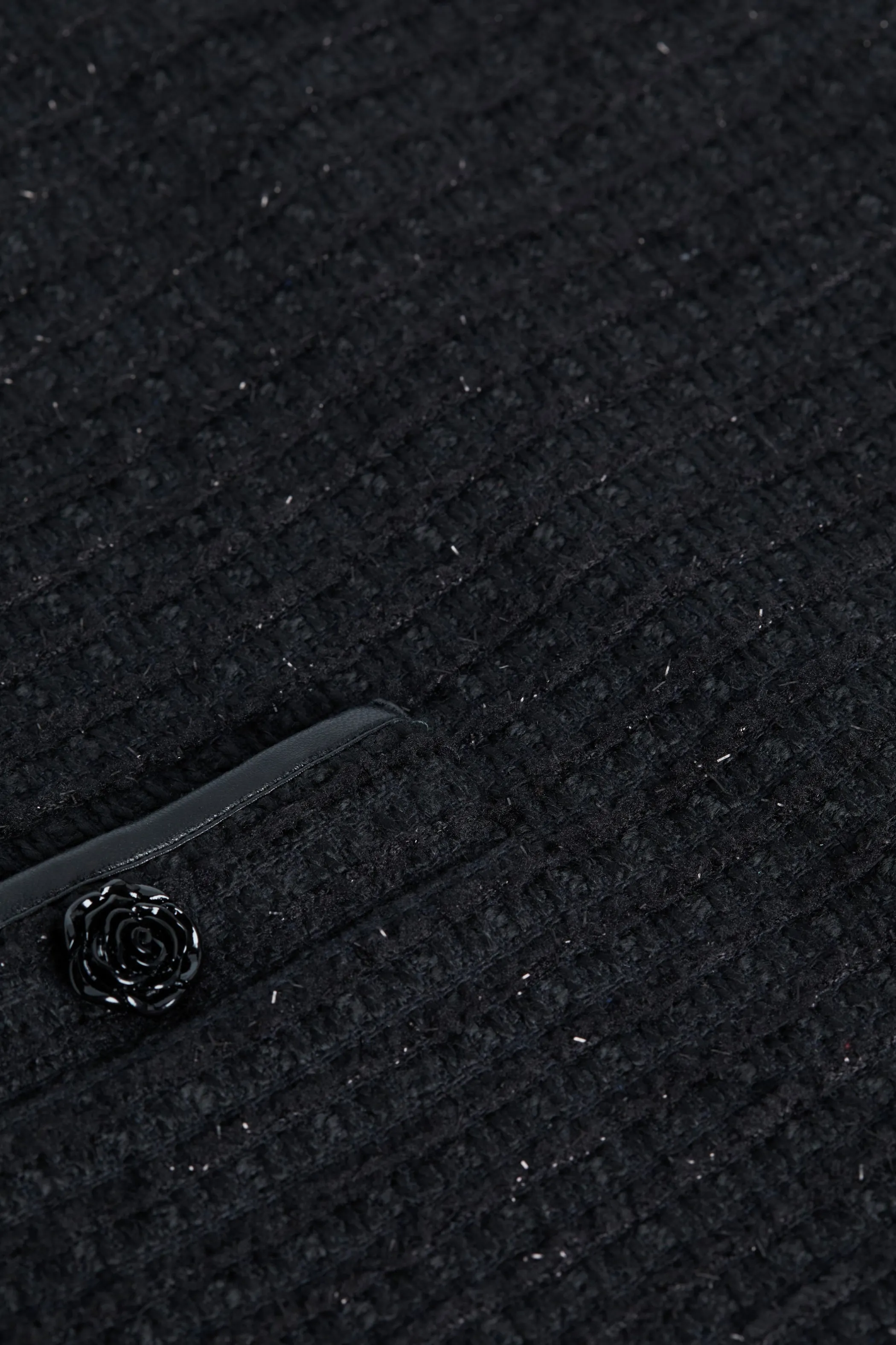 A clean, vintage-inspired shift dress cut from beautifully textured fringed tweed and finished with vegan leather piping…