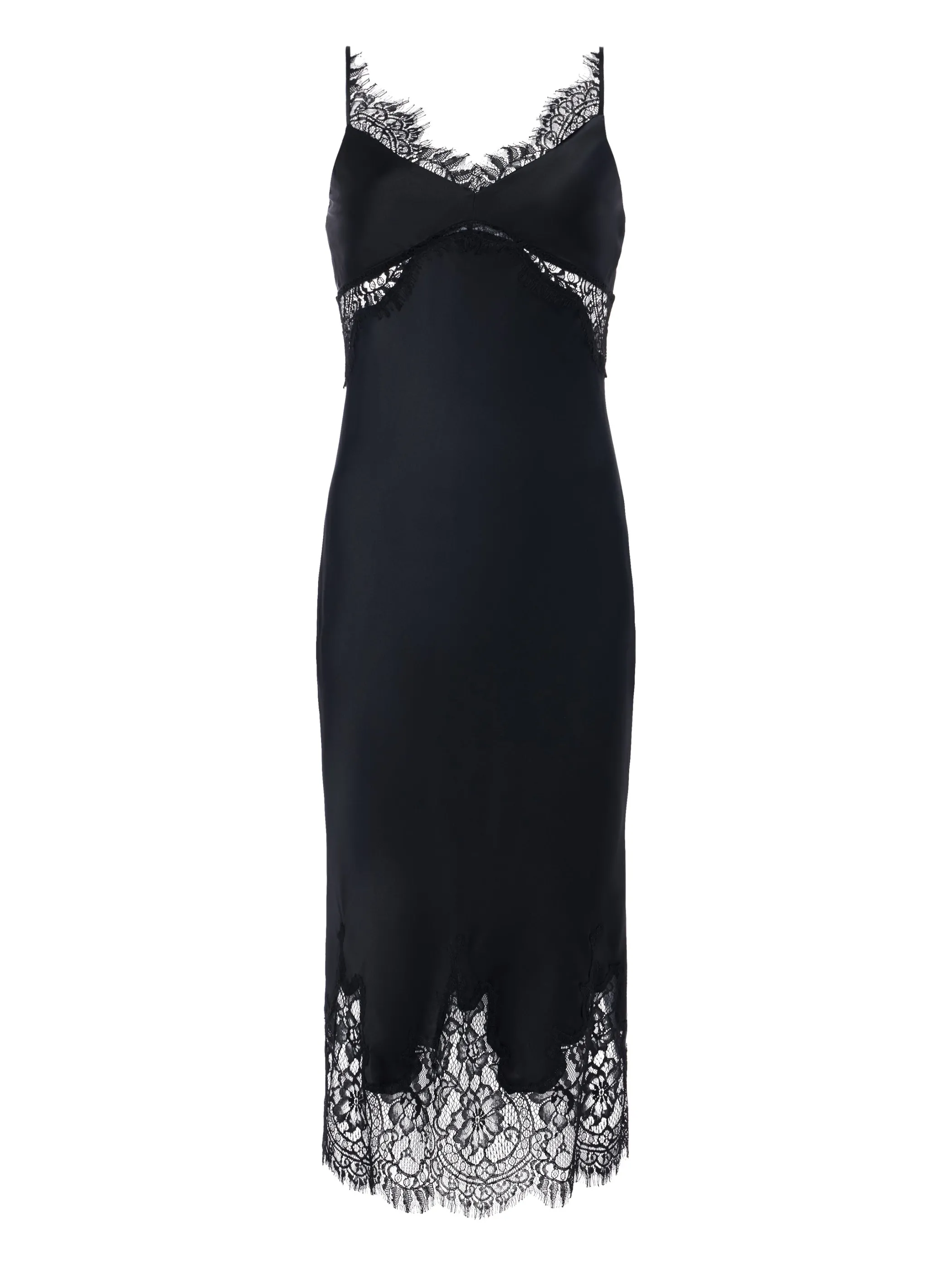 Strategically placed lace insets add a boudoir-inspired romance to this silk slip dress.