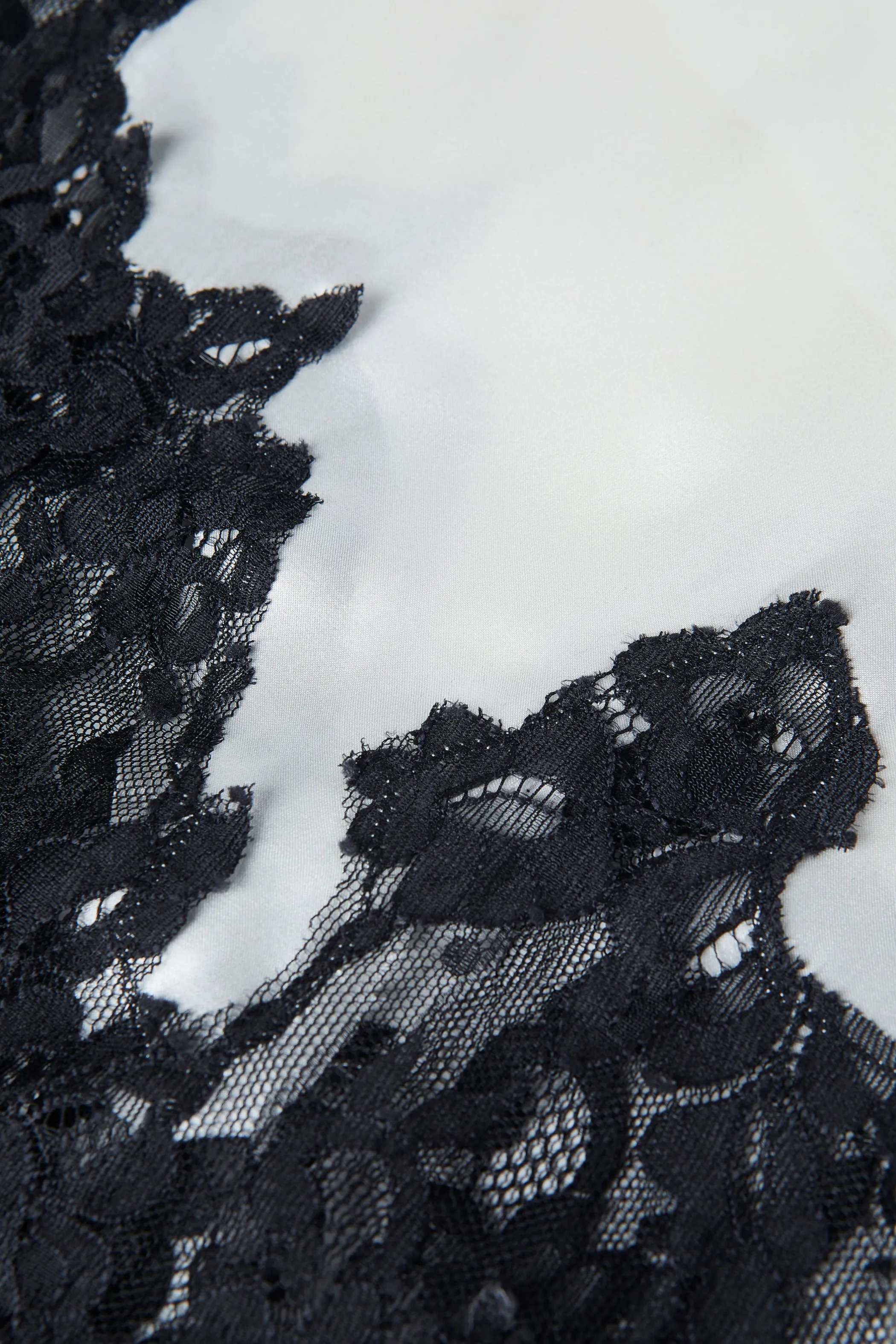Our stunning silk gown has been given a sultry update with strategically placed sheer lace insets. • Silk charmeuse fa…