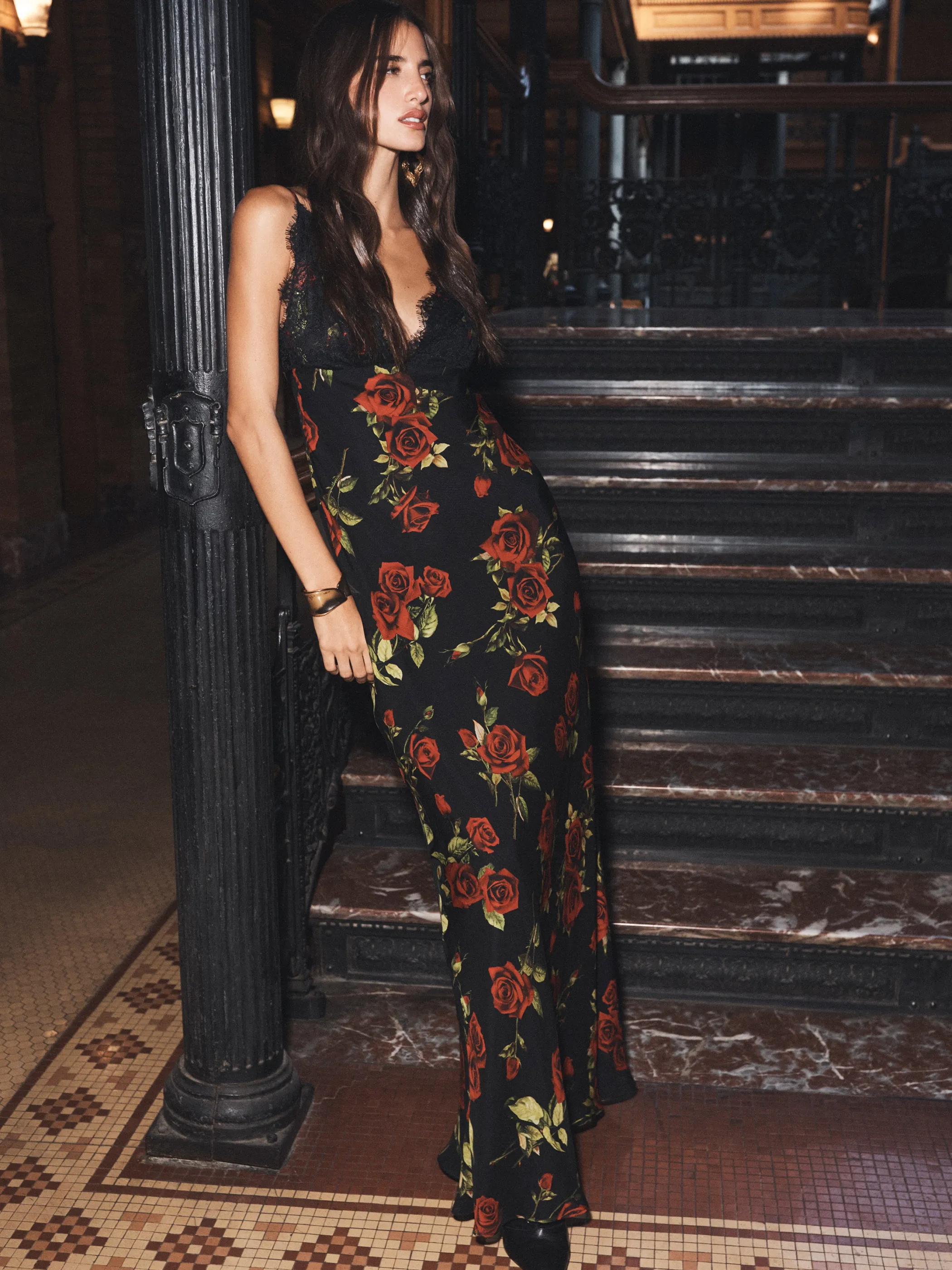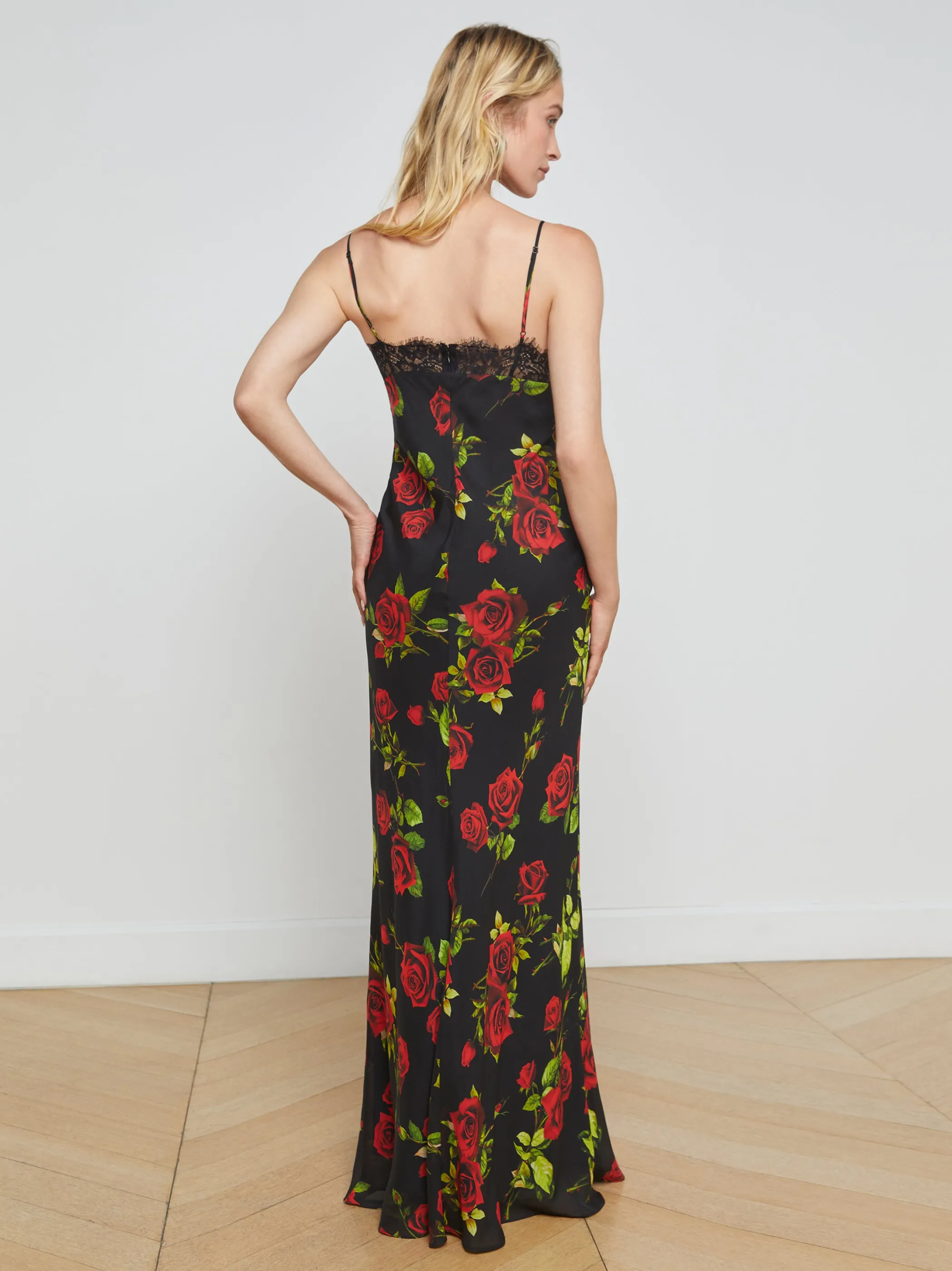 Intimate glamour defines the Susanna. Sultry lace offers the illusion of lingerie while fluid silk drapes beautifully against the figure.