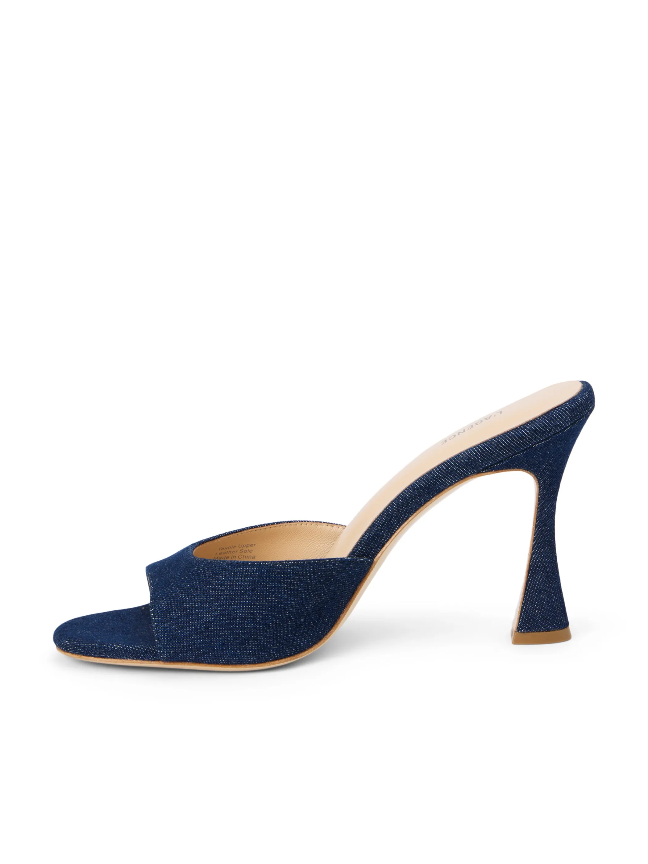 A subtly flared heel transforms a chic classic into an elegant statement. In versatile dark wash denim, the Avery backless sandal features a rounded-toe sole and clean vamp that keep the look timeless. Embrace head-to-toe denim by pairing it with jeans and a jacket or pair it with a dress to add texture.