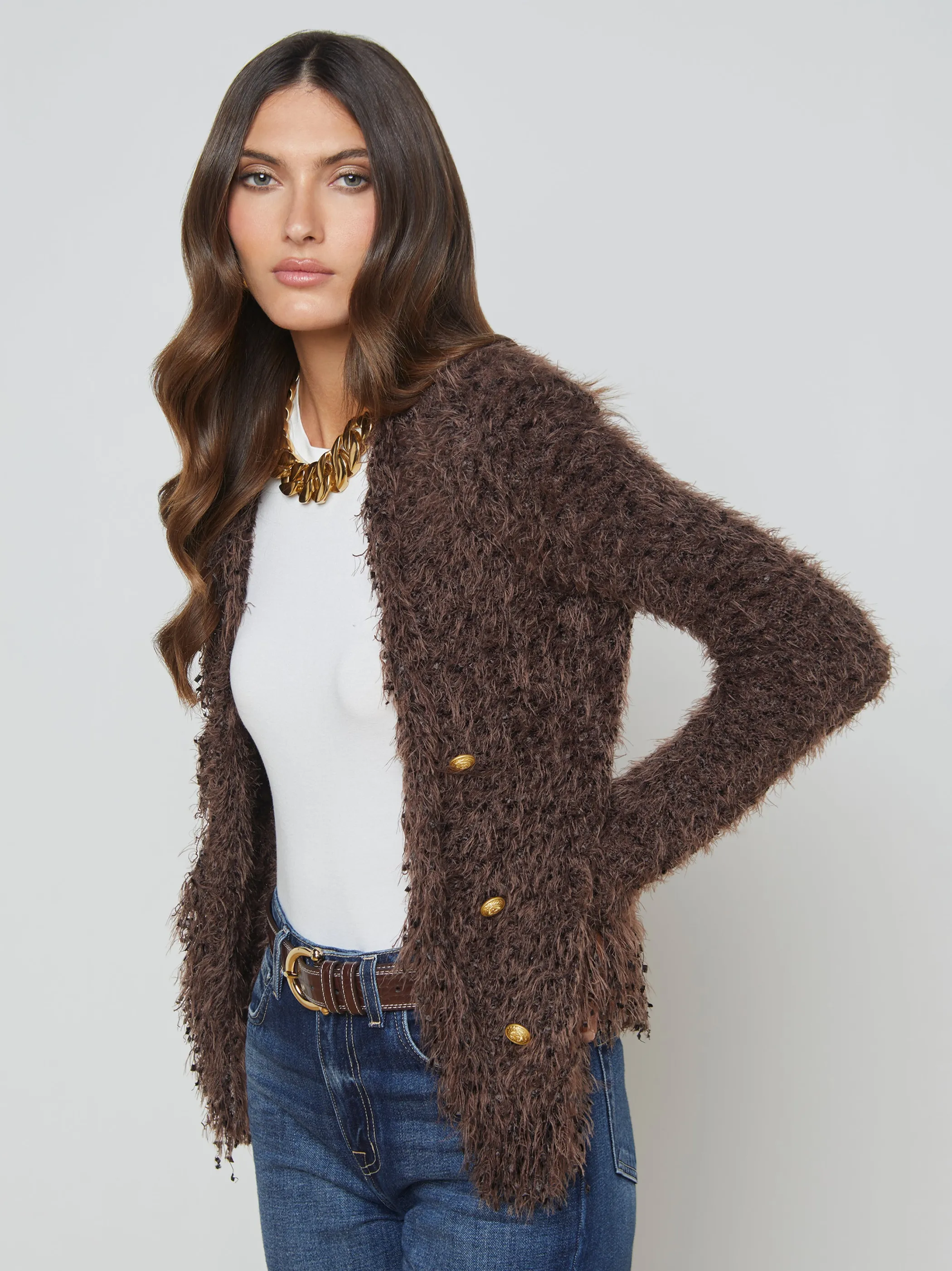 Cozy meets polished in our bestselling Azure cardigan blazer, now in chocolate ganache.• Super soft confetti knit• N…