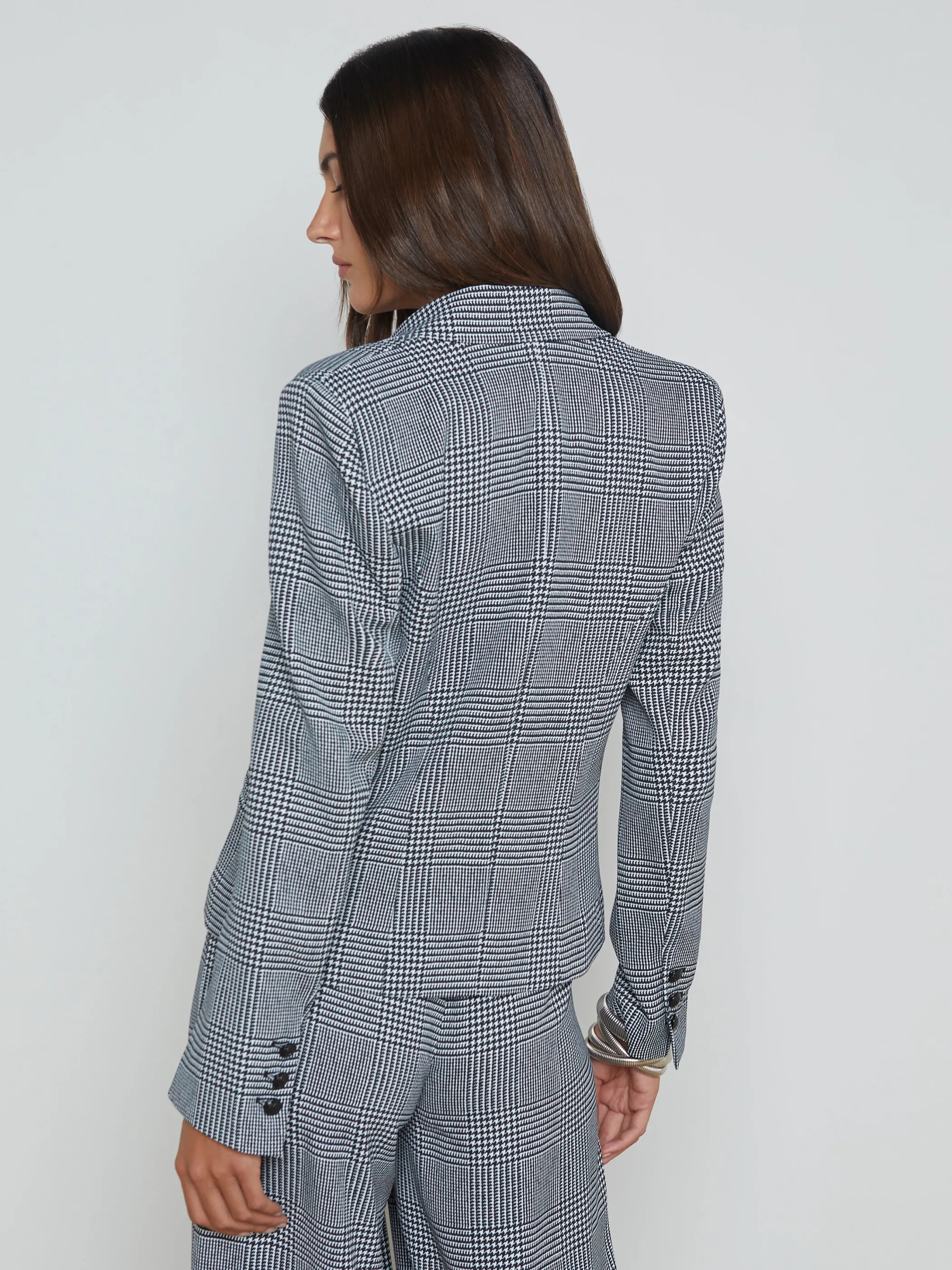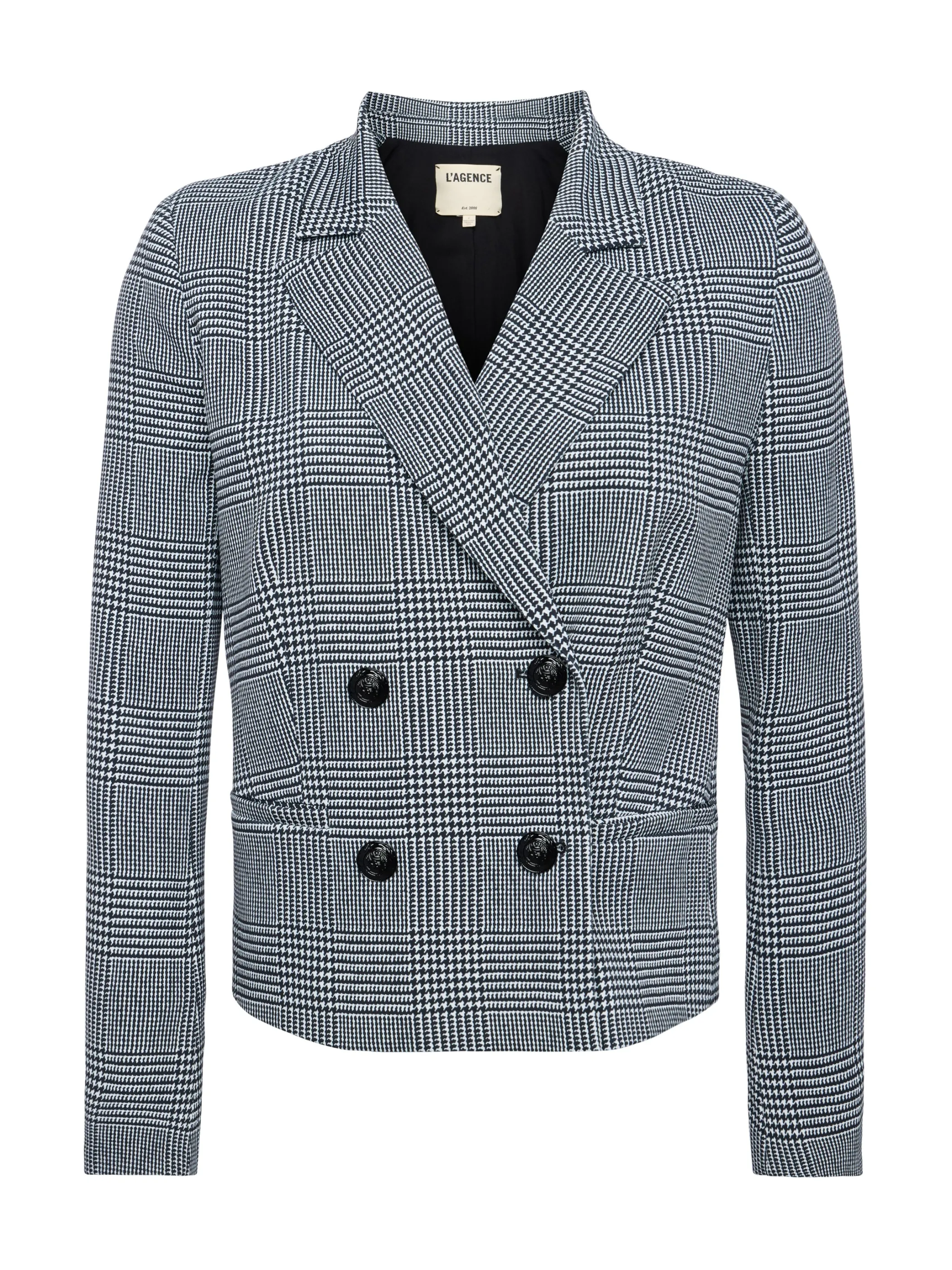A classic houndstooth plaid meets a cool, boxy cut. • Plaid stretch suiting fabric• Fully lined• Double-breasted s…