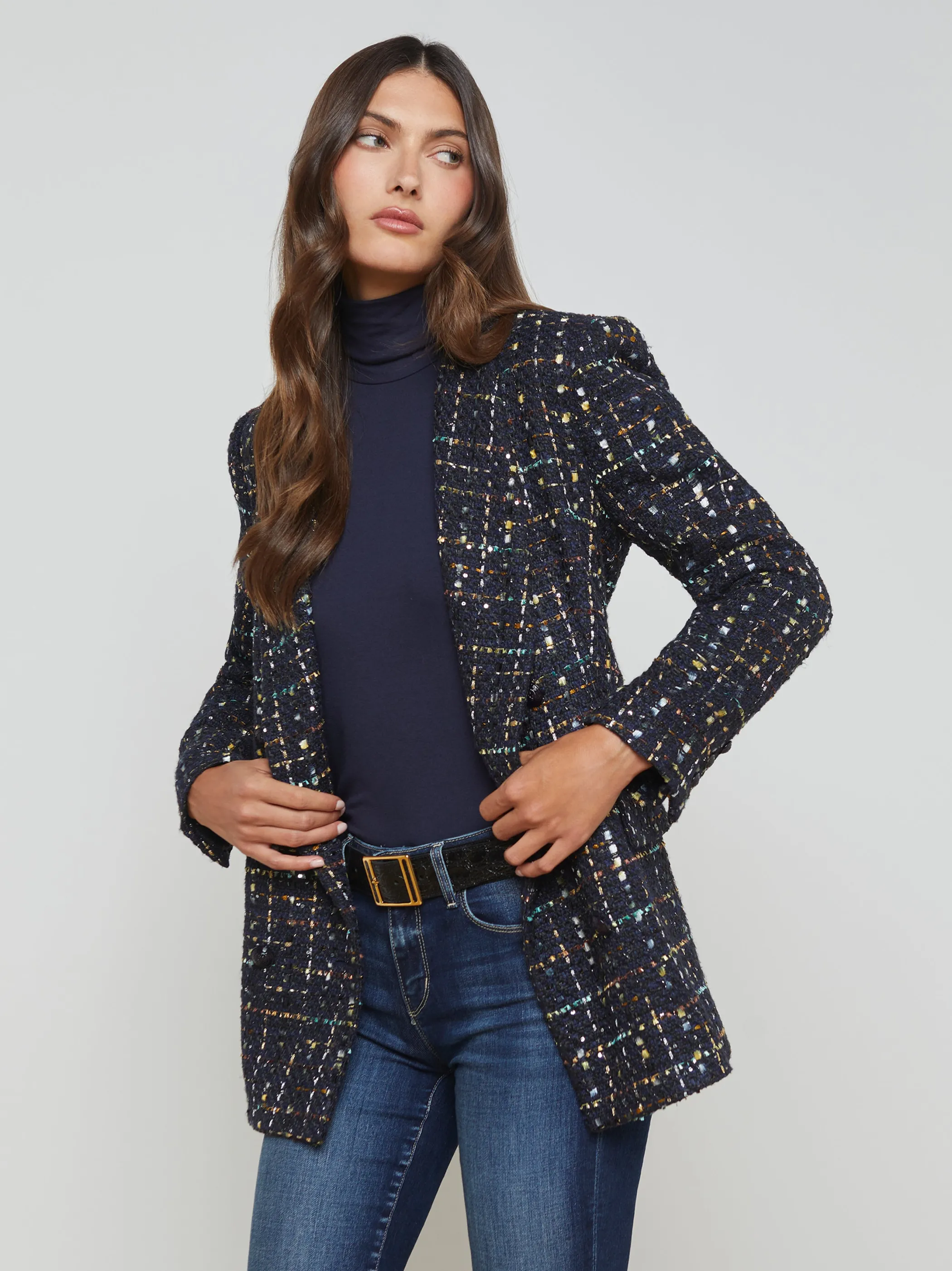 Blazers & Jackets*L’AGENCE LEONORA SEQUIN KNIT BLAZER Black/SilverSequin