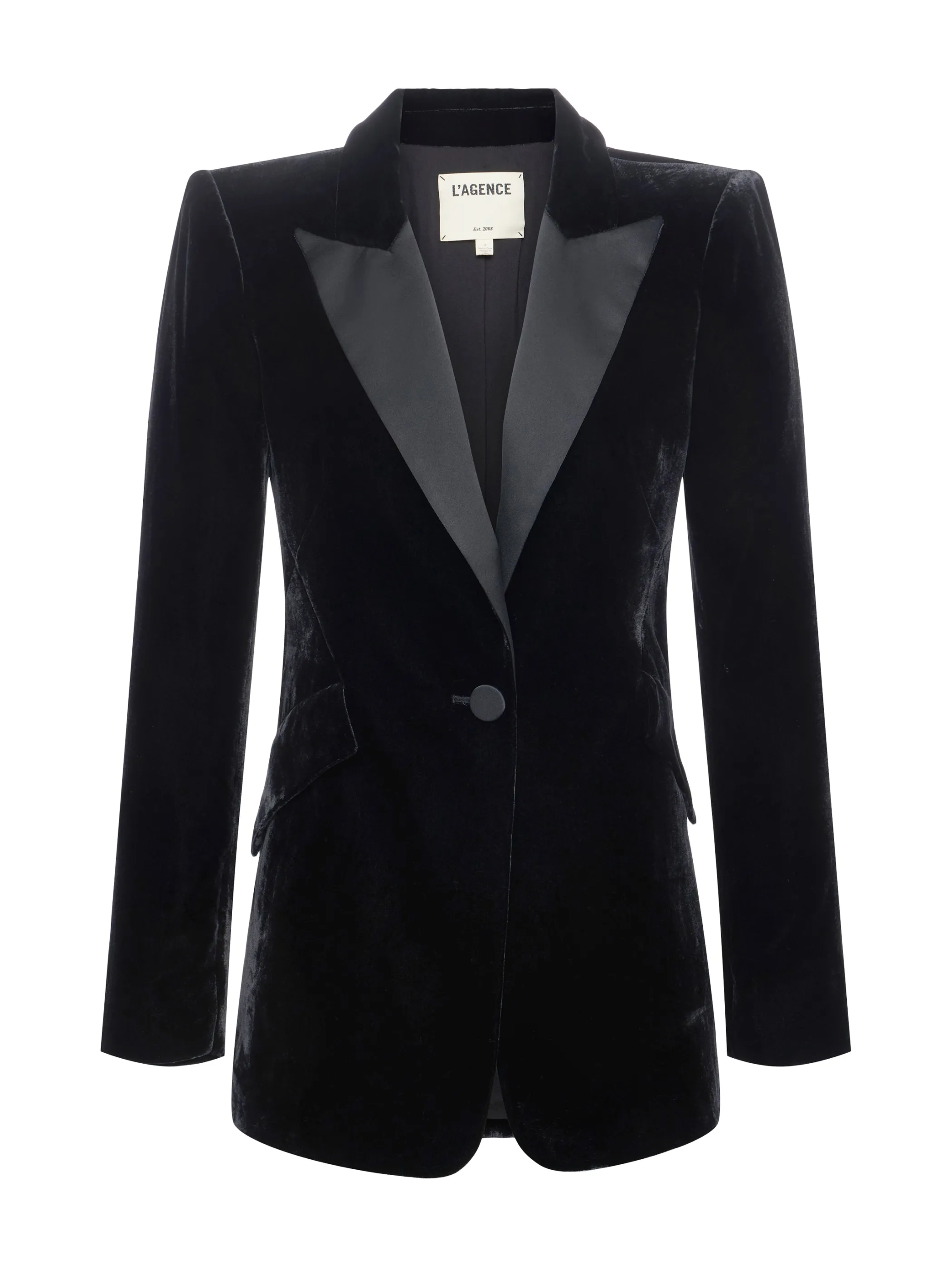 A sleek, longline blazer, cut close to the figure for a flattering, slim fit. • Silk-infused velvet • Fully lined•…