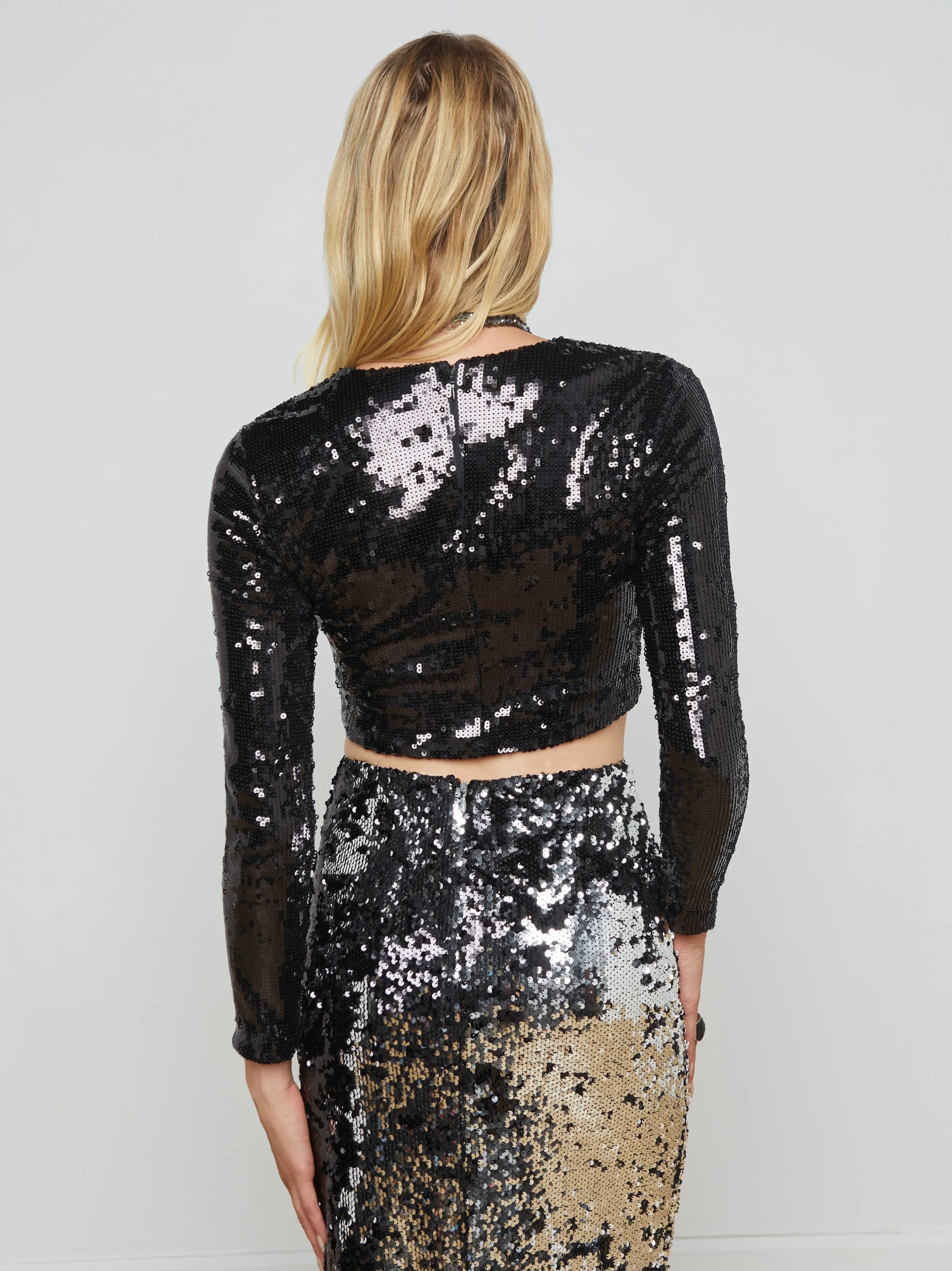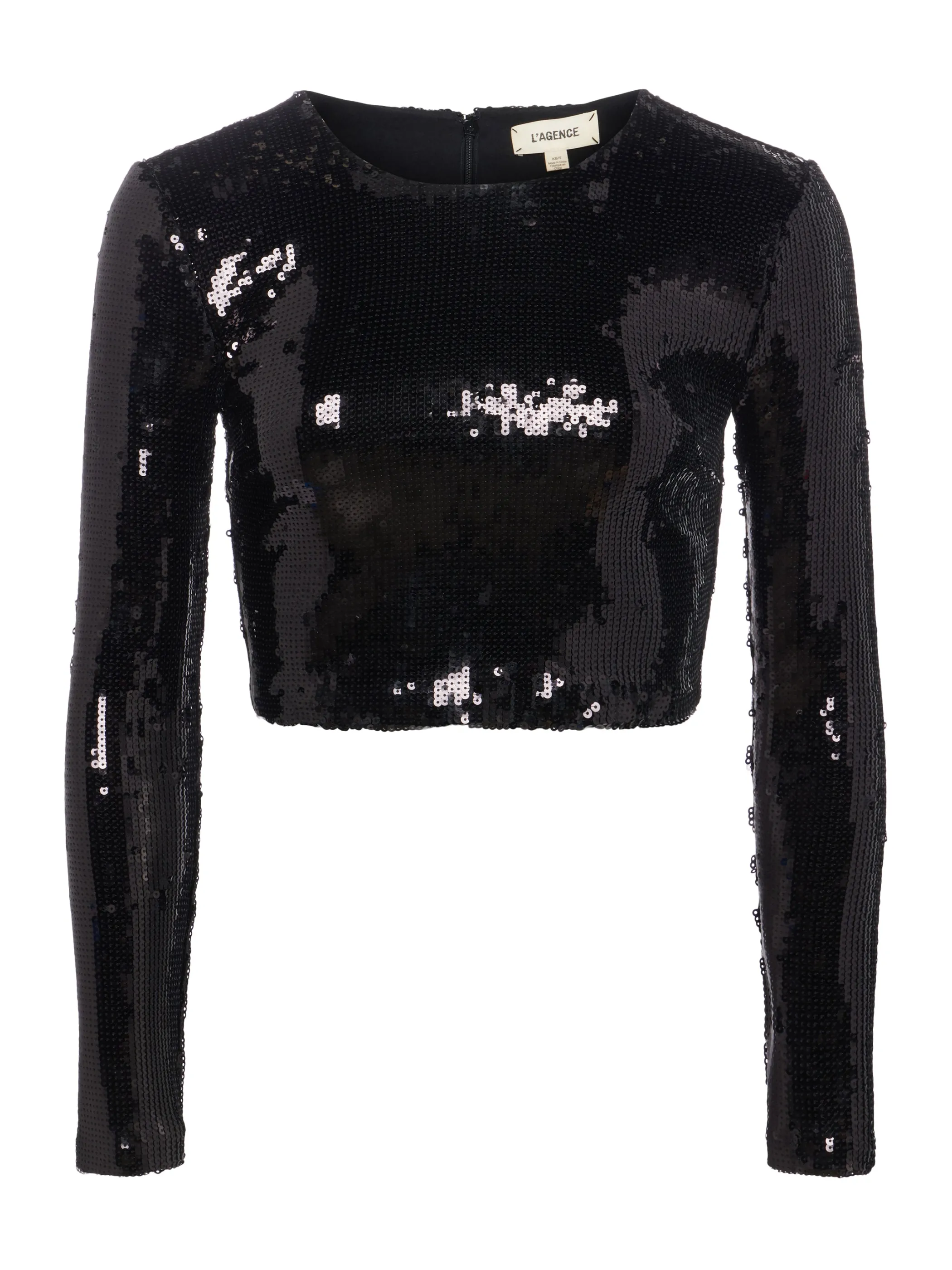 The Rogan is a minimalist statement—where clean, classic shapes meet allover black sequins. Pair with another statement piece for your next occasion or with classic blue jeans for a night out.