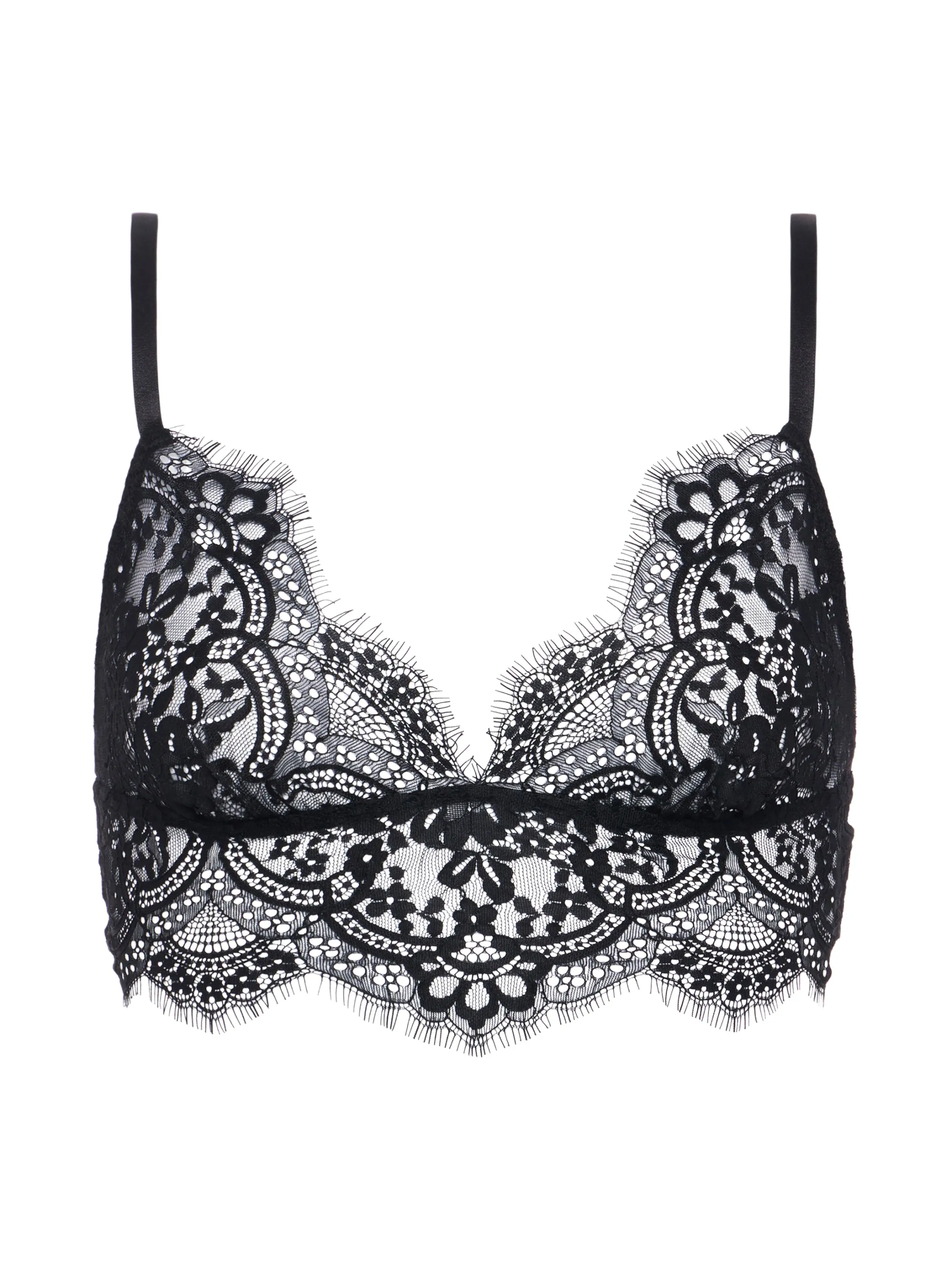 The perfect little something to slip under every look. • Sheer stretch lace• Scalloped edges with eyelash trim• Ad…