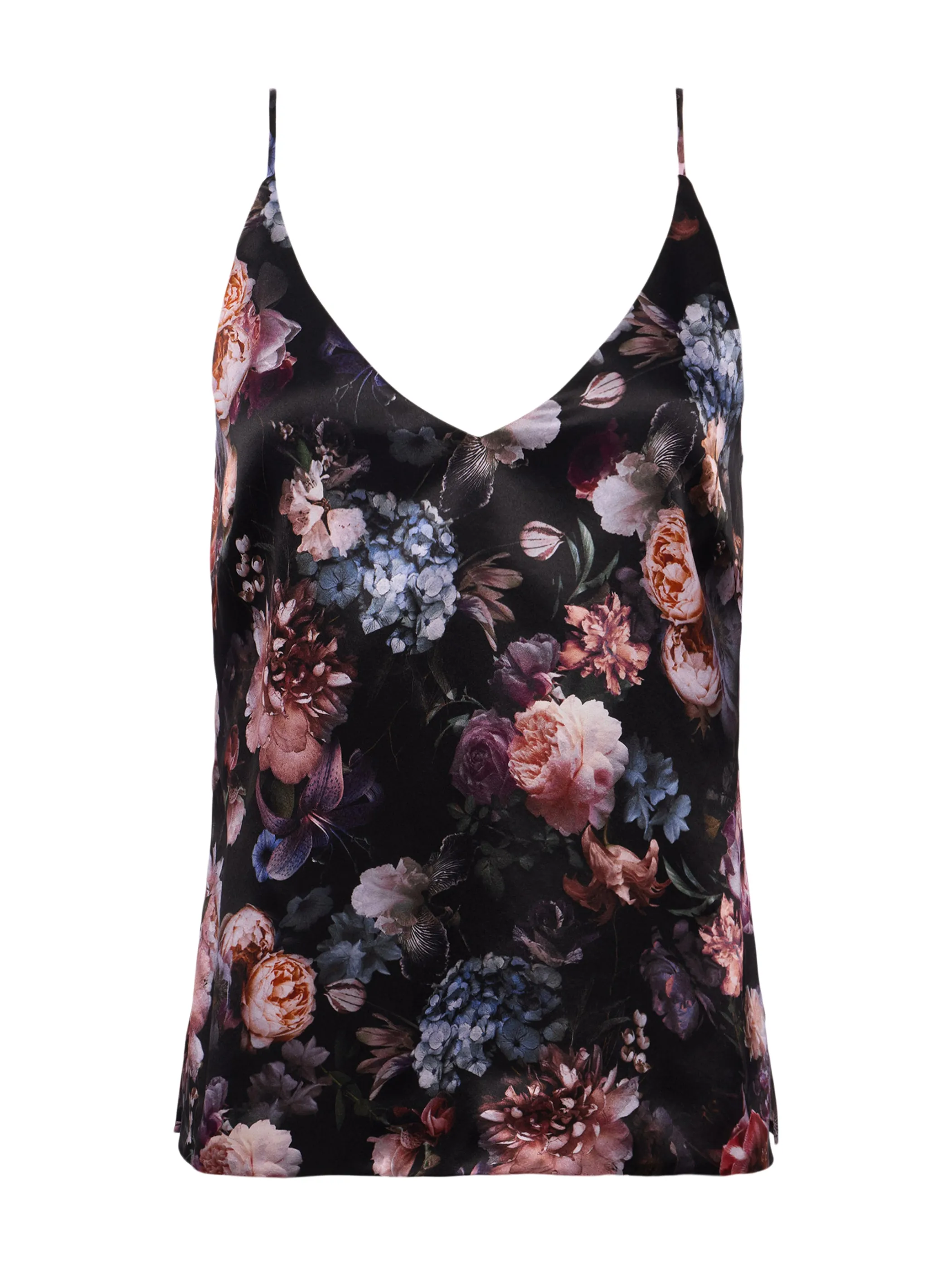 Our signature silk camisole, cut with a deeper V-neck and slimmer fit. Now in a vintage-inspired floral print.