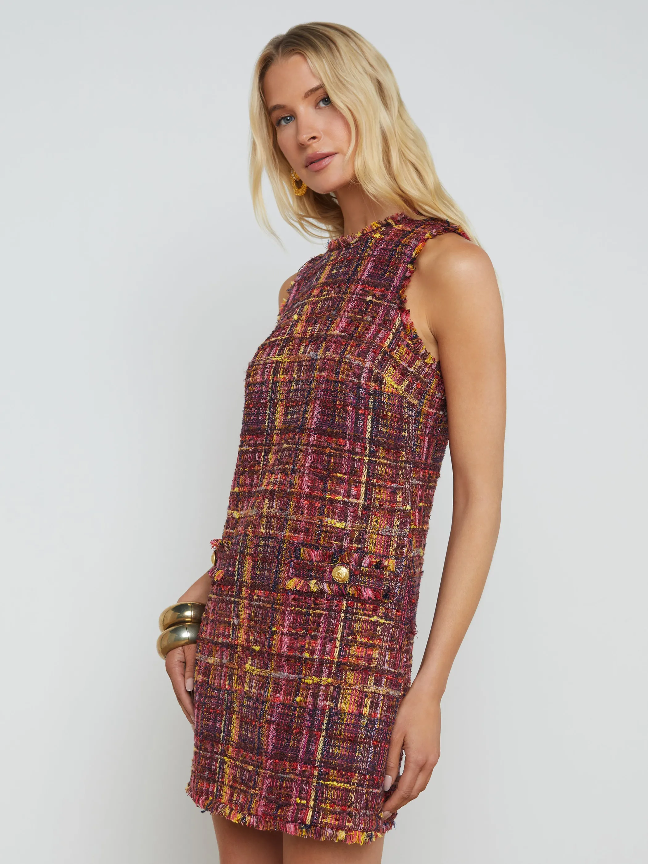 A clean, vintage-inspired shift dress cut from beautifully textured tweed.