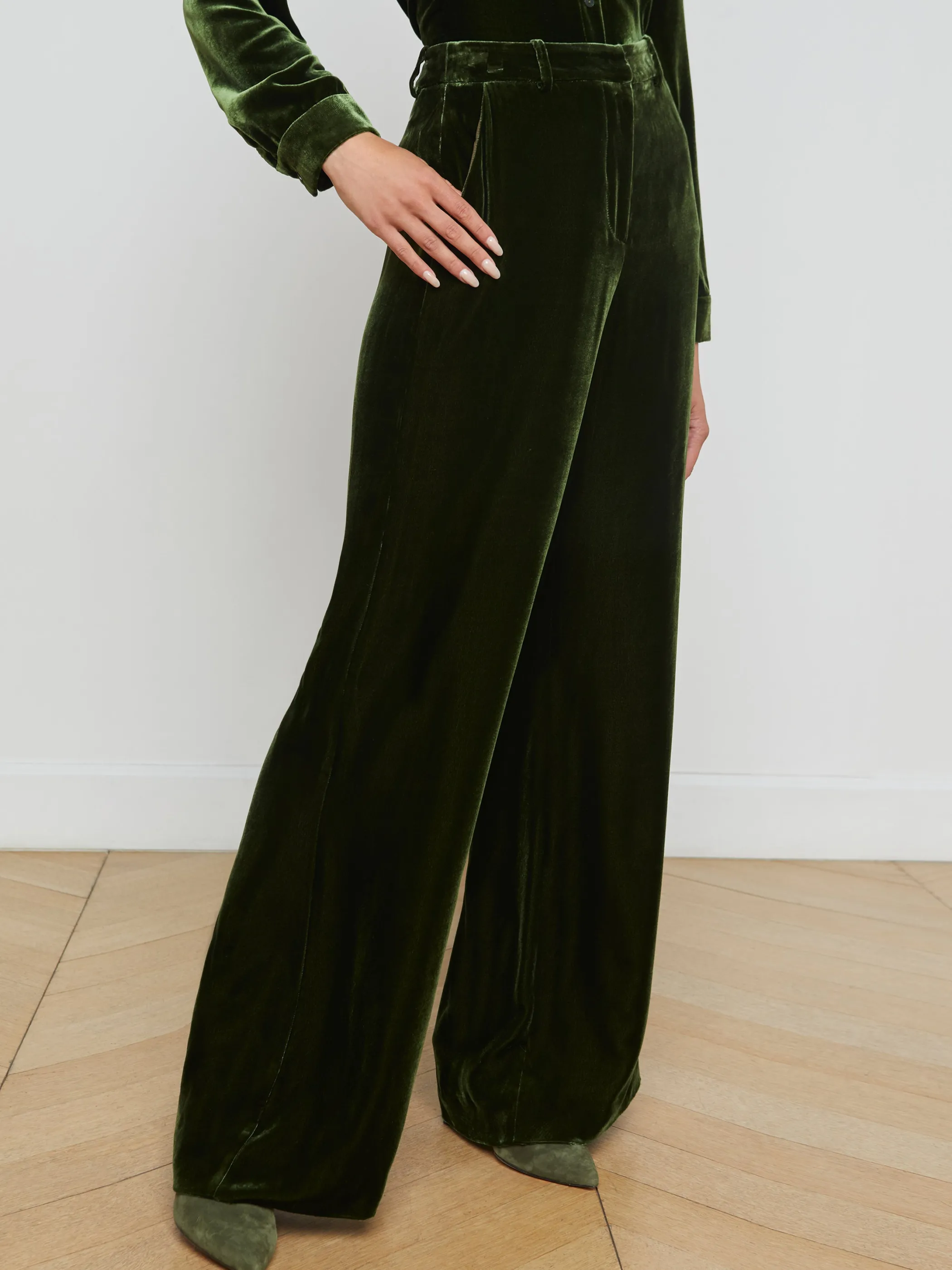 Pilar is the perfectly proportioned pant, renewed each season in fresh fabrications and colorways.• Silk-infused velve…