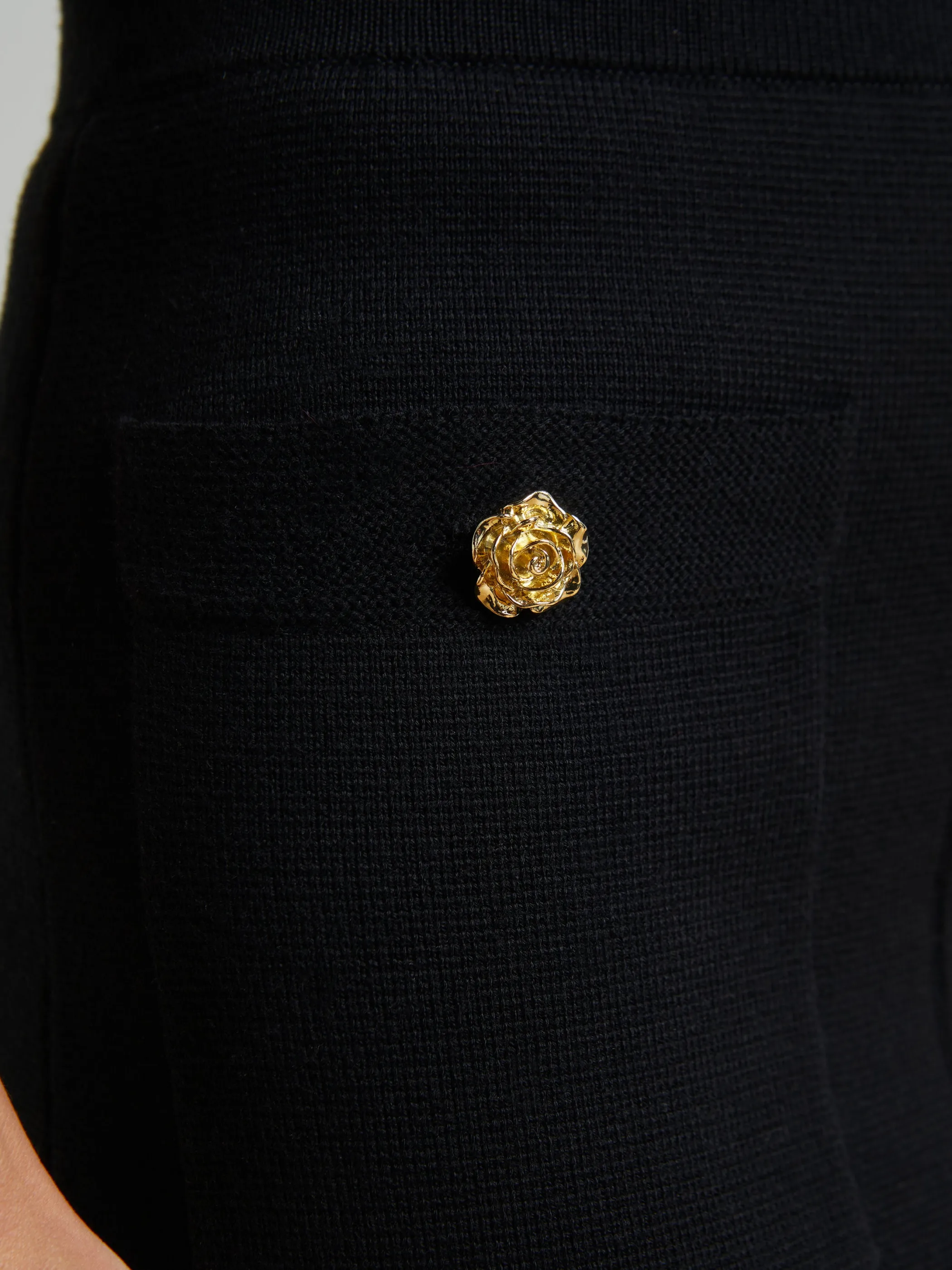 The Amira is a classic office-ready silhouette in a comfortable knit, now updated with gold rose buttons.