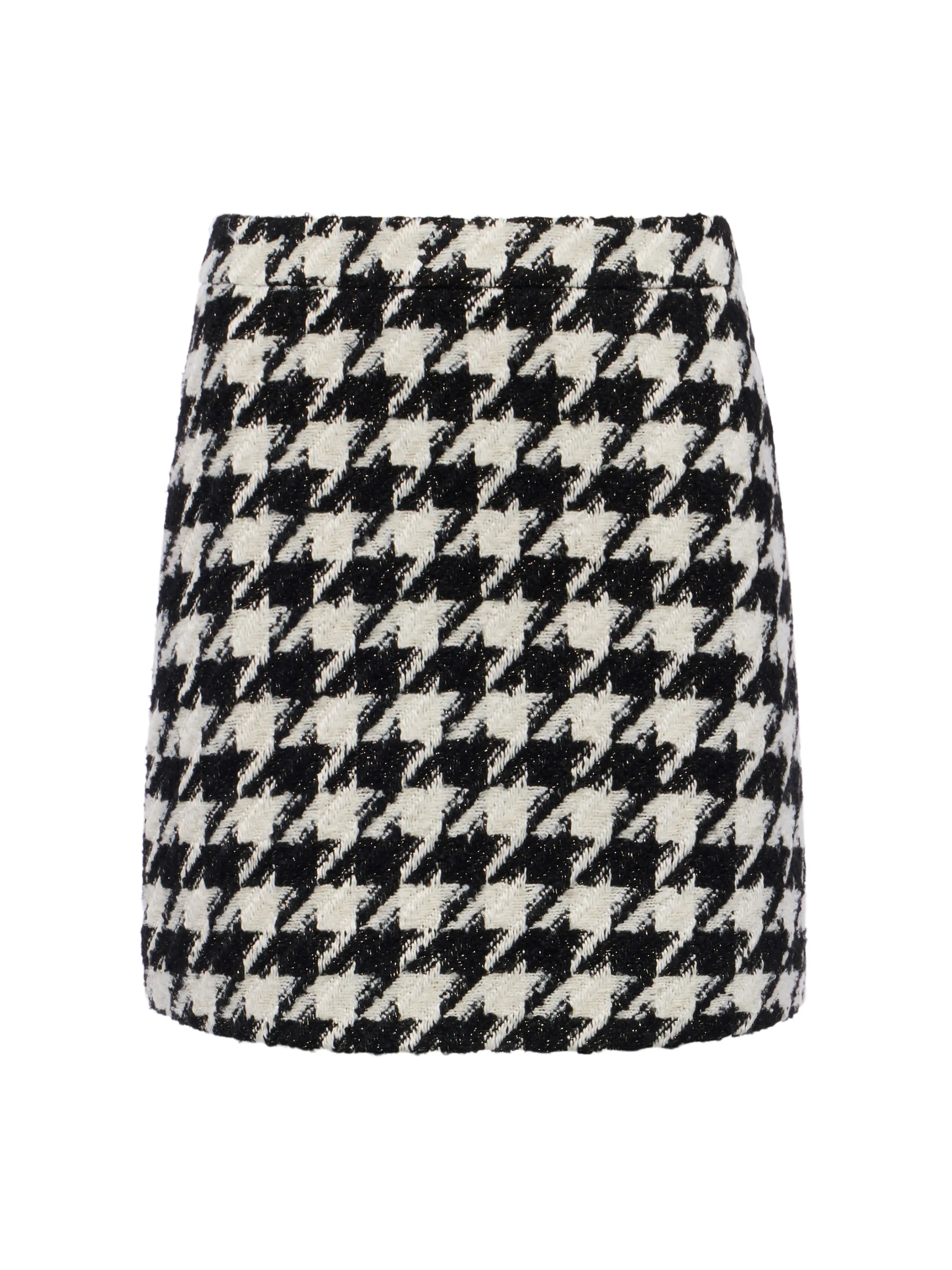 Modern prep in mini skirt form, with an oversized graphic houndstooth.
