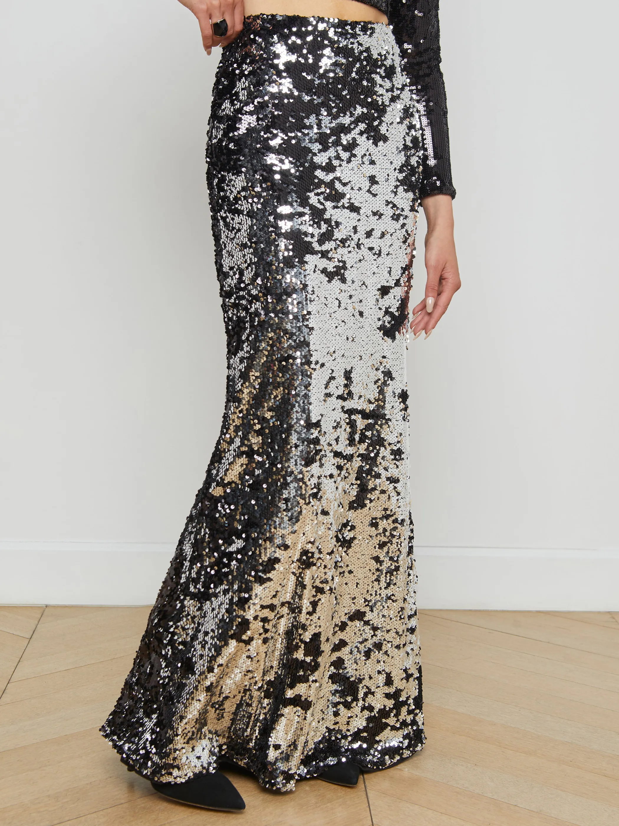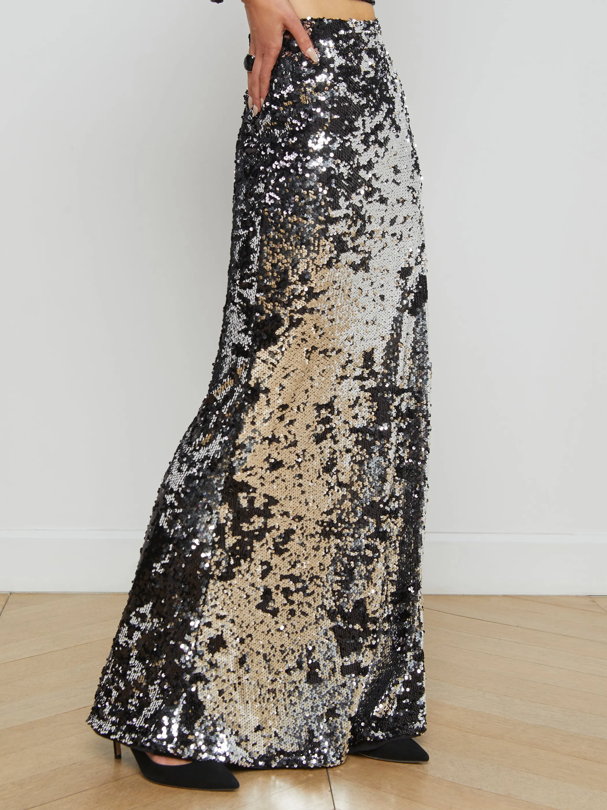 Our bestselling maxi skirt has been reworked into a stunning statement with a mix of silver and black sequins for a textured effect.