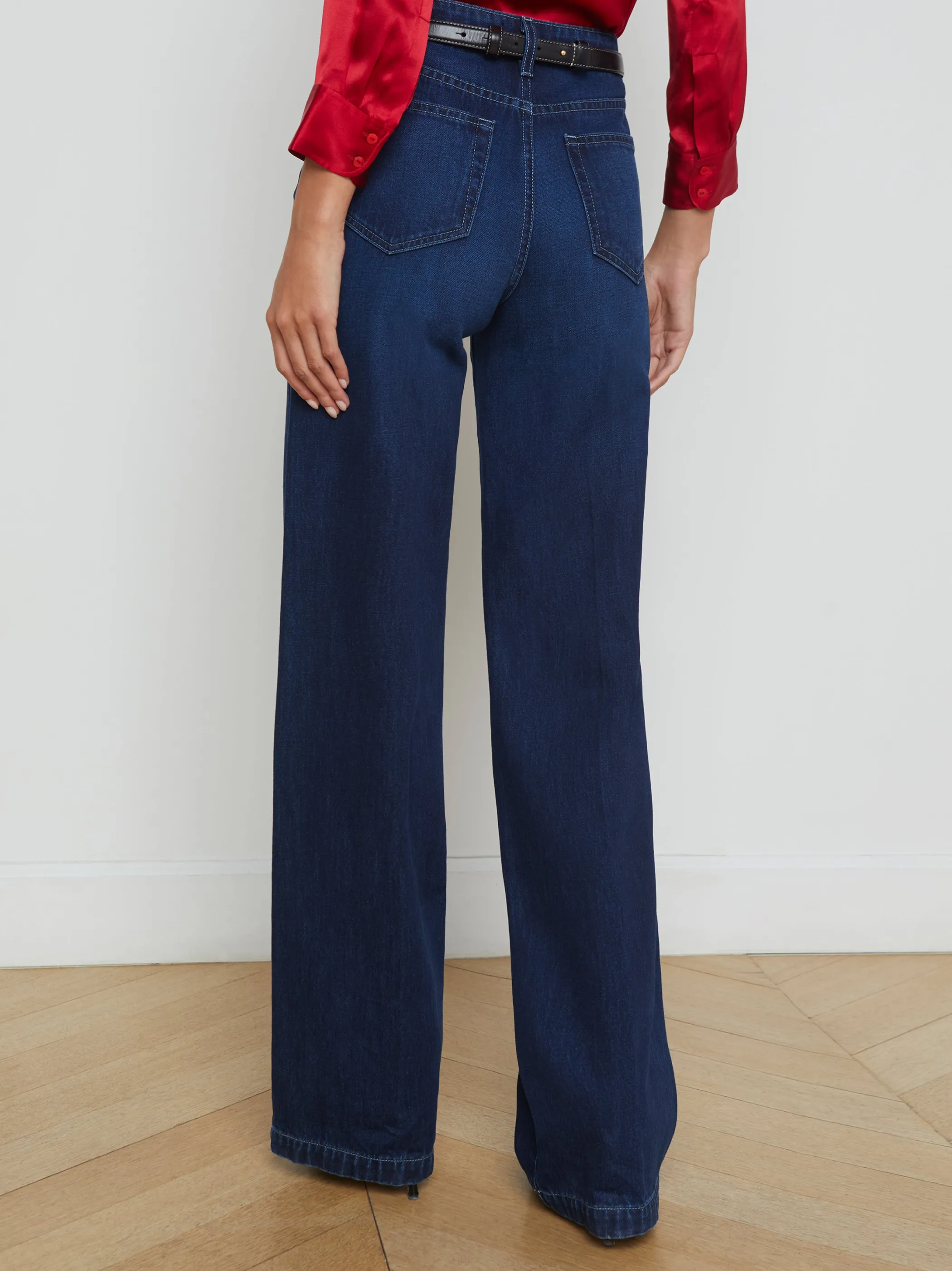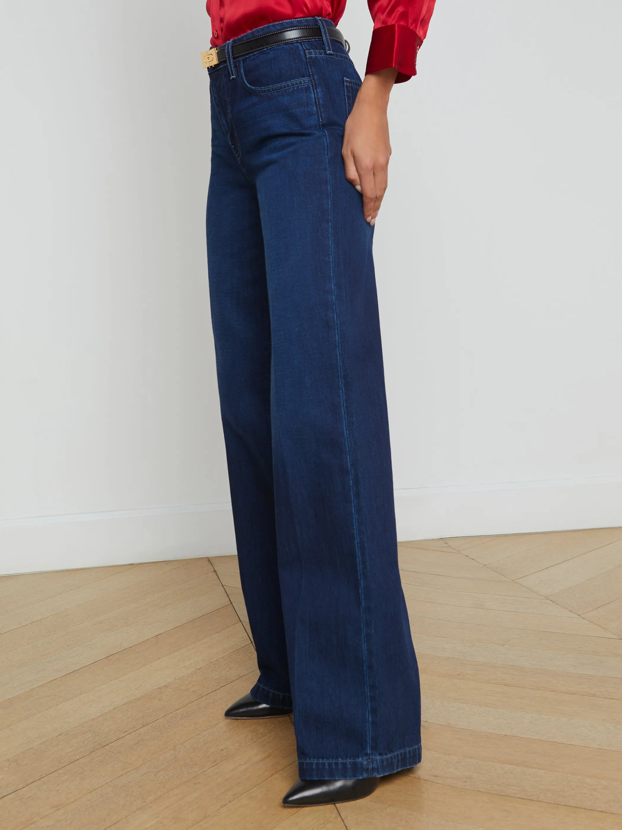 Clayton is our tall wide-leg jean, featuring a flattering, slim fit through the hips and a contoured waistband that sits securely at the natural waist without gaping. Now back in a yarn-dyed deep indigo wash.