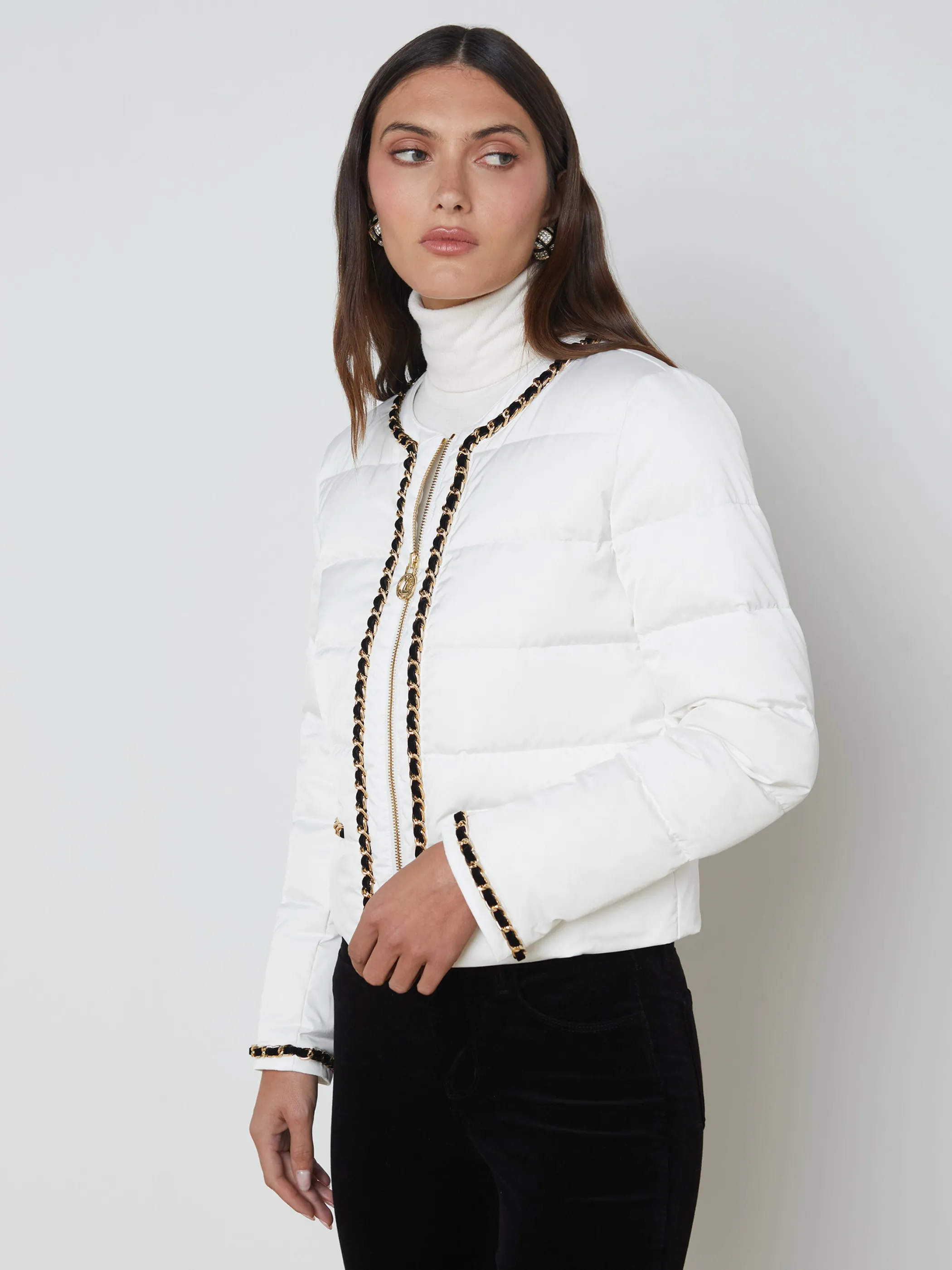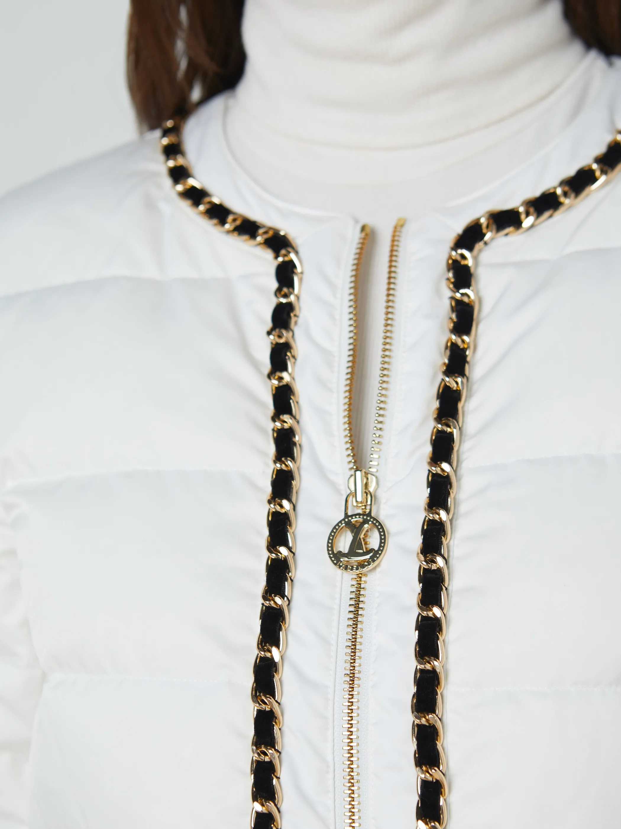The look of a chic jacket with the warmth of a puffer. Now in versatile white with contrast trim.
