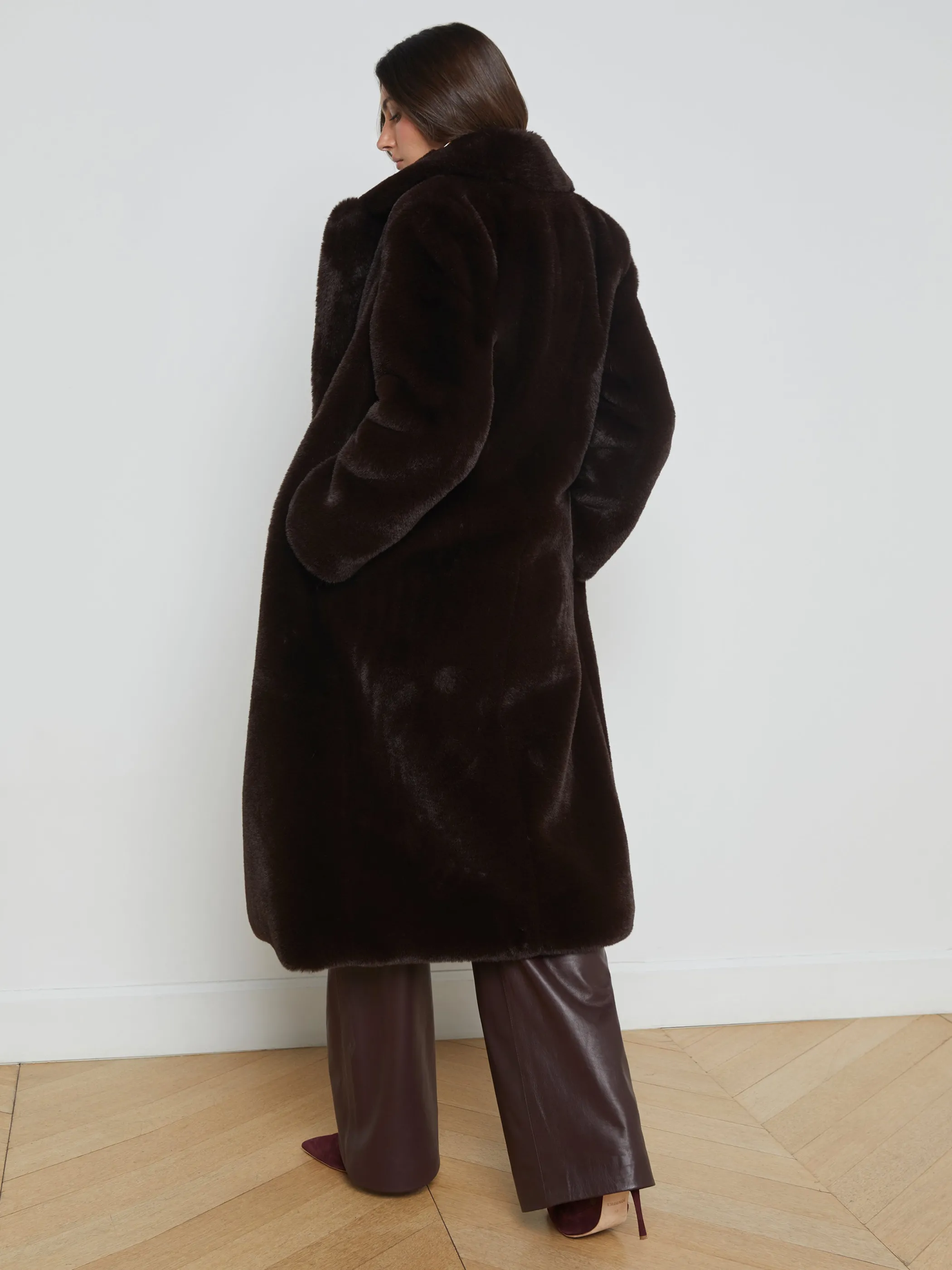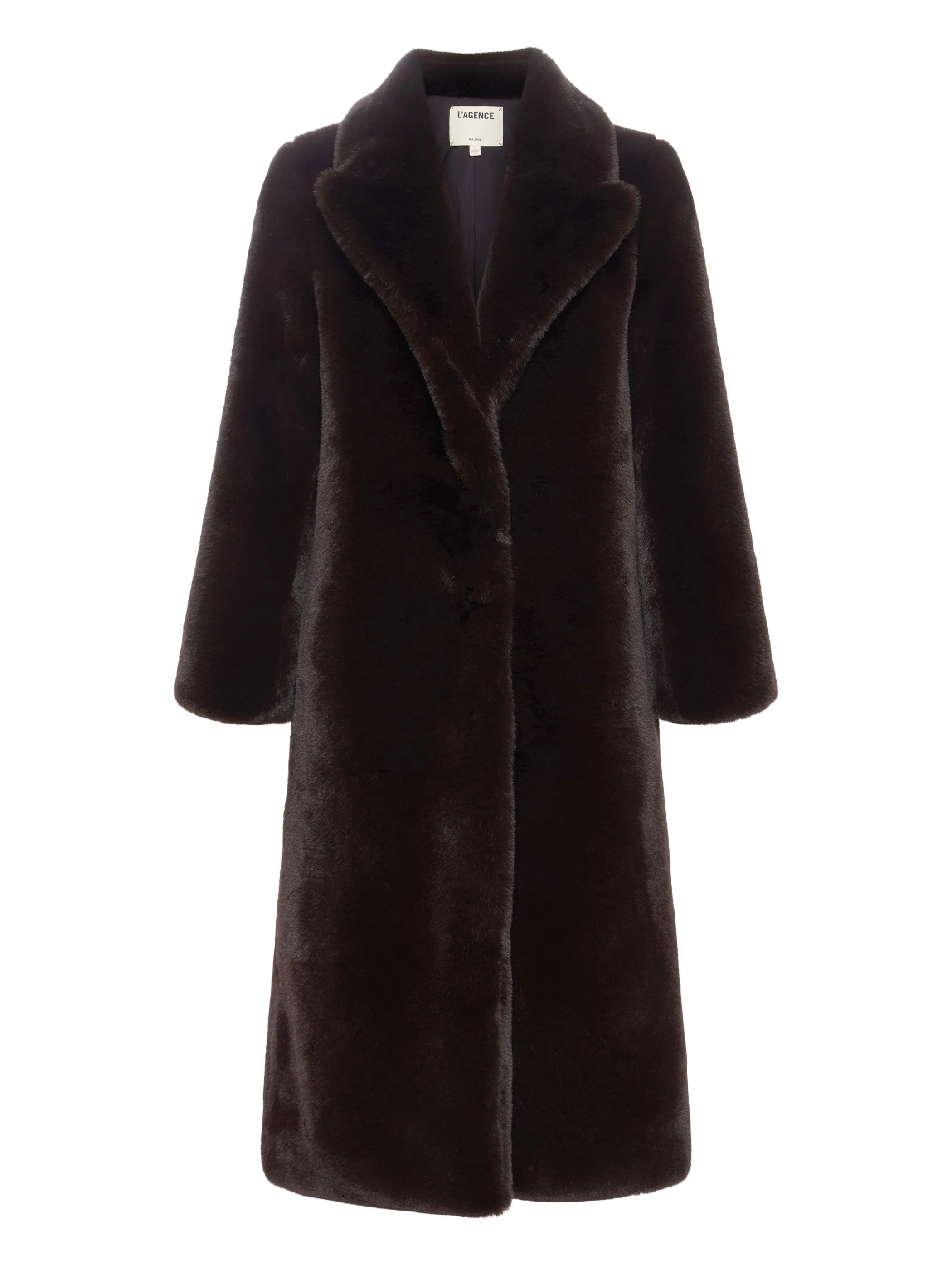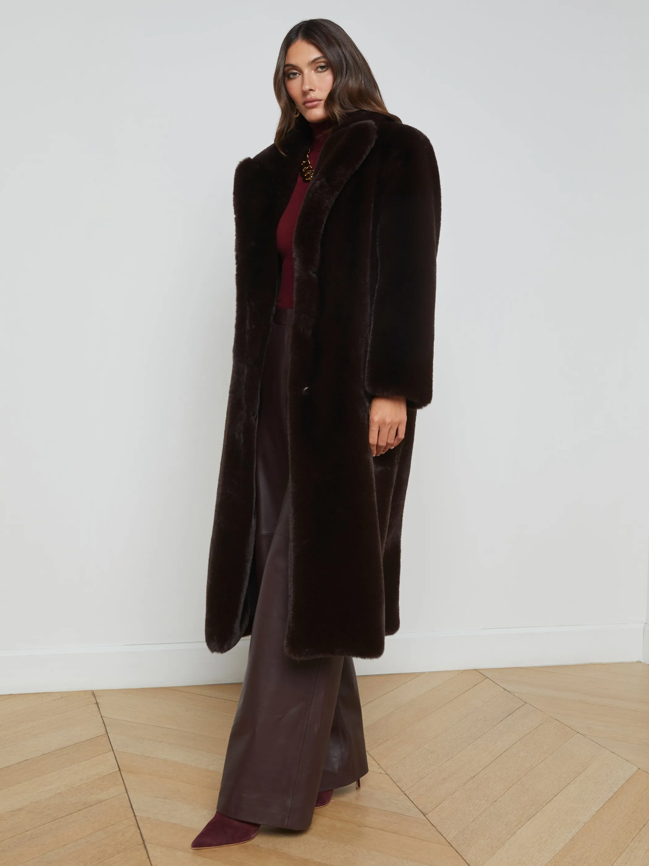 The vegan version of mink. Crafted from sumptuous faux fur with a luxe handfeel, the Lizbeth long coat offers complete, statement-making warmth.