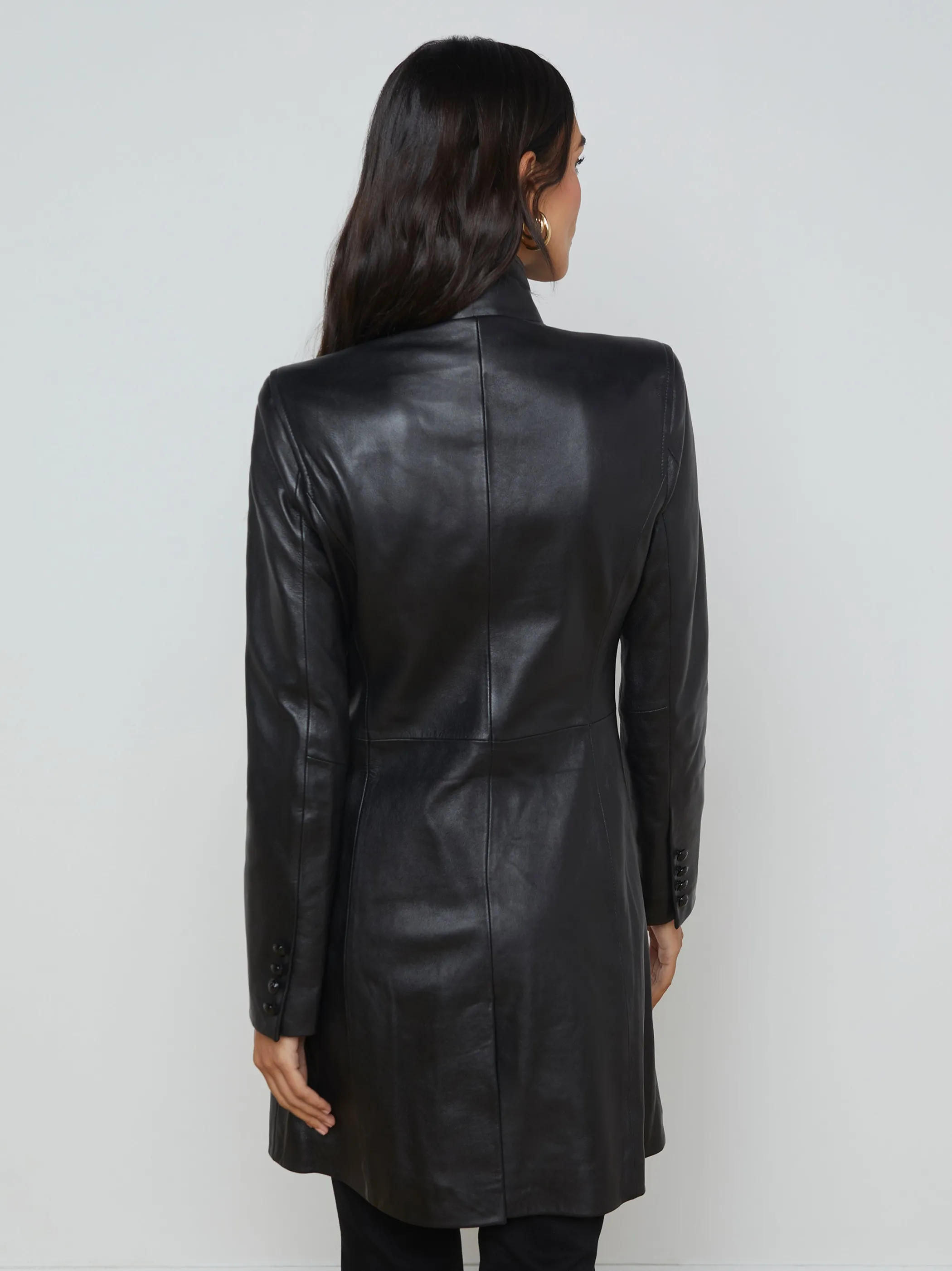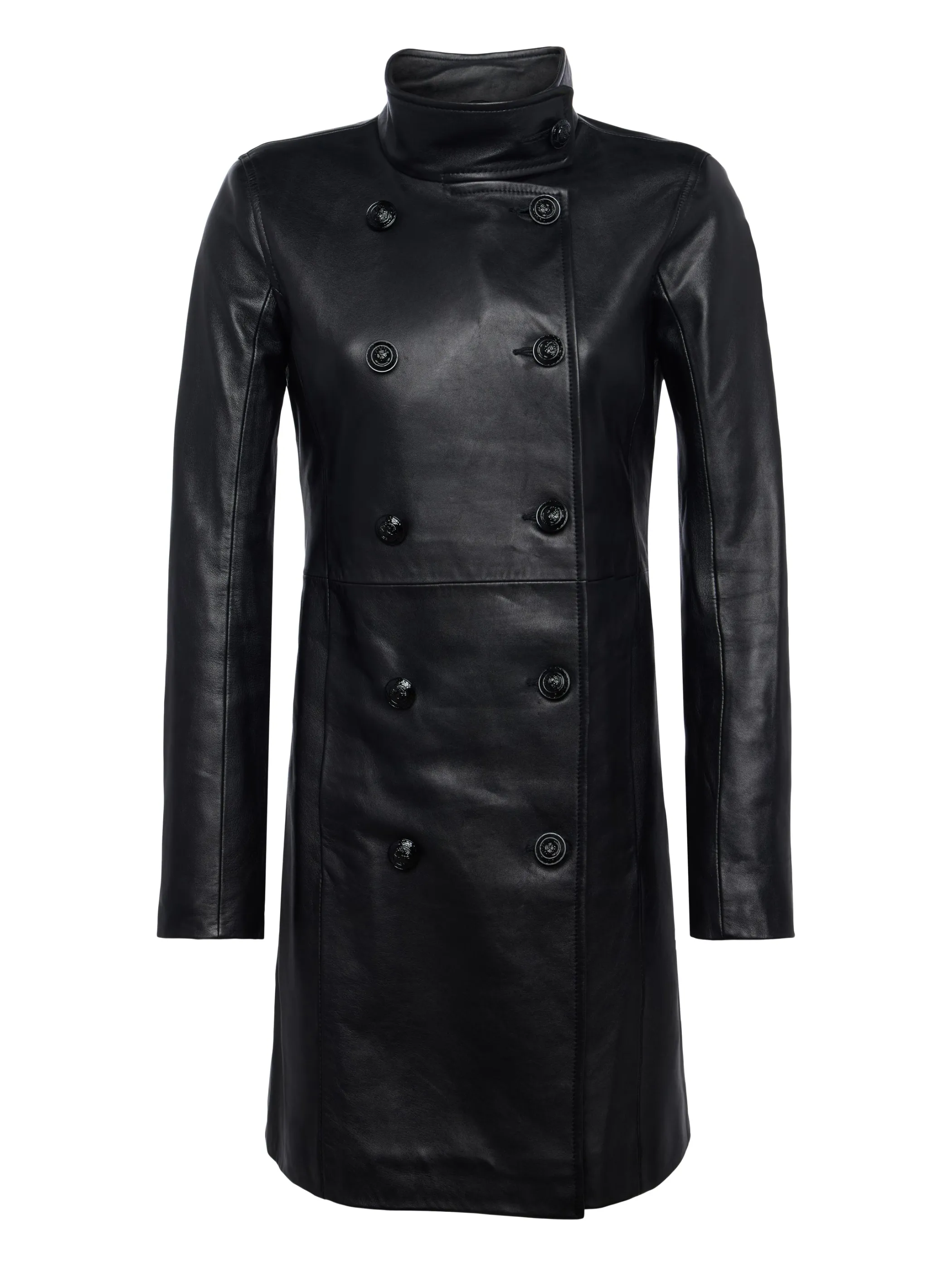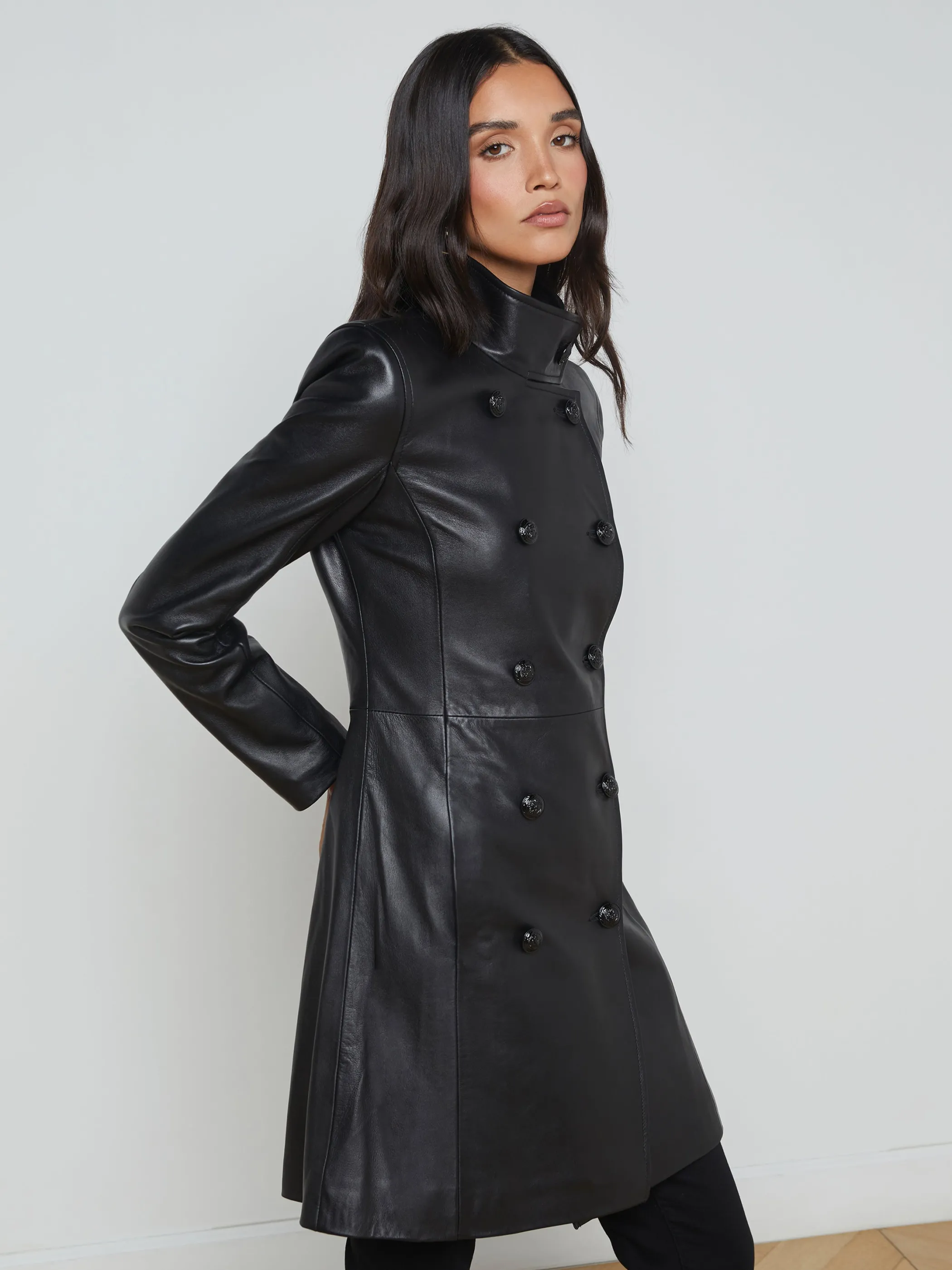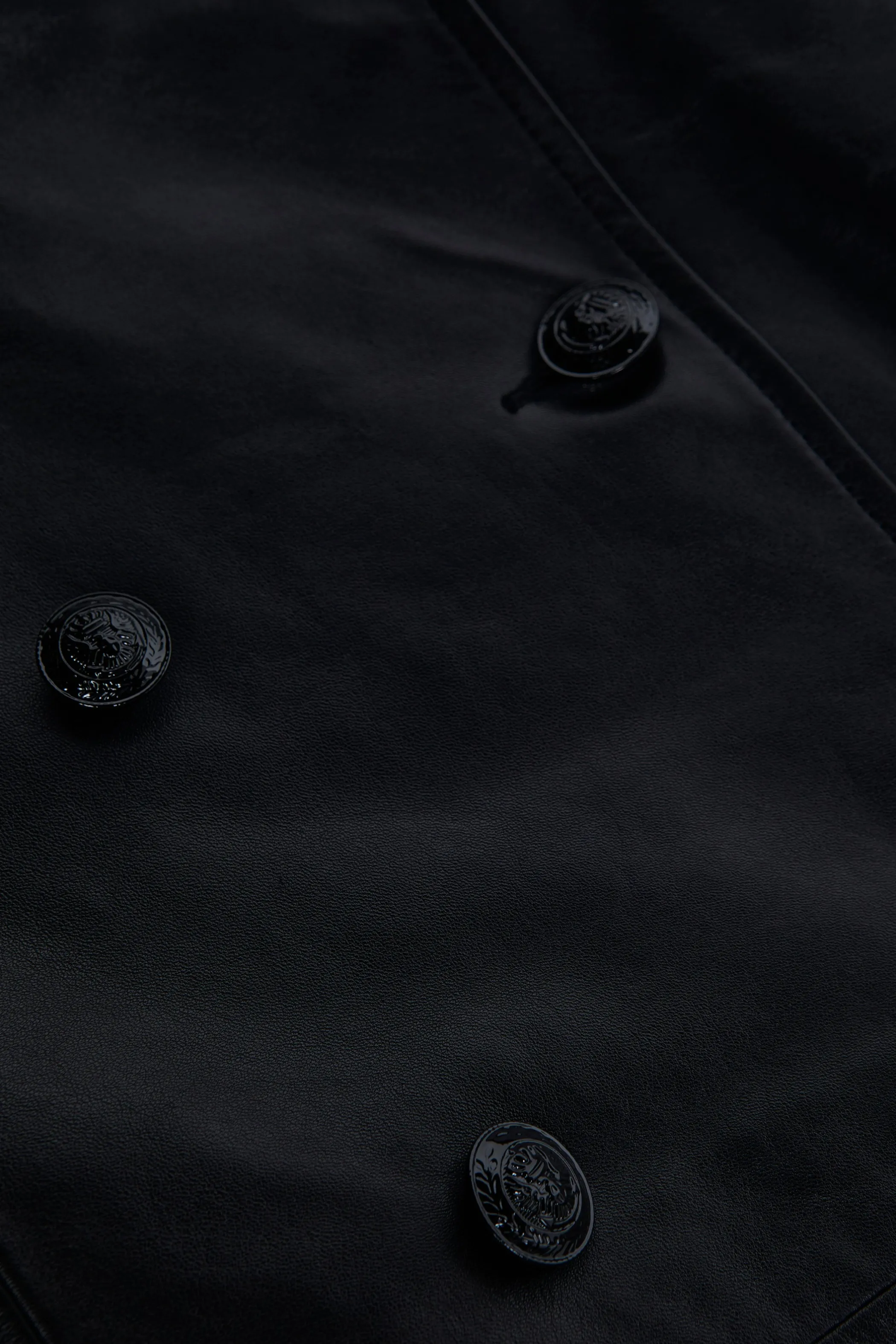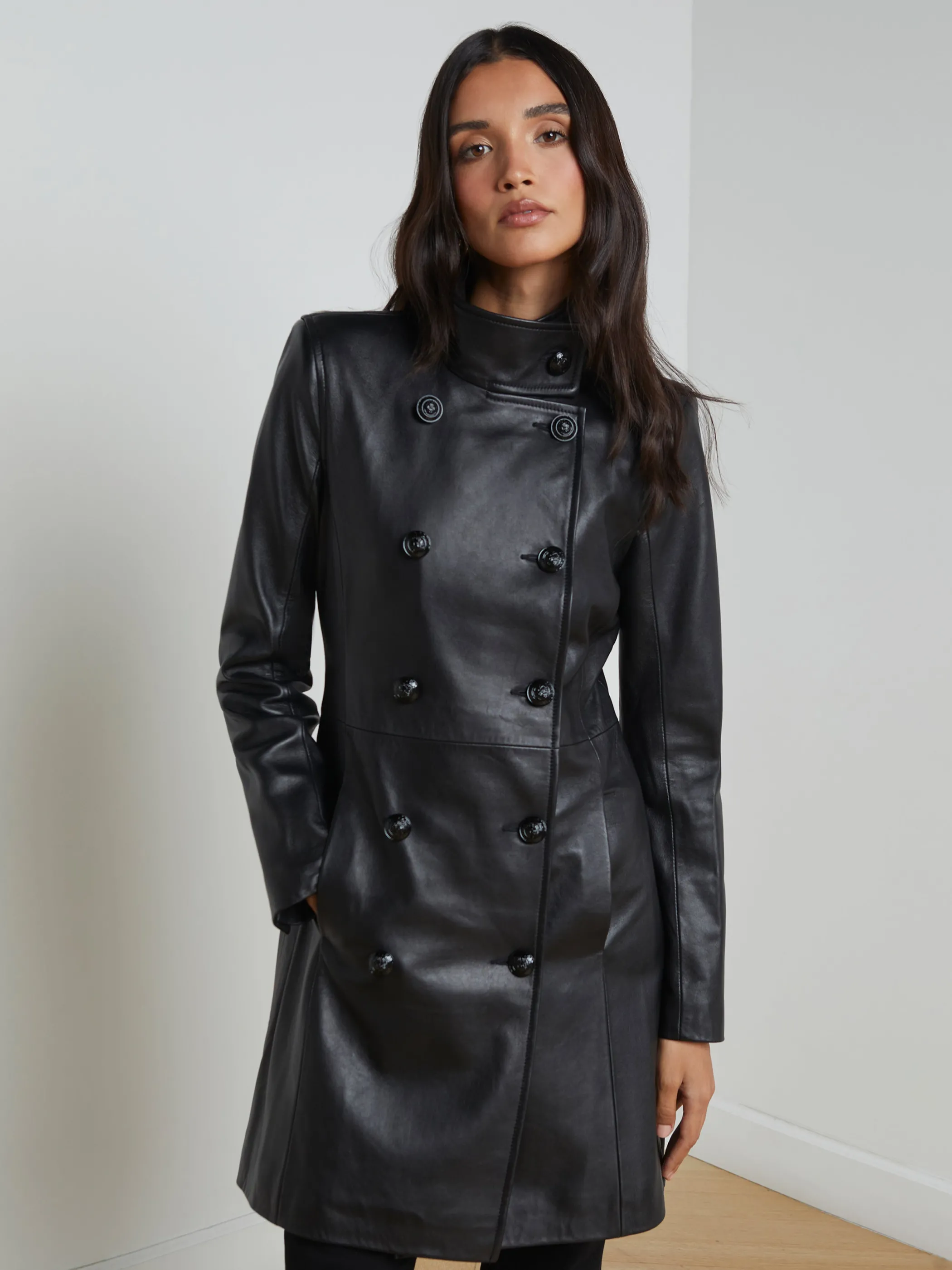 Our minimalist version of the double-breasted leather coat. Define by sleek seams, a high collar, and tonal buttons, the Lyon adds a cool finish to any look.