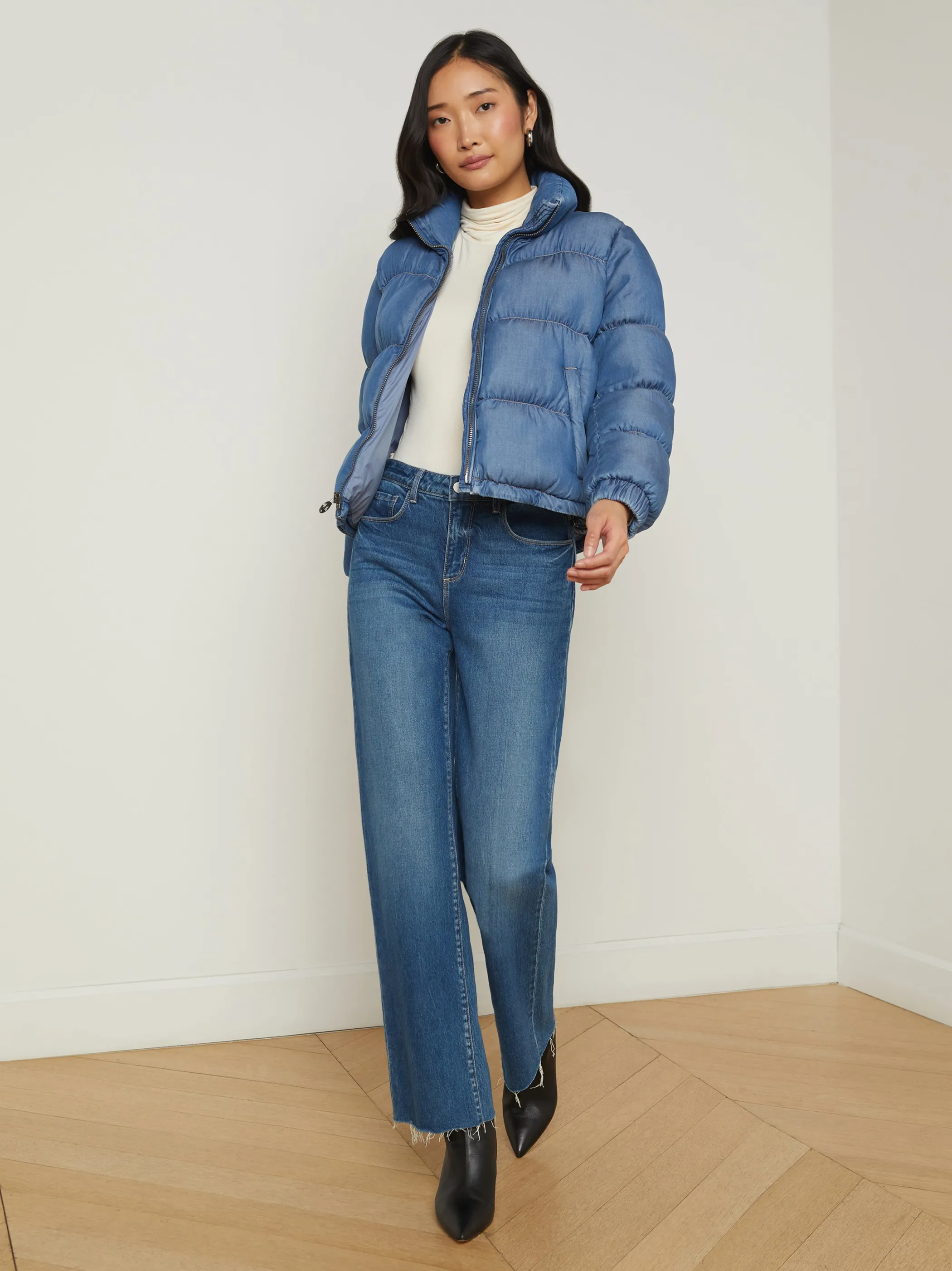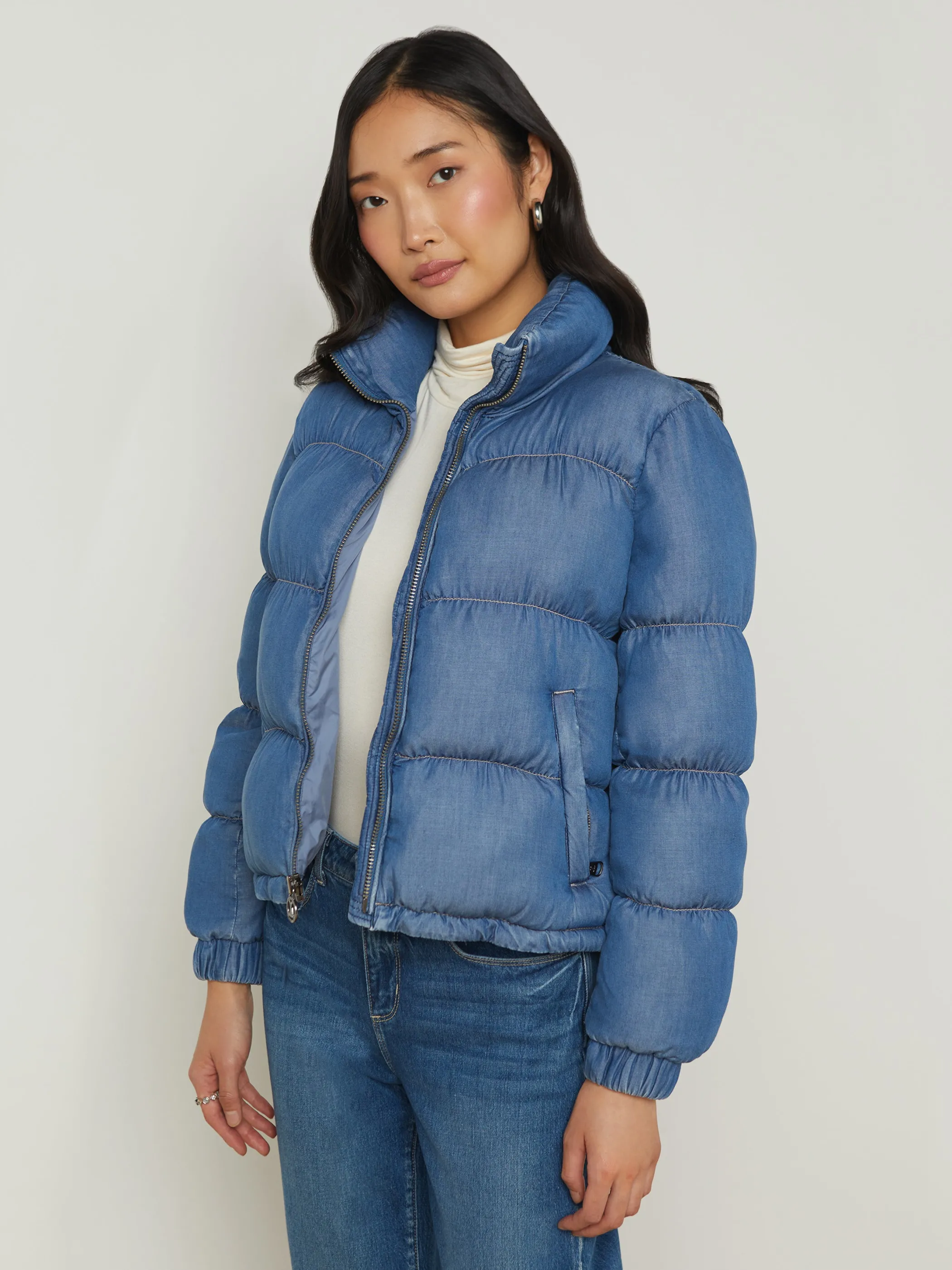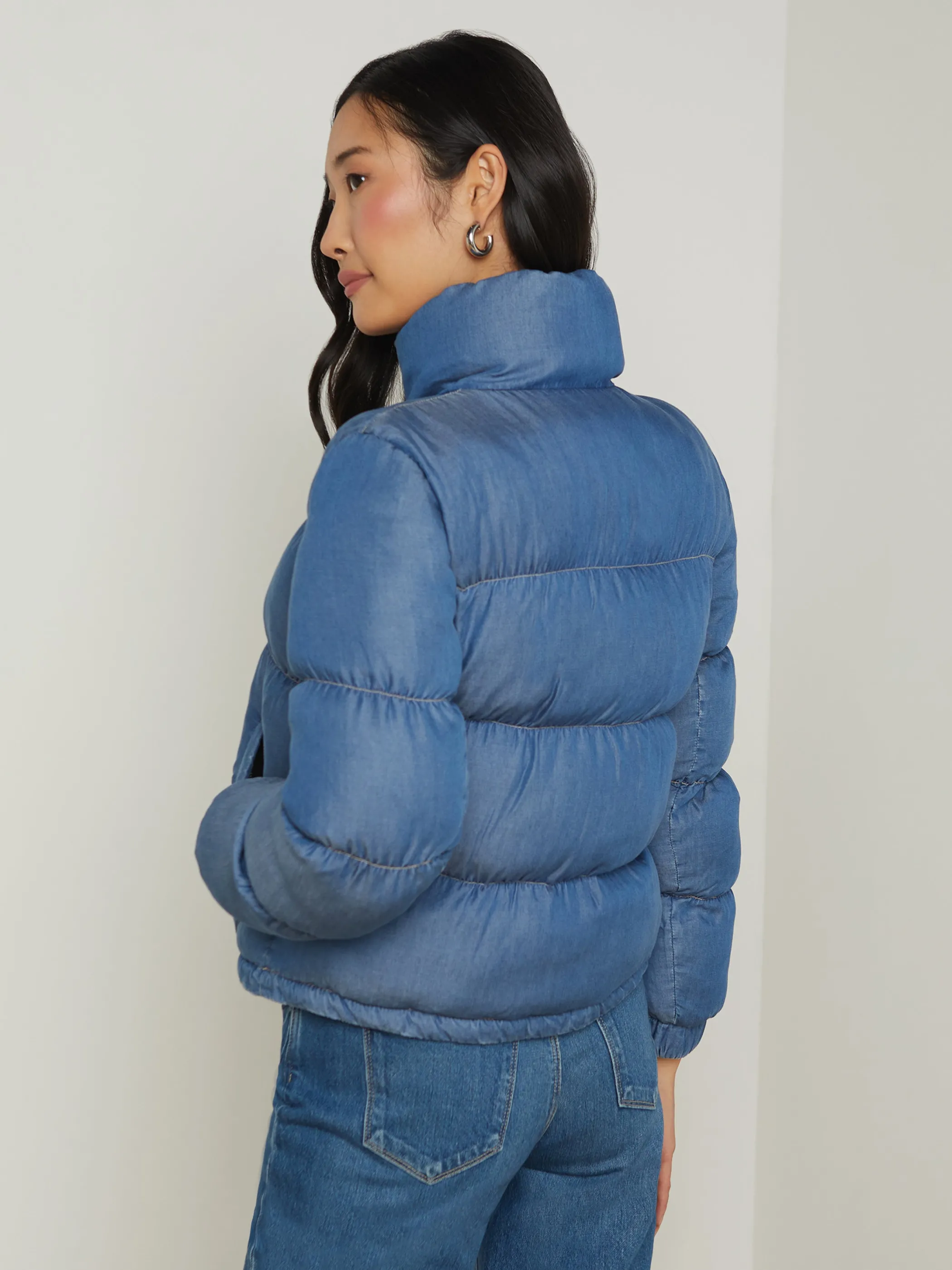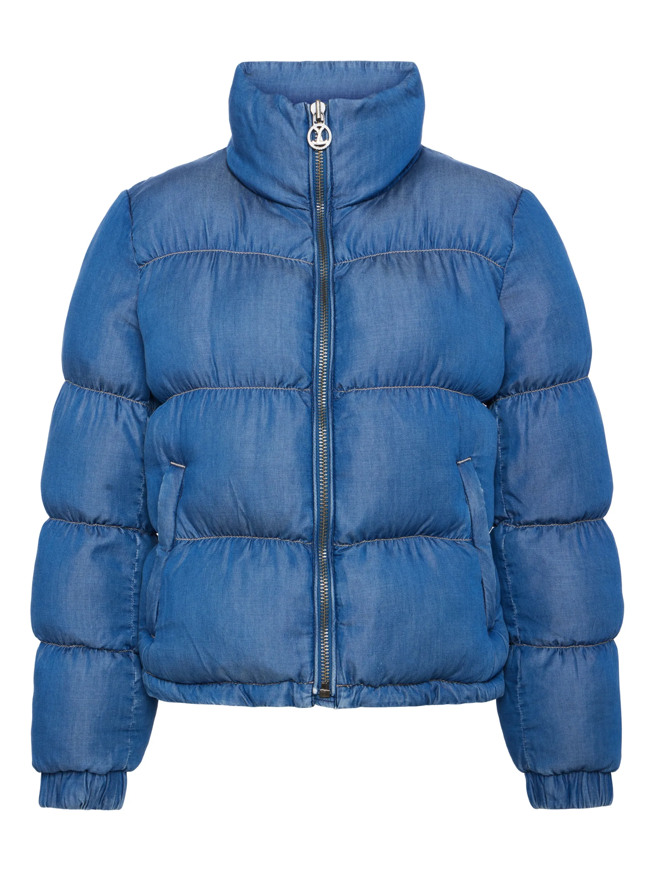 A classic puffer jacket with the look of denim.• 90% down, 10% feather fill• Stand collar• Long sleeve with elasti…