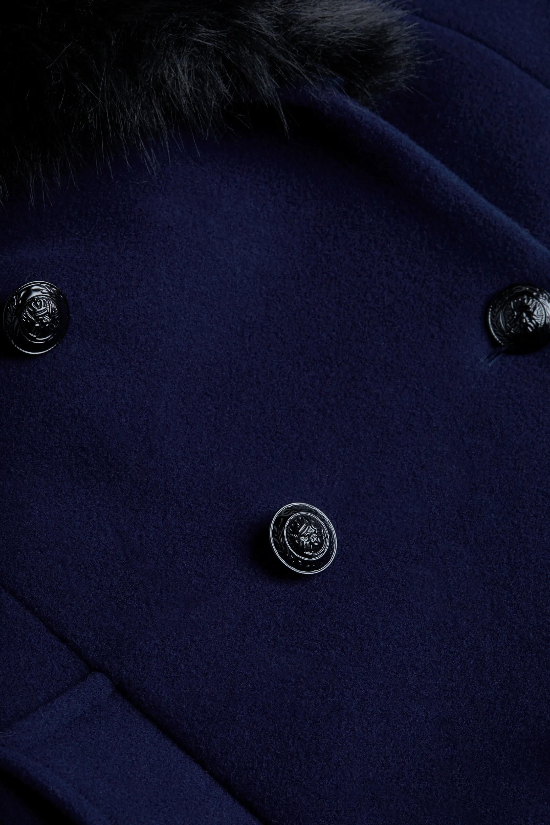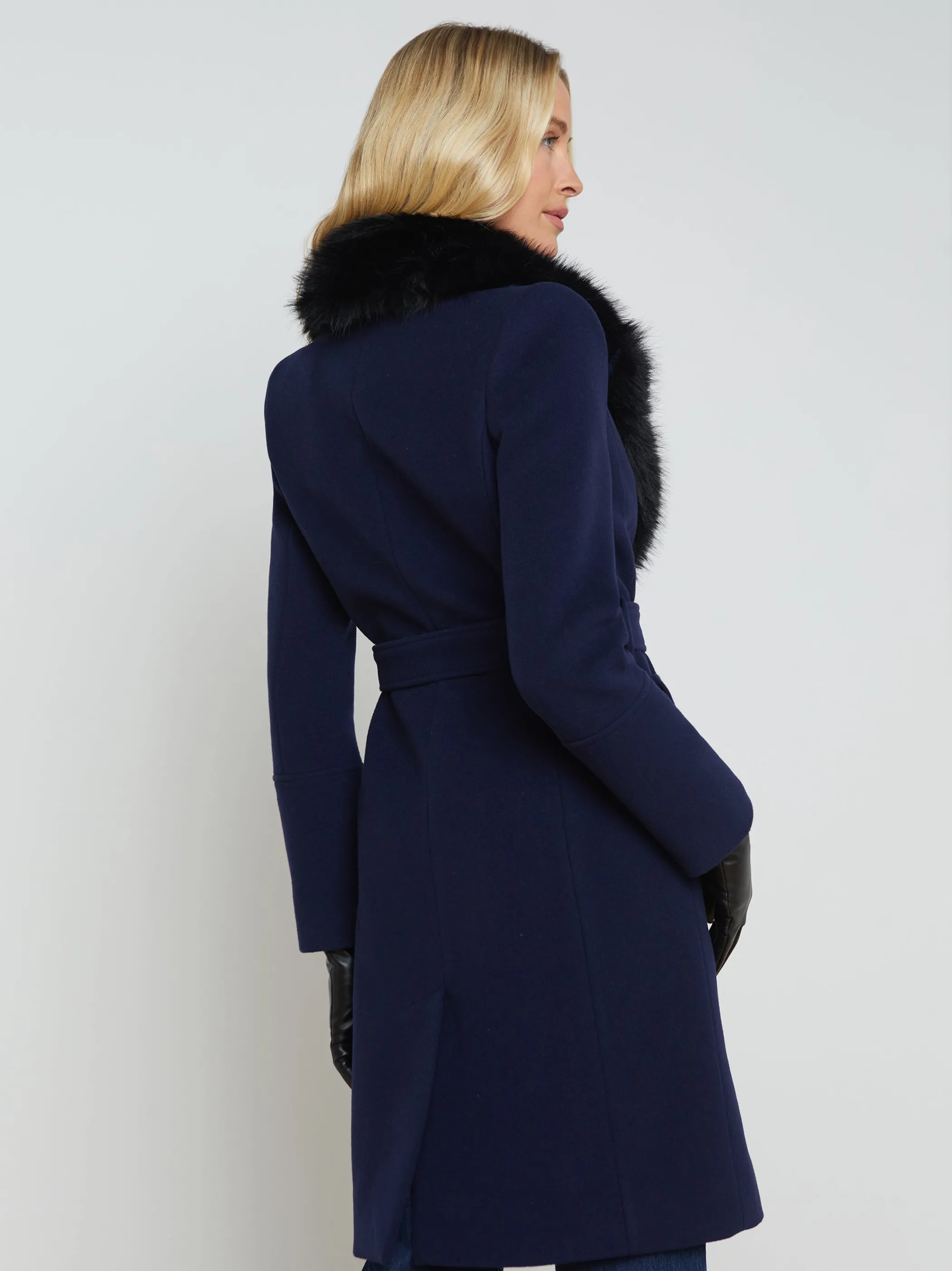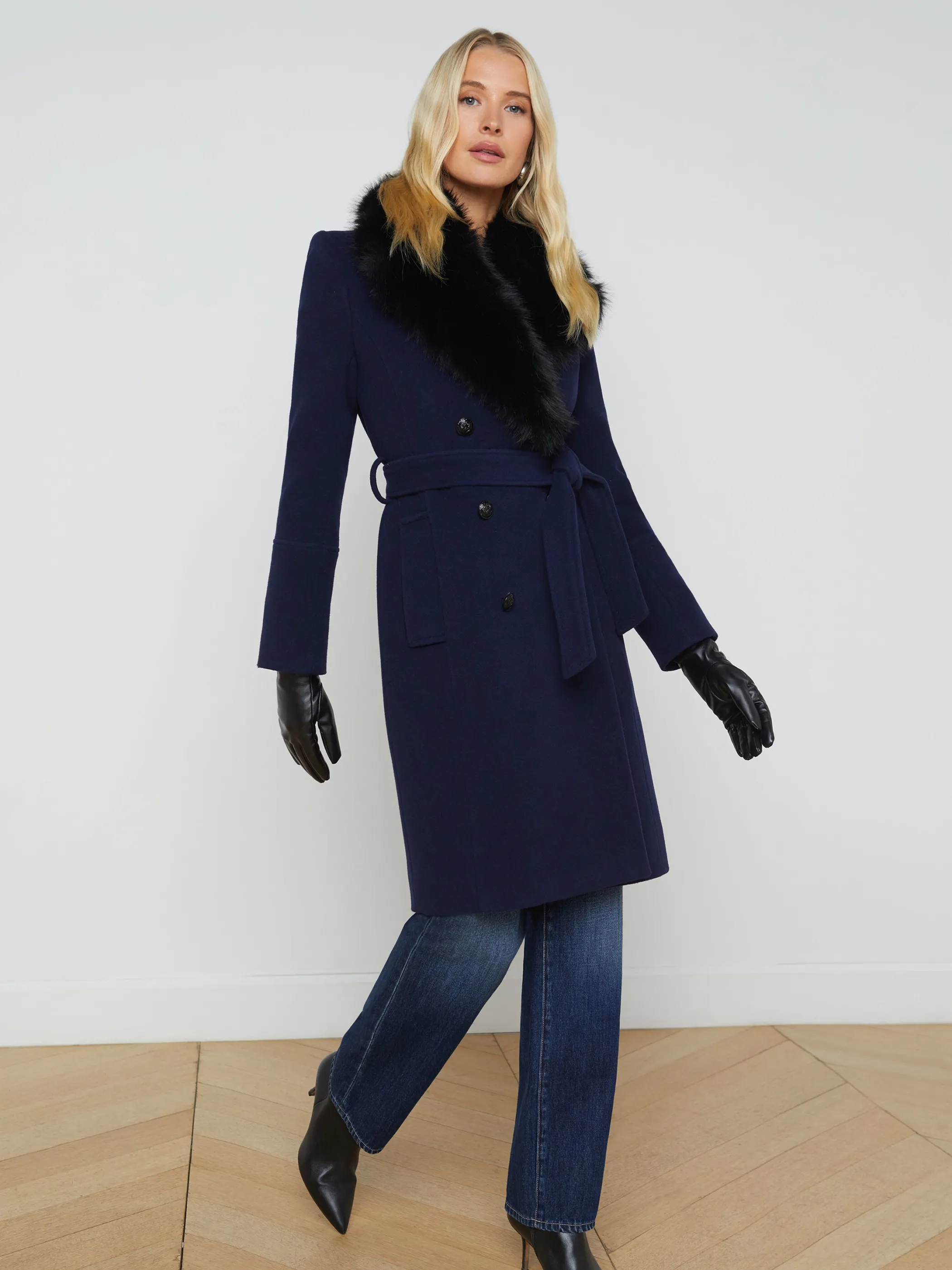The classic long coat, updated with a sumptuous faux fur collar. The Tristan is constructed with premium wool sustainably produced by Manteco in Tuscany, Italy.