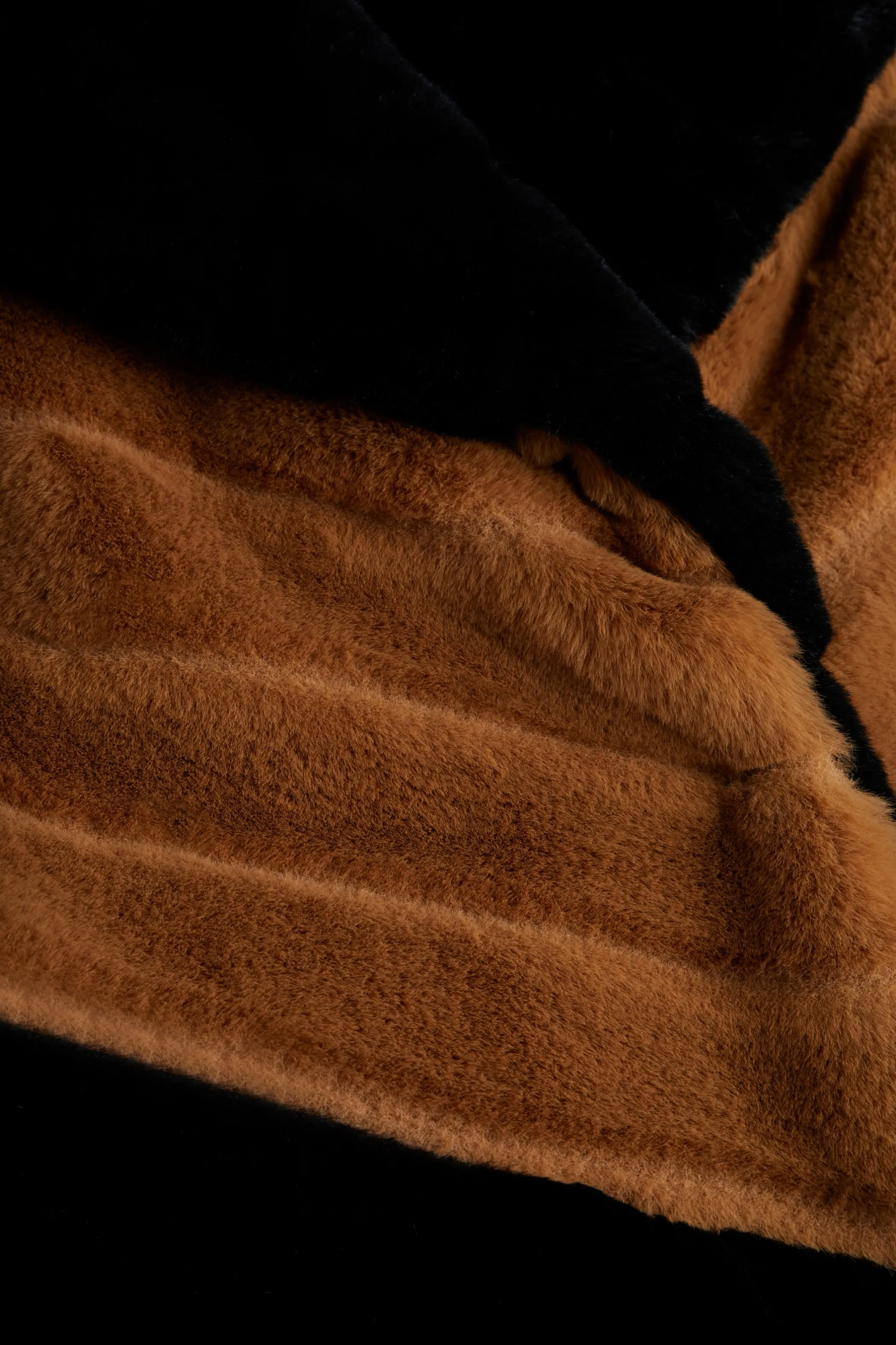 The Zoya features contrasting tones of faux fur defined by a ribbed texture and tie belt for added definition. • Faux …