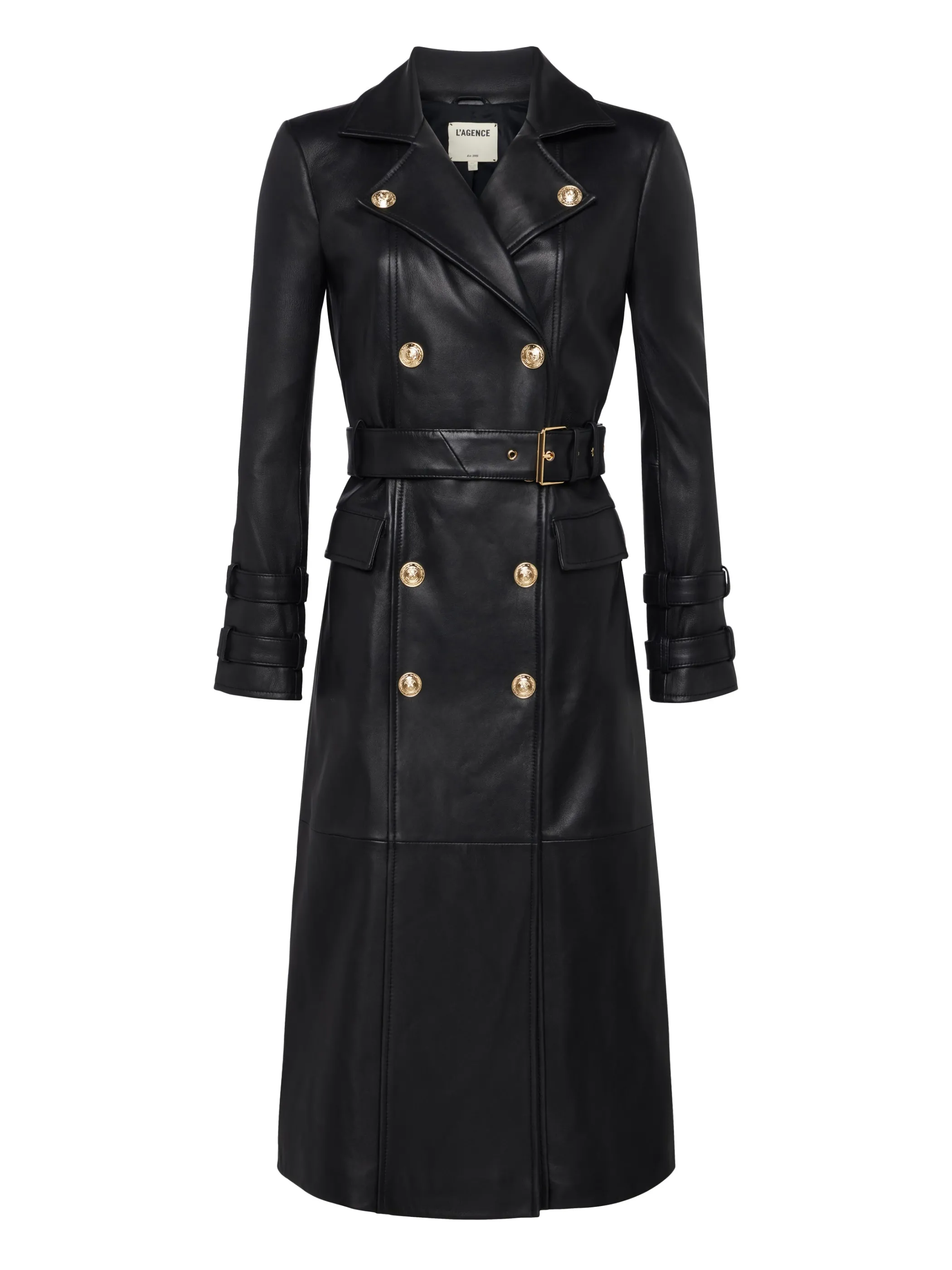 Outerwear*L’AGENCE CELINA LEATHER TRENCH COAT Black