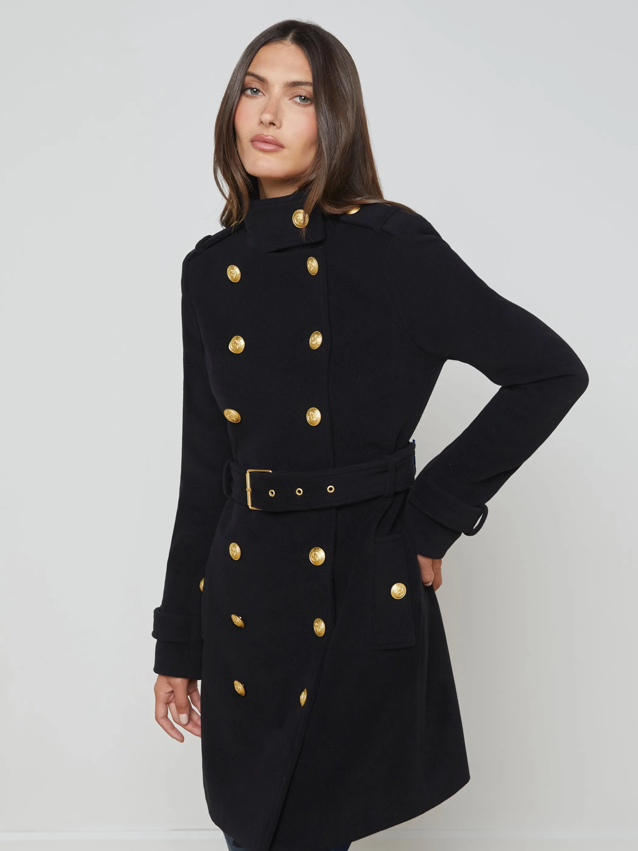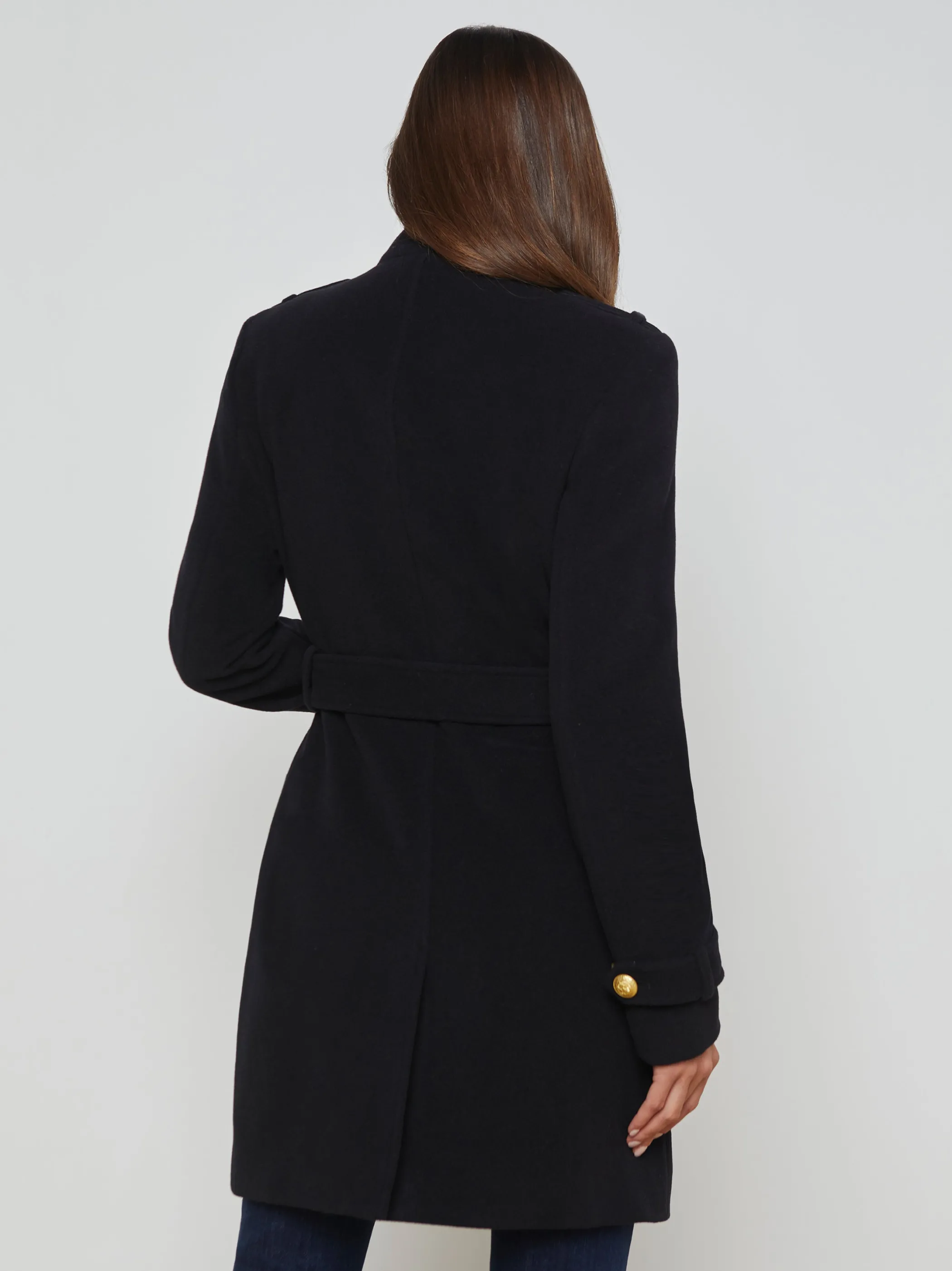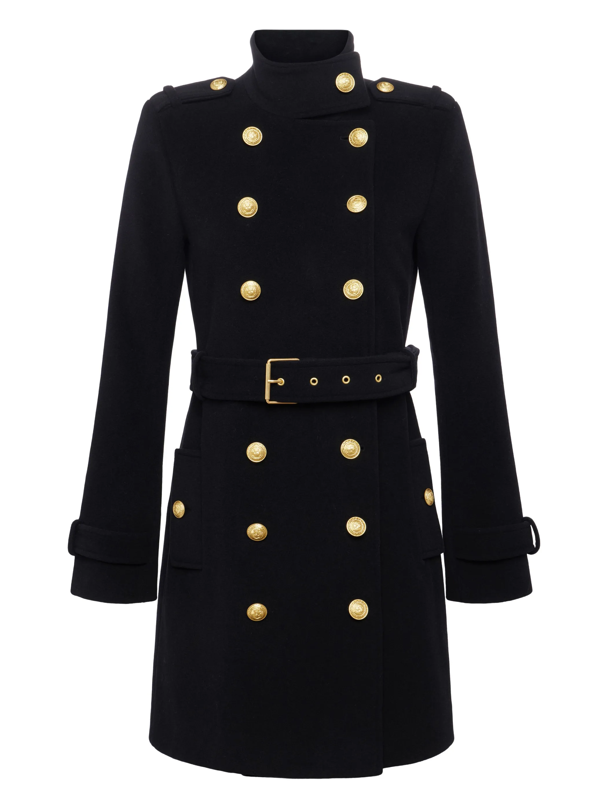 The Nalini features a high collar and removable belt for flattering definition. This style is crafted from a premium wool sustainably produced by Manteco in Tuscany, Italy.