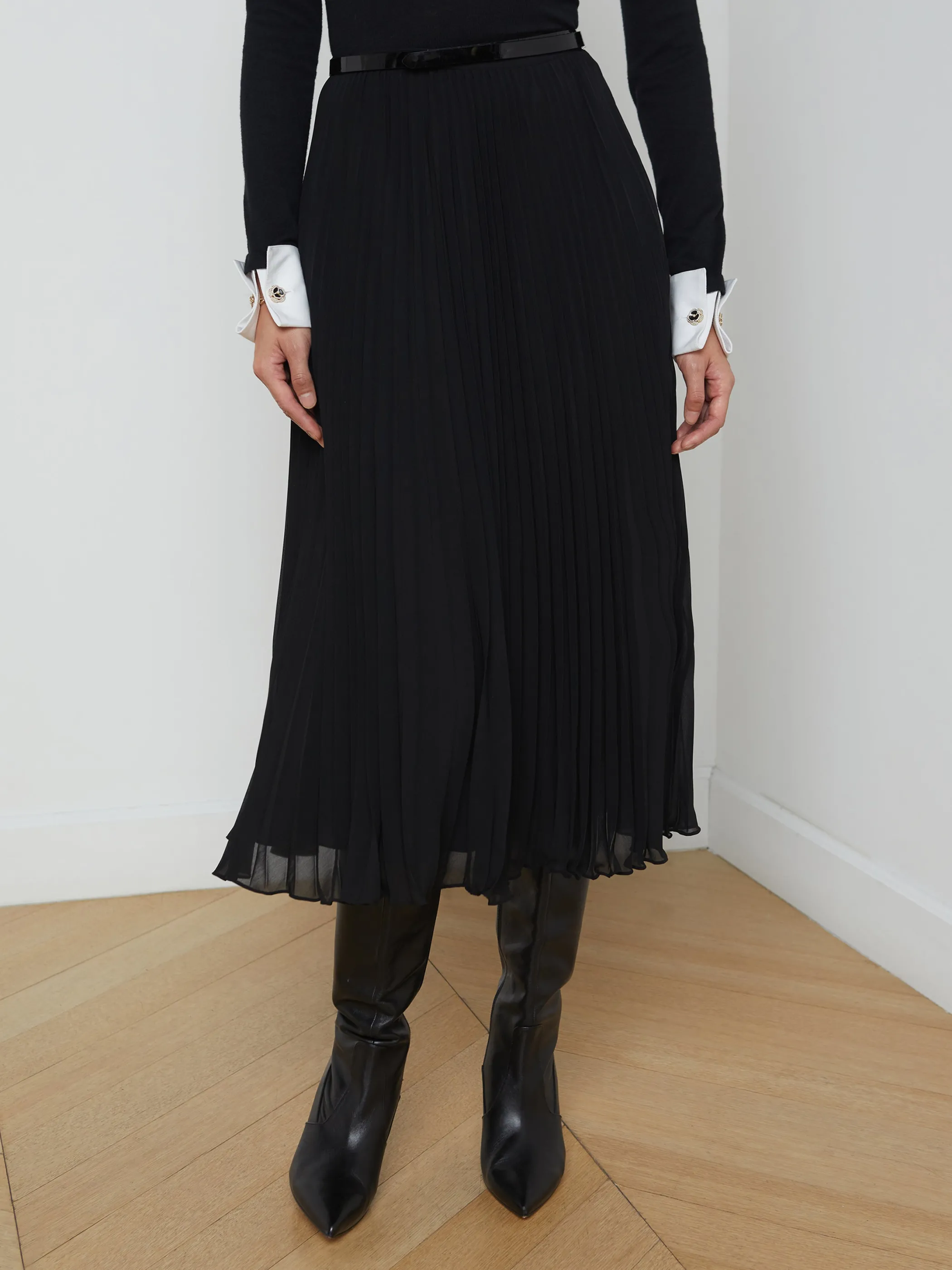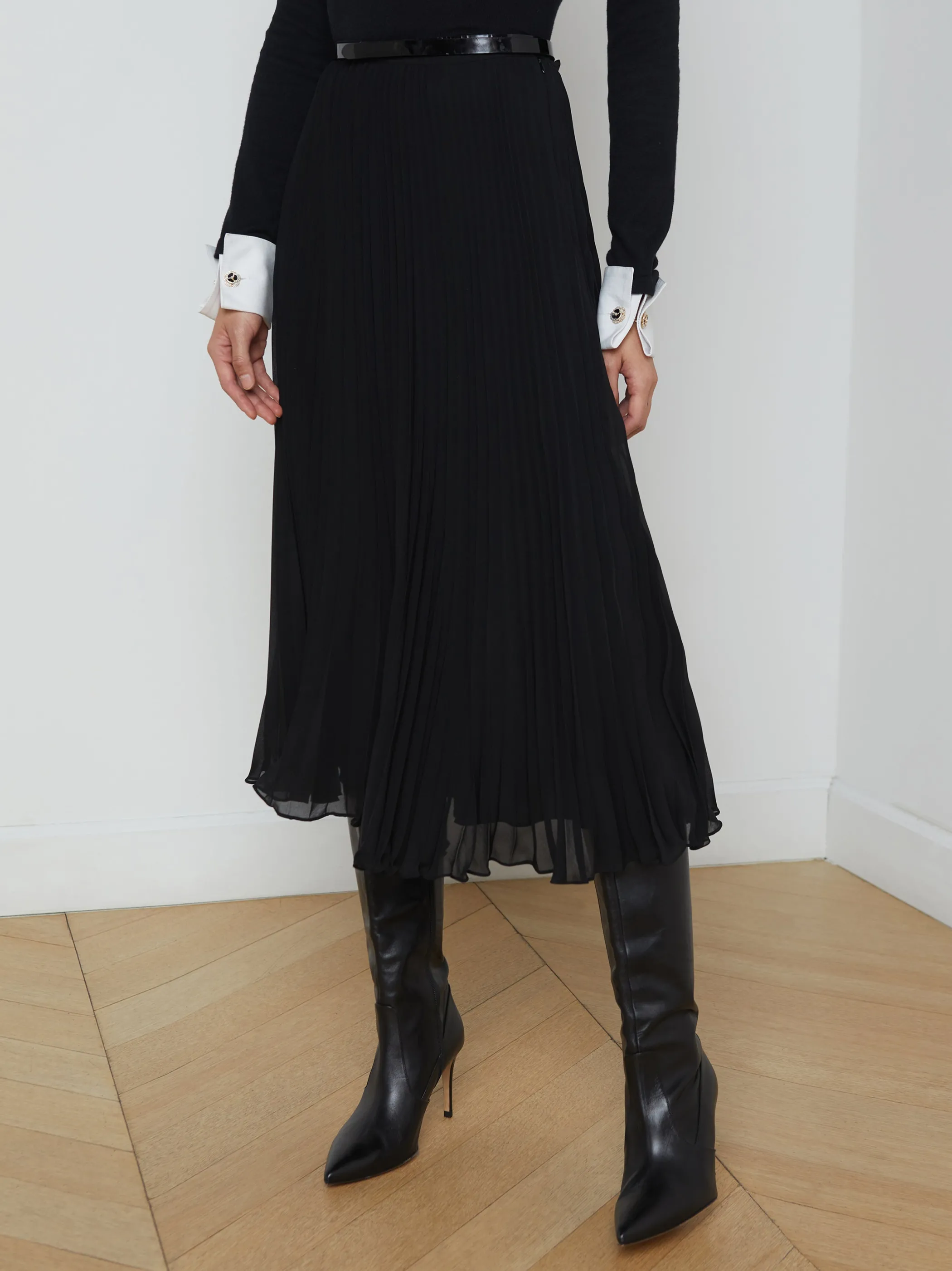 The Fernanda pleated midi skirt strikes the perfect balance between dramatic and ethereal.