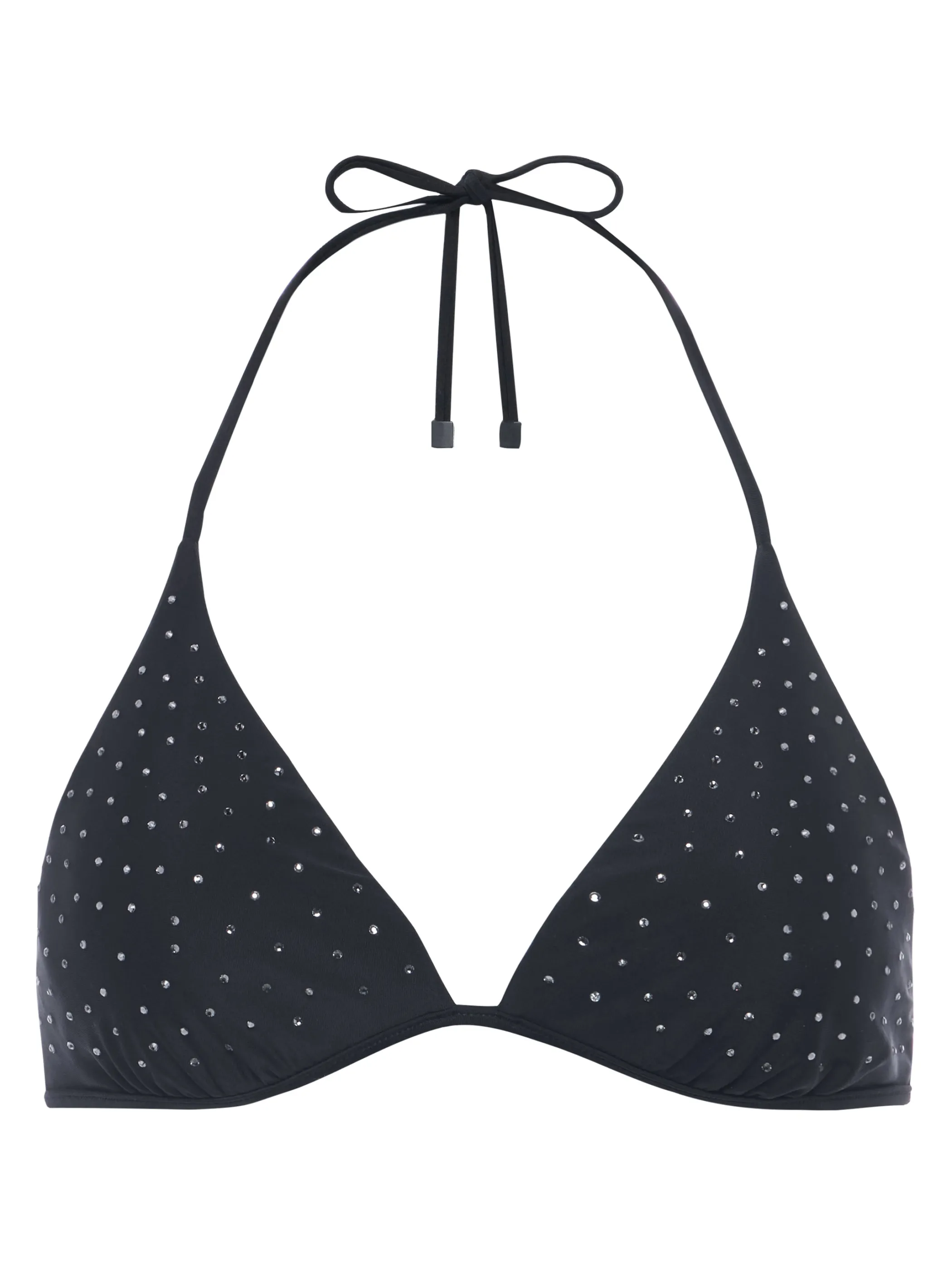 Our classic black triangle bikini top, now updated with heat-set crystals for a hint of subtle glamour.