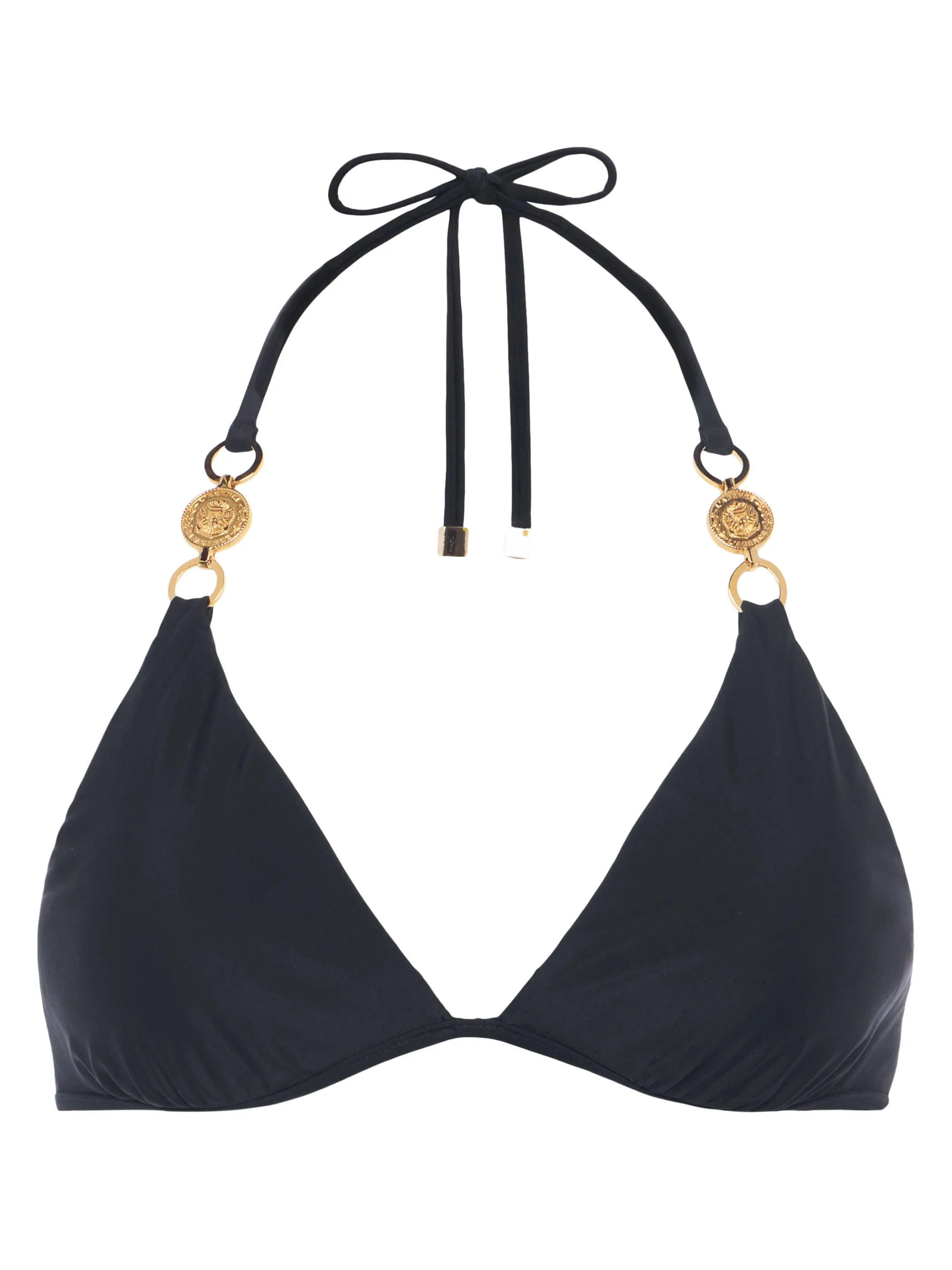 Our classic black triangle bikini top, now updated with gold coin hardware for a hint of subtle glamour.