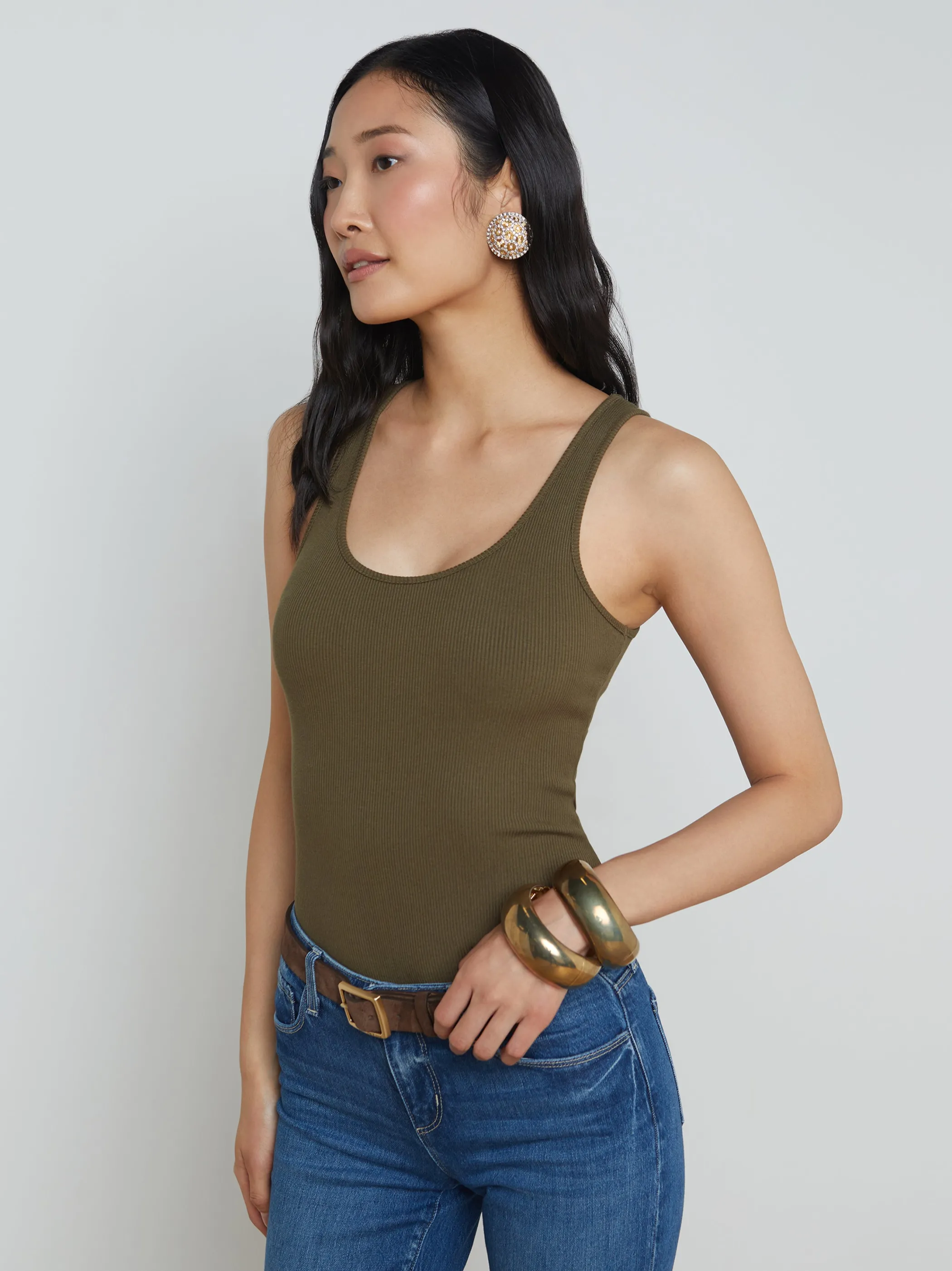 The essential tank, perfected. Our Adira strikes an elegant modern tone with a sultry deep scoopneck and slim fit, now in the color trend of the season.