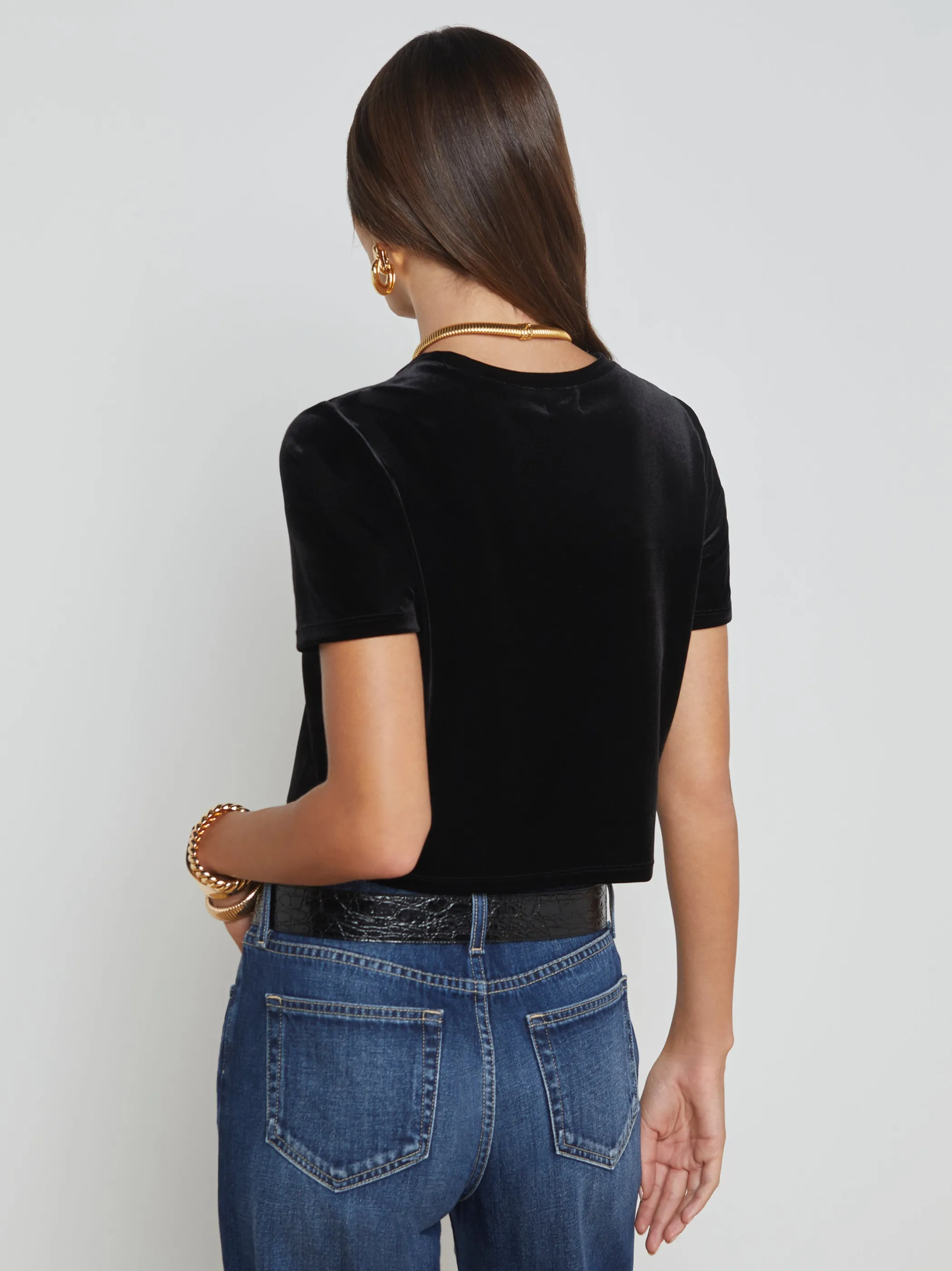 The essential cropped tee, now in luxe velvet.• Stretch velvet fabric• Crew neck• Cropped length