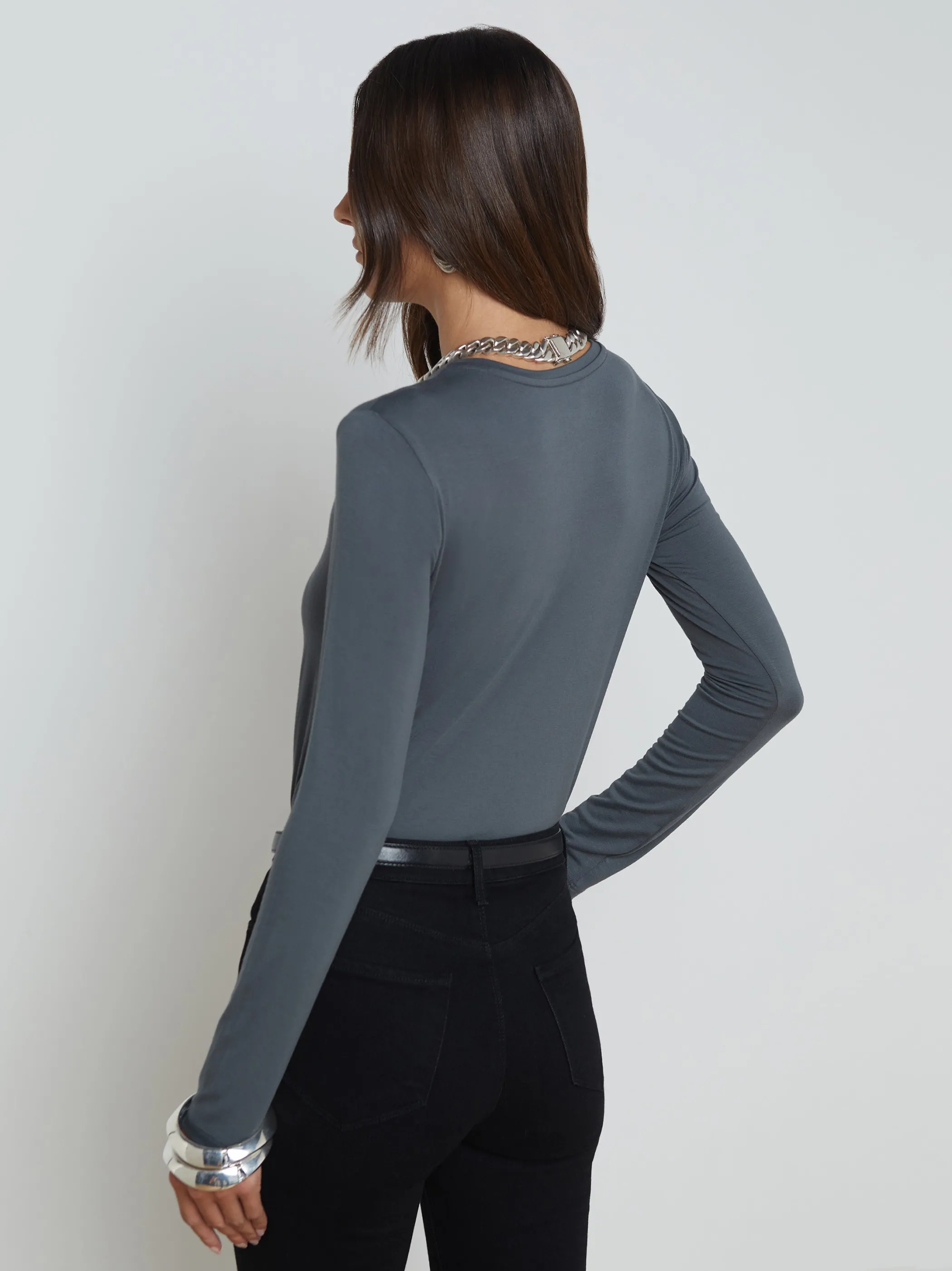 So soft, you’ll never want to take it off. Worn alone or layered, Tess is the versatile long sleeve tee that will carry you through the season, now in dark gray.